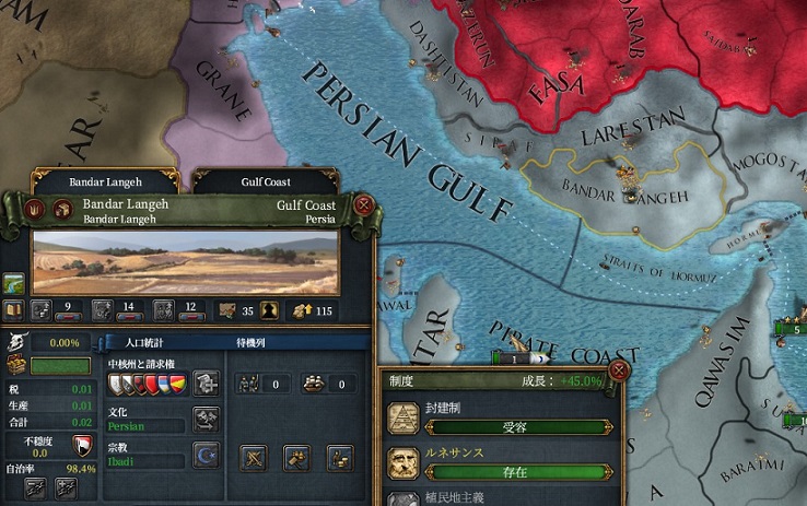 数合わせのために貧乏プロビをいくつかペルシャ文化に変更して植民地主義発生前に新生オマーン(オマーン人→ペルシャ人)が誕生しています。