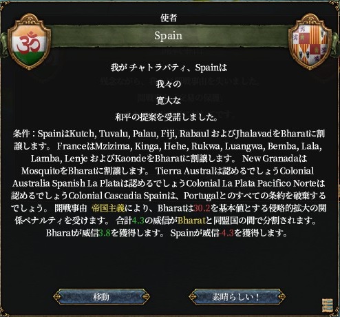 複数の植民地とアフリカ、太平洋の州を割譲させ対Spain&France戦は完了しました。