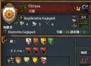 OrissaはDLC「Dharma」発売時のアップデートにより初期から4ヵ国を従える地域大国(?)と