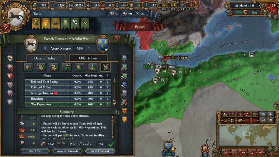よし。内政するから金を出せ。賠償金は月に20ducat。