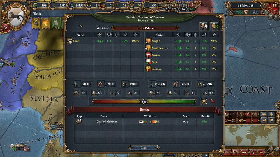 しかし海運・海軍Ideaに加え、敵と同等の物量を持っているTunisには、そんなこと起きません。