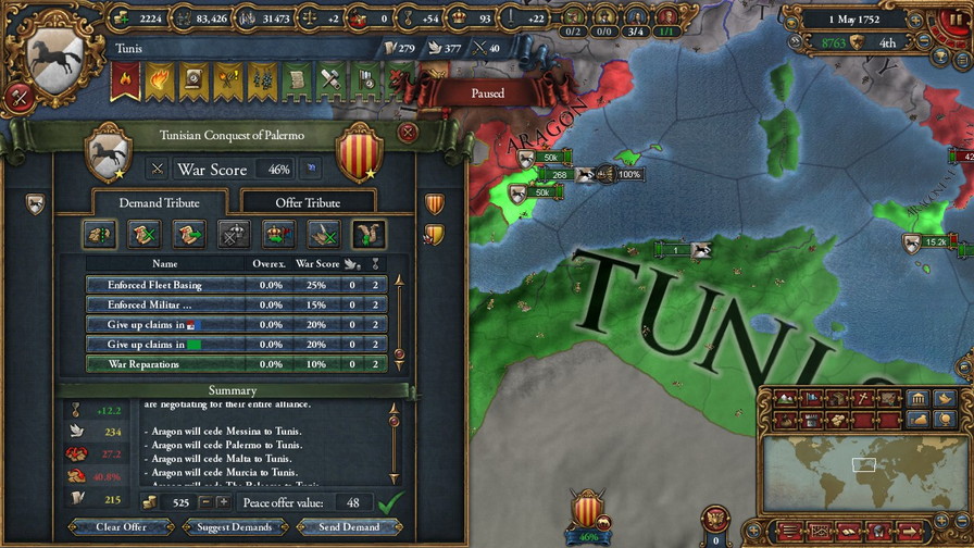 最後に、あらゆる緩衝を失ったAragonを蹂躙。必要なものだけ……ついでにイタリアのとき回収し忘れたマルタ島も得る。