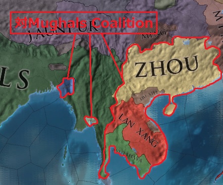 それに加え、対Mughals CoalitionにJoinして宣戦を行えばアジア方面の国々がMughals領に雪崩れ込み