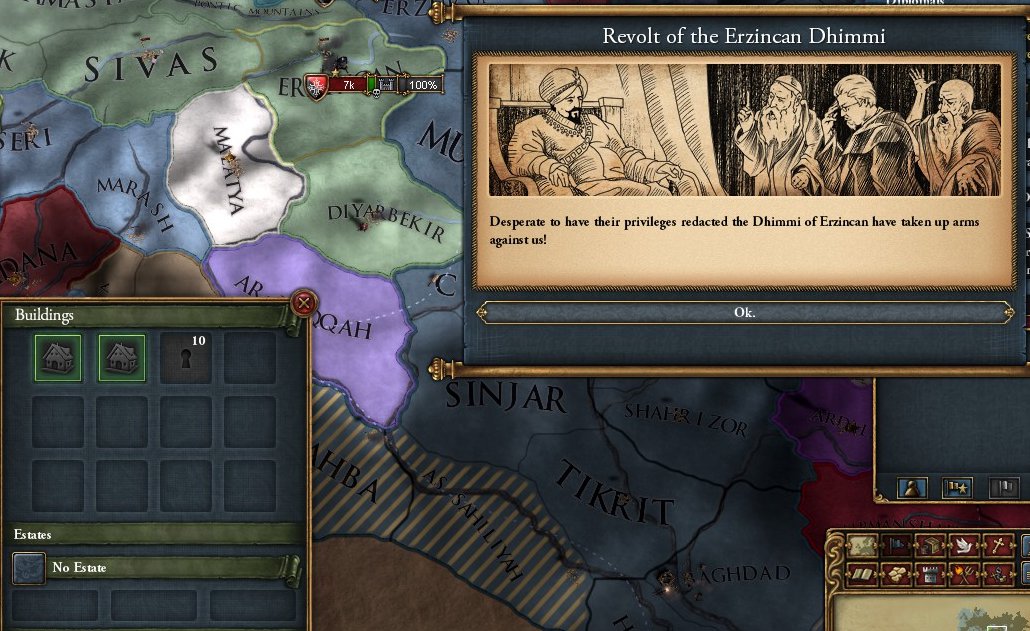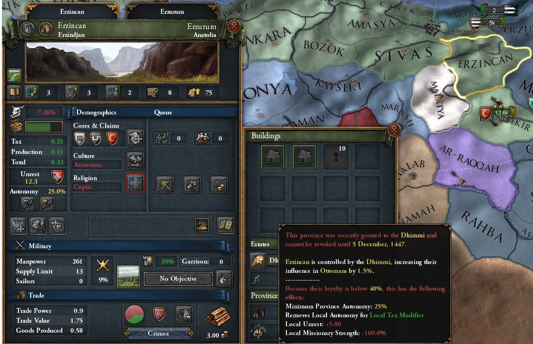 ・Ottoman government 政体の喪失……ハレム制度による君主の質の保証を失い、それに伴い強力なイェニチェリ補正を受け続けるためには後継者ガチャ※が必要になる。また、月あたり自治度減少 (monthly autonomy change) が -0.5 → -0.025 となるのも序盤は響く。