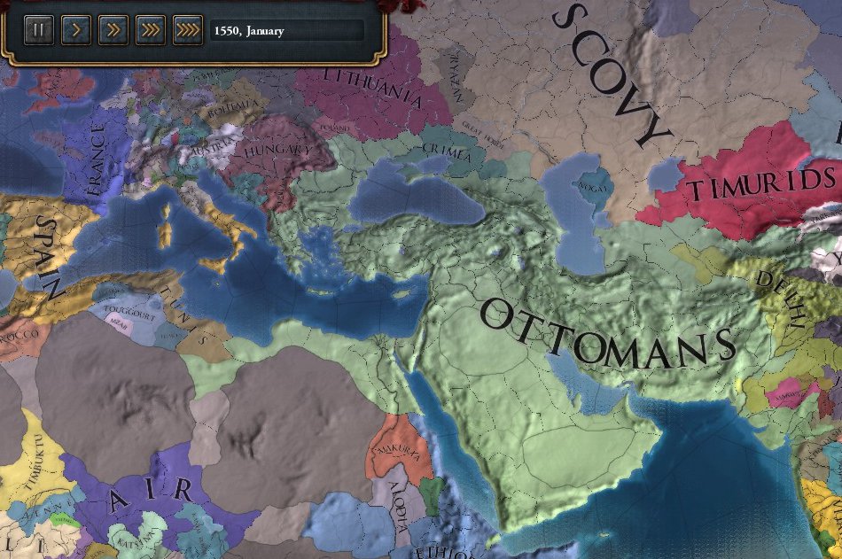 この期間においては、インド諸王朝やティムール朝を攻撃し東進、アラビア半島やコーカサス周辺を平定、残っていたやマムルーク朝を併呑、OPMと化していたところを属国化していたフェラーラのコア地域の再征服などを行っていきました。