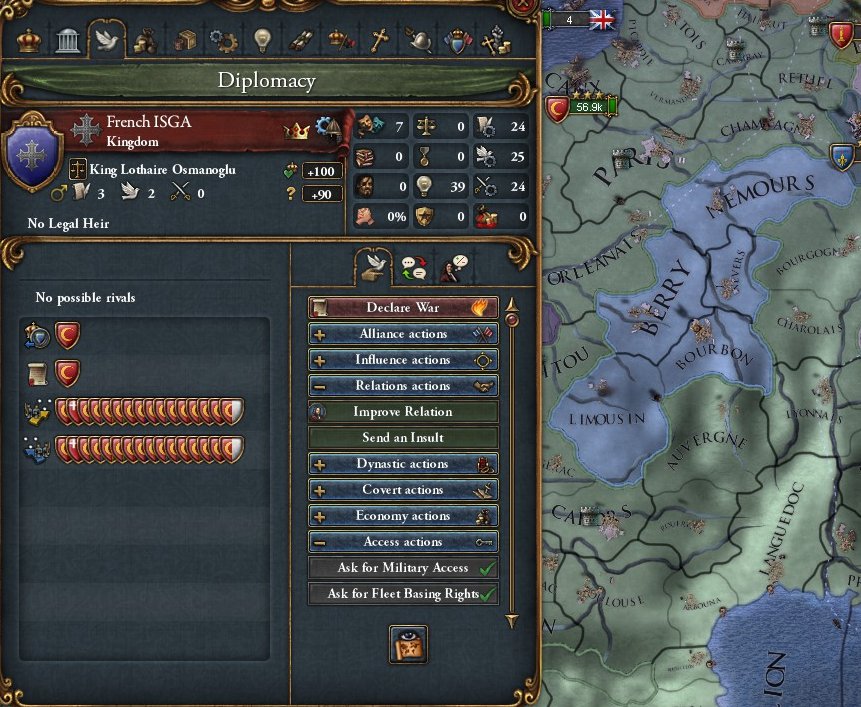 フランス併合時にOEが一時的に100%を超えてしまいましたが、超えた分は直後に衛星国を設立することで逃しました。