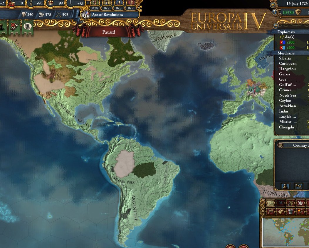 巨大な植民国家宗主国として残っているフランス・英国を攻め落とし、フランスは1711年、英国は1725年に併合となりました。