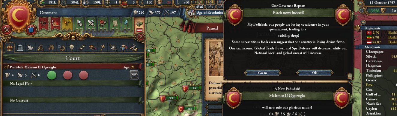 君主は今まで何とかなってきましたが、1757年、なんとオスマン朝が途切れました。