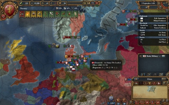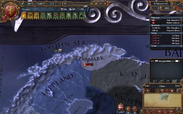 ノルウェーの初手は北ユラン地域への領有権捏造とハンザとの関係改善、それに全艦隊と全陸軍をアイスランドへ移動しておく。