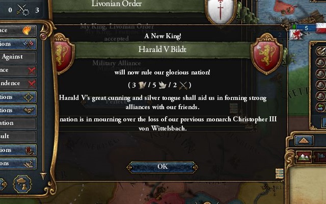 ミュンスターは現在ノルウェーへの対抗同盟に加入しているが、関係改善してきた甲斐あって態度は既に友好的になっている。