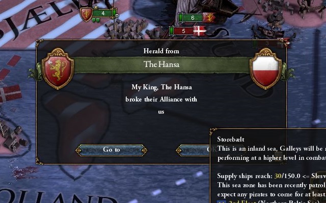 ハンザの戦争準備を見落としていたため奇襲を喰らう図。国境近くに部隊を置きっぱなしにしてはいけない。お兄さんとの約束だぞ。