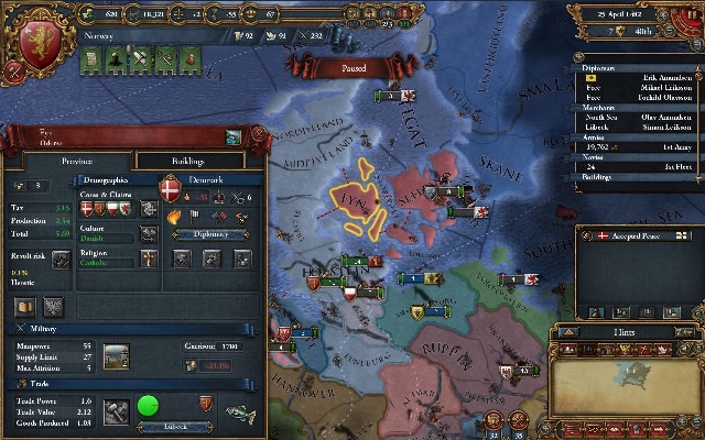 1460年4月 和平締結のきっかり五年後にデンマークに中部ユラン地域征服CBで宣戦布告。直後にデンマークがモスクワと同盟するも、参戦は間に合わなかった模様。