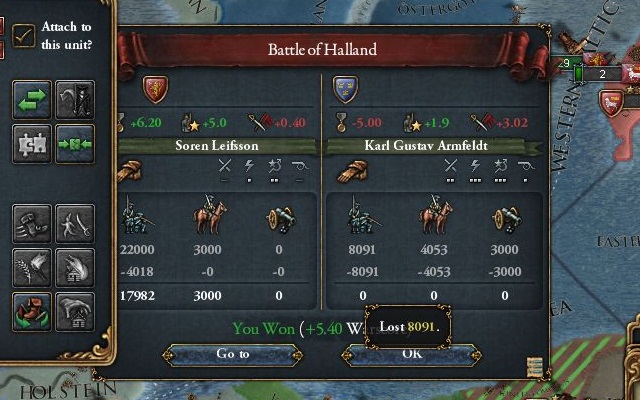 戦力の上では互角に近い両国だが、NIとラッキー国家修正によりデンマークが独力でスウェーデンを撃破する可能性は高くない。