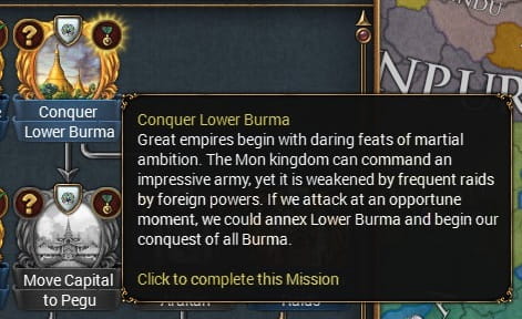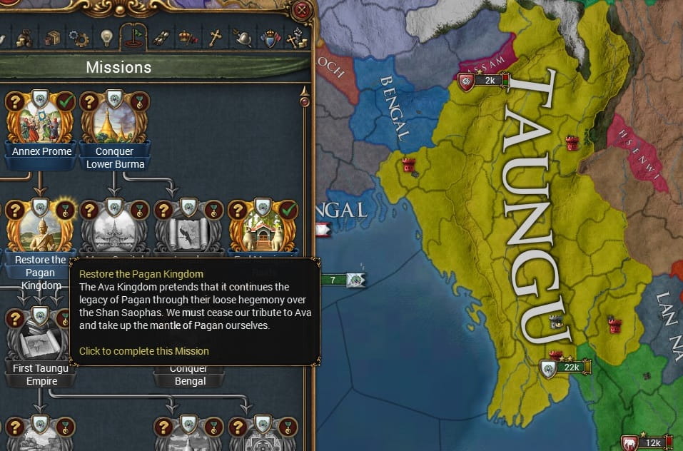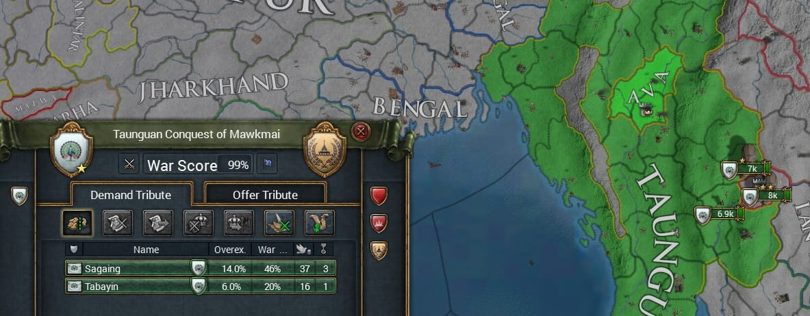 ビルマの征服によりいくつかのミッションを達成したことで、多くの請求権を得るTaunguですが、