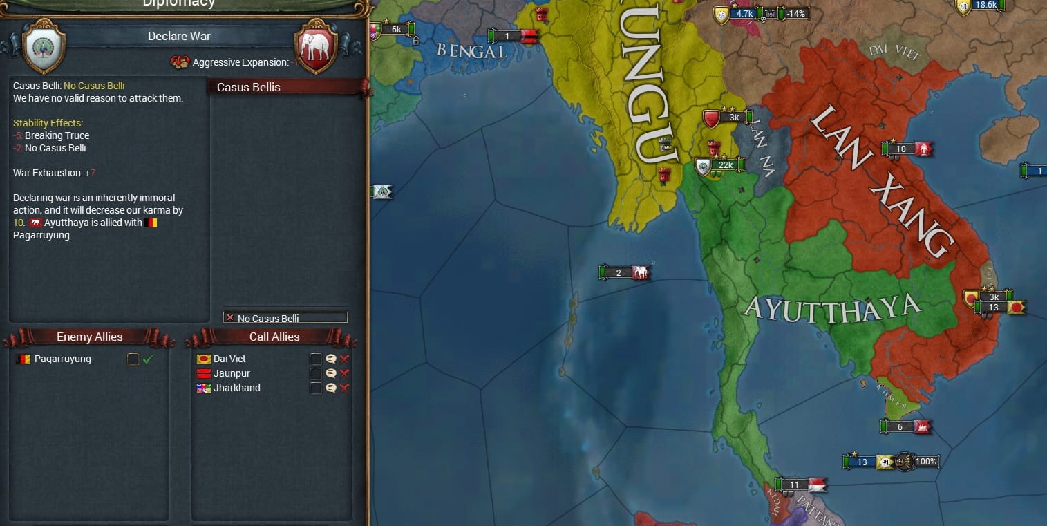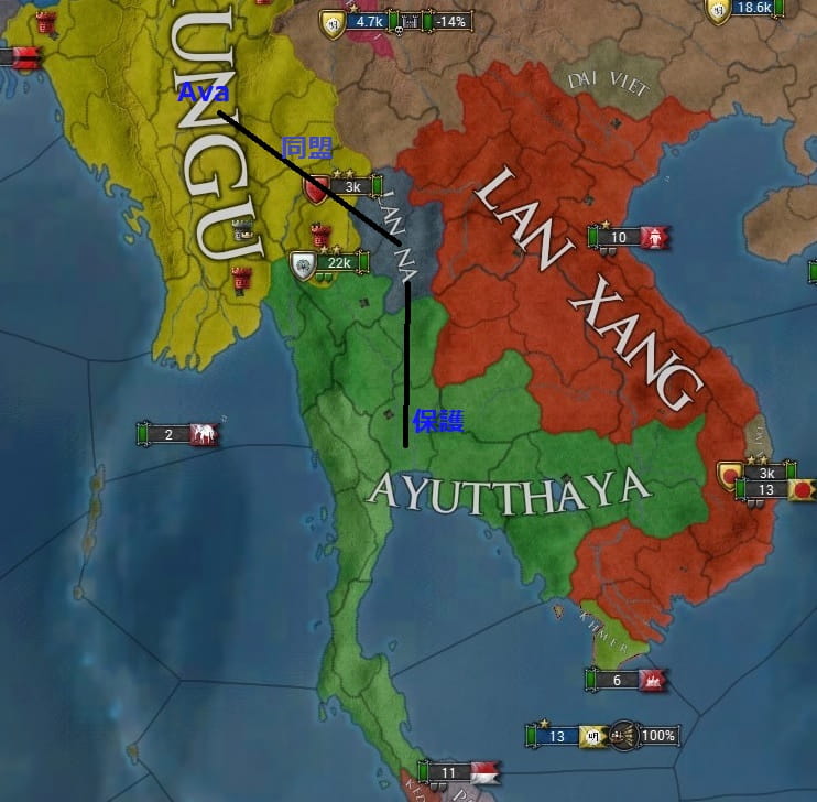 もともとの計画はAyutthataが保護しているLan Naに宣戦布告し、同盟から鞍替えし領土を奪う予定でした。