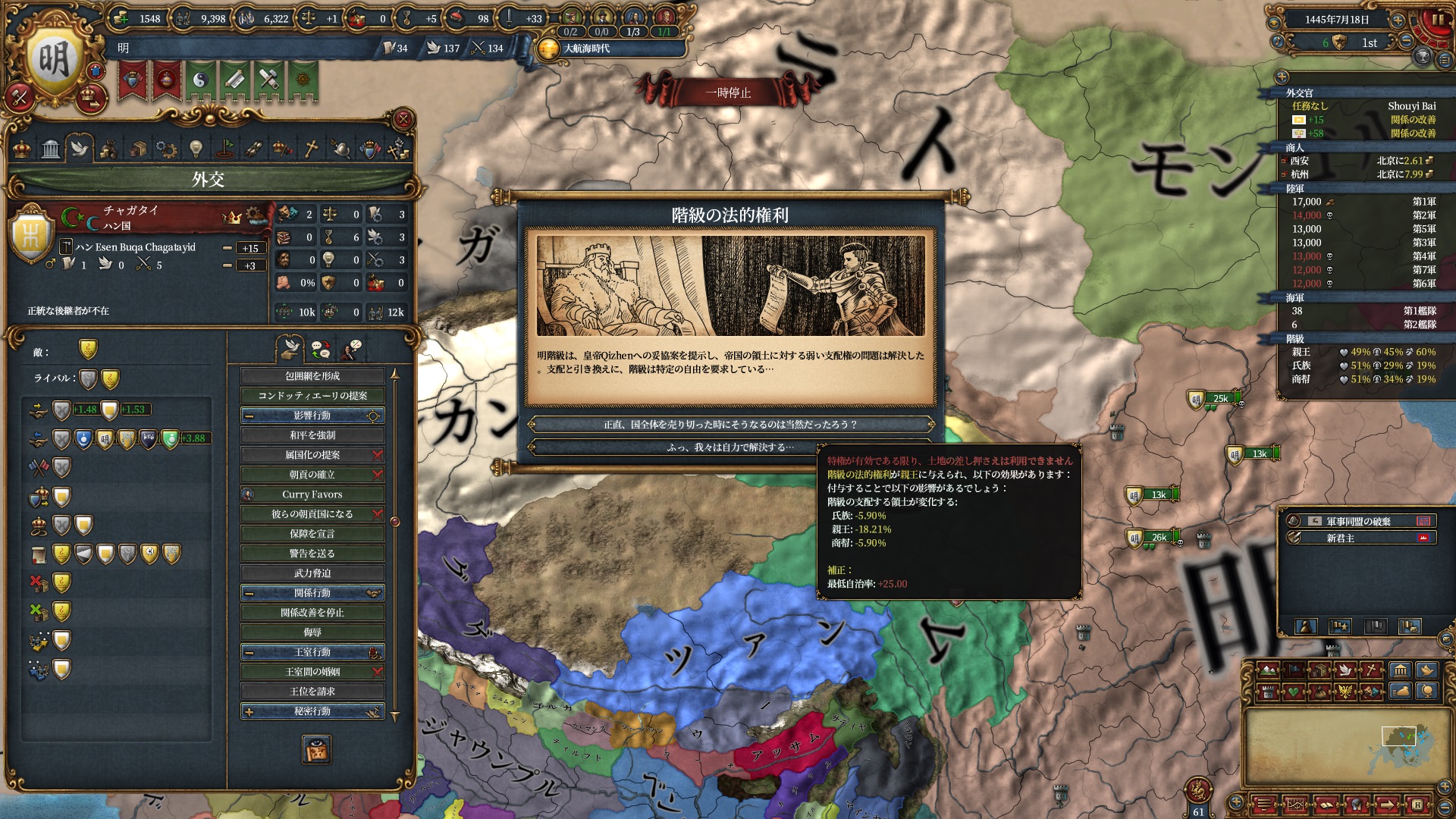 先述の通りチャガダイには一切土地を渡していないのでこの後同盟を切られています。