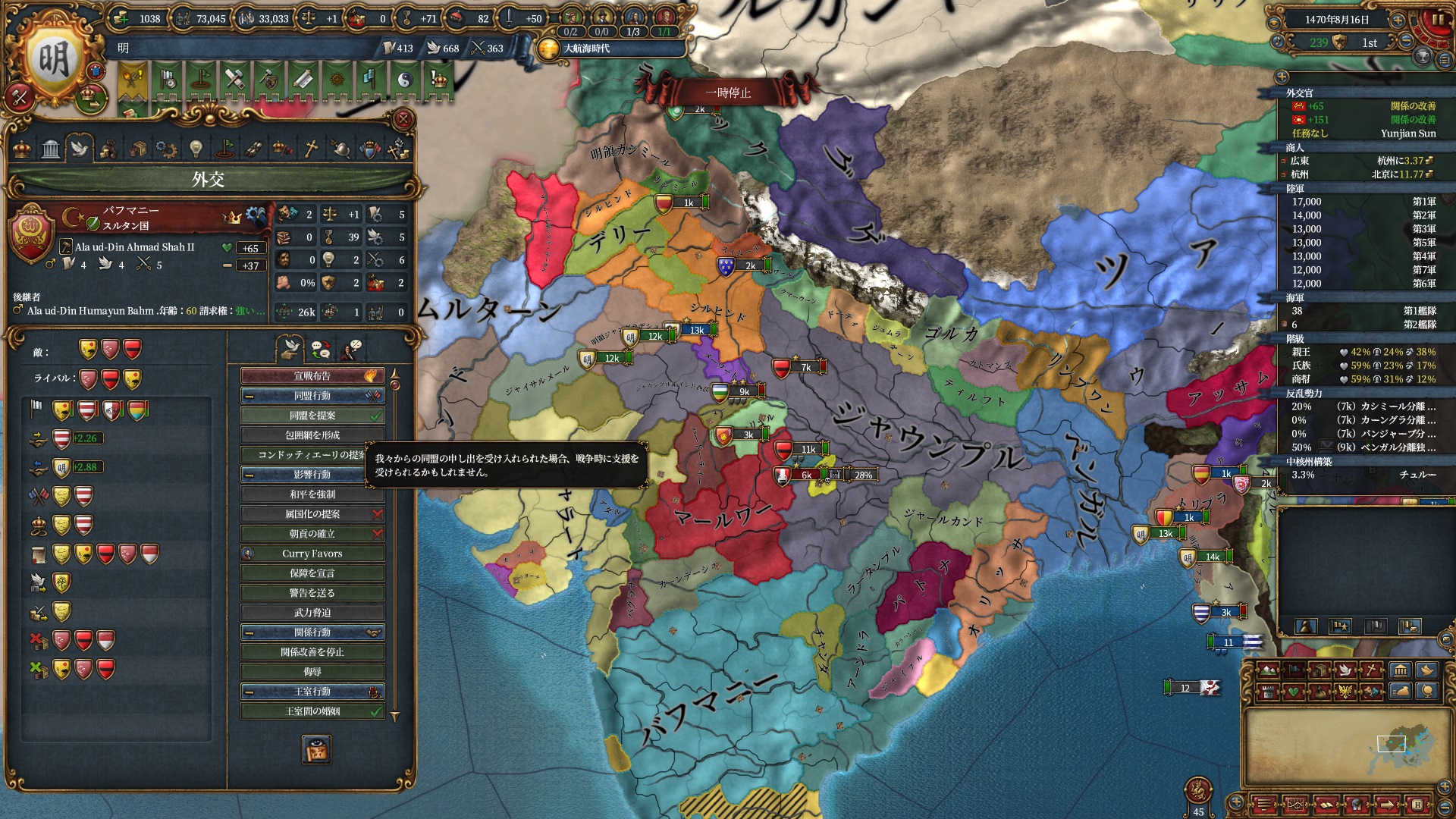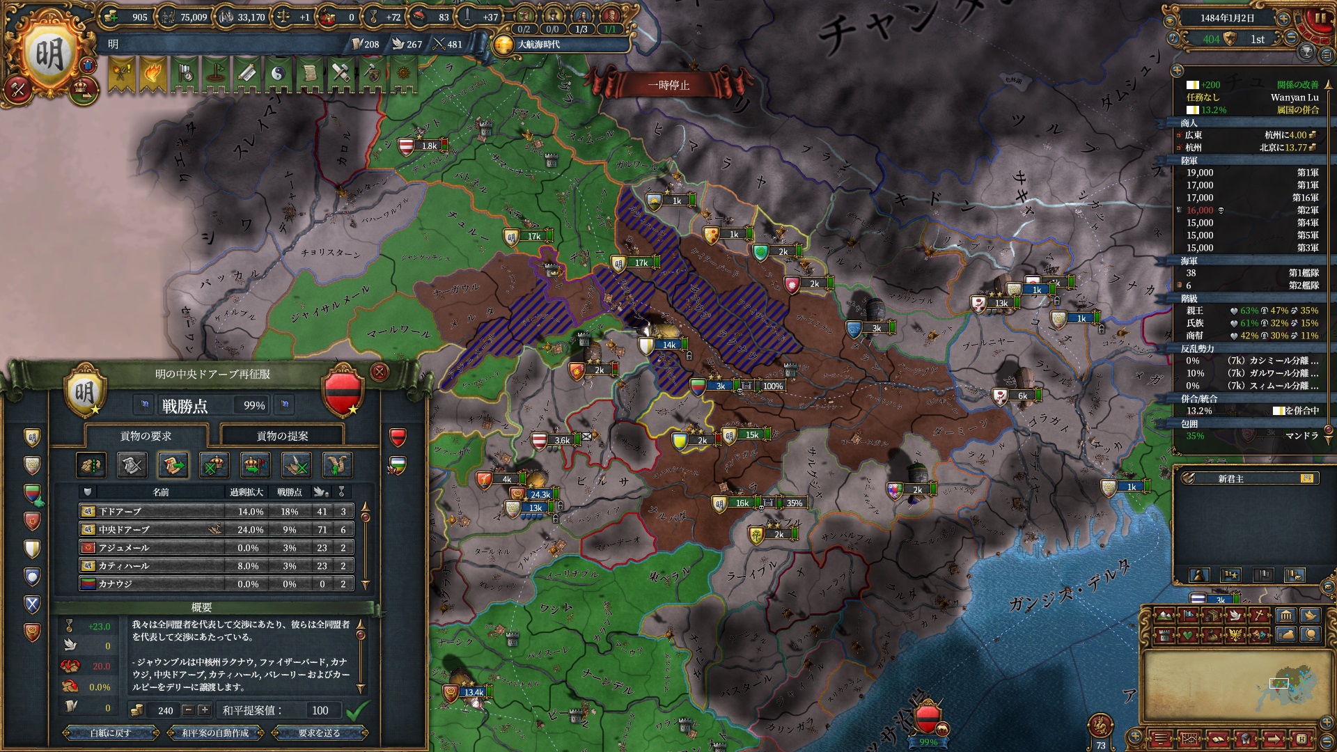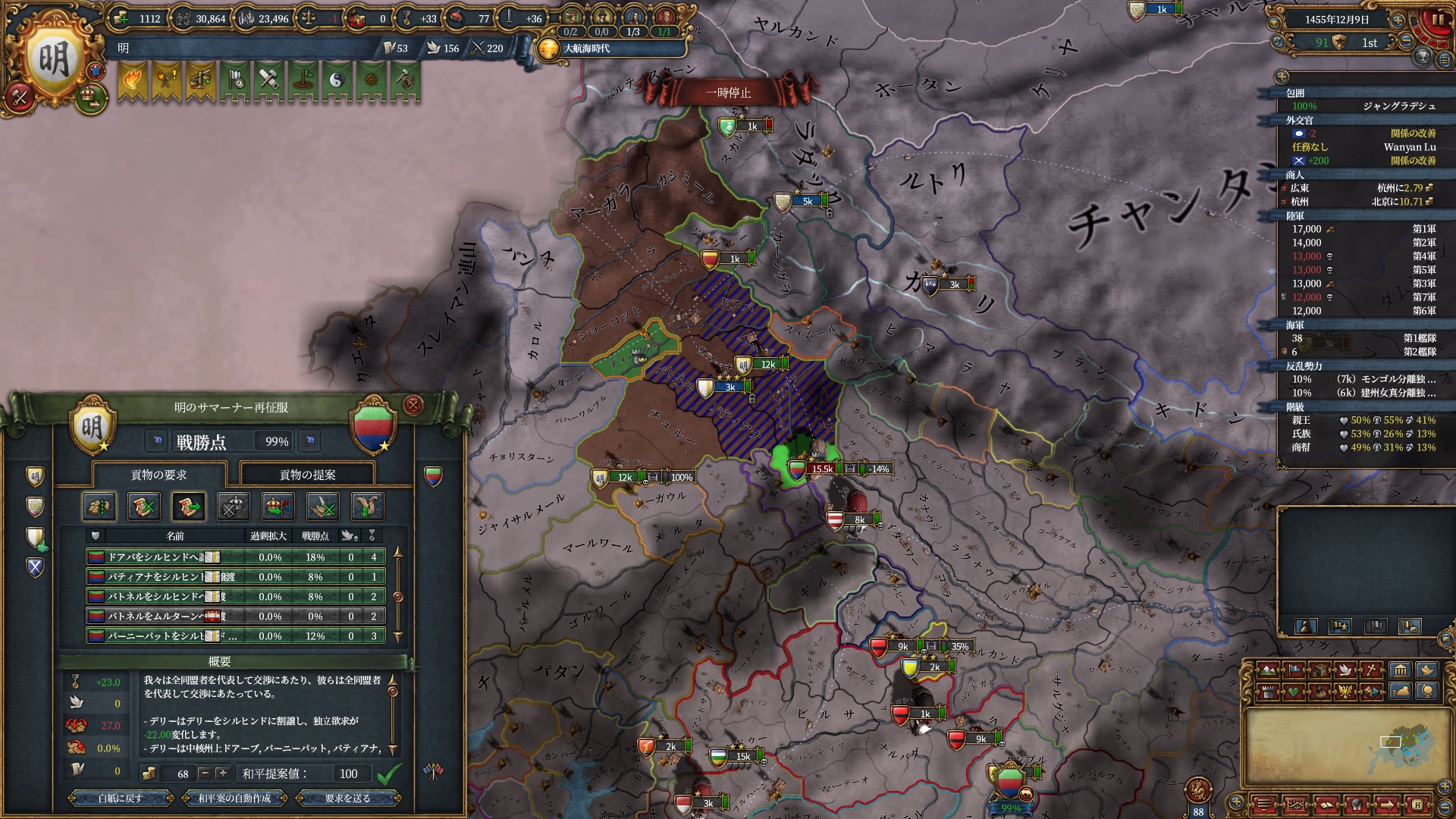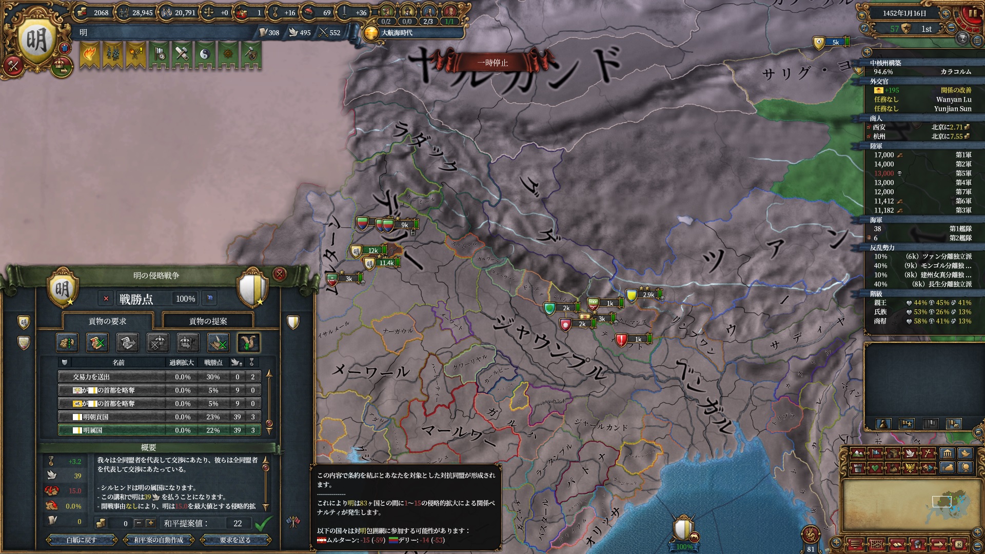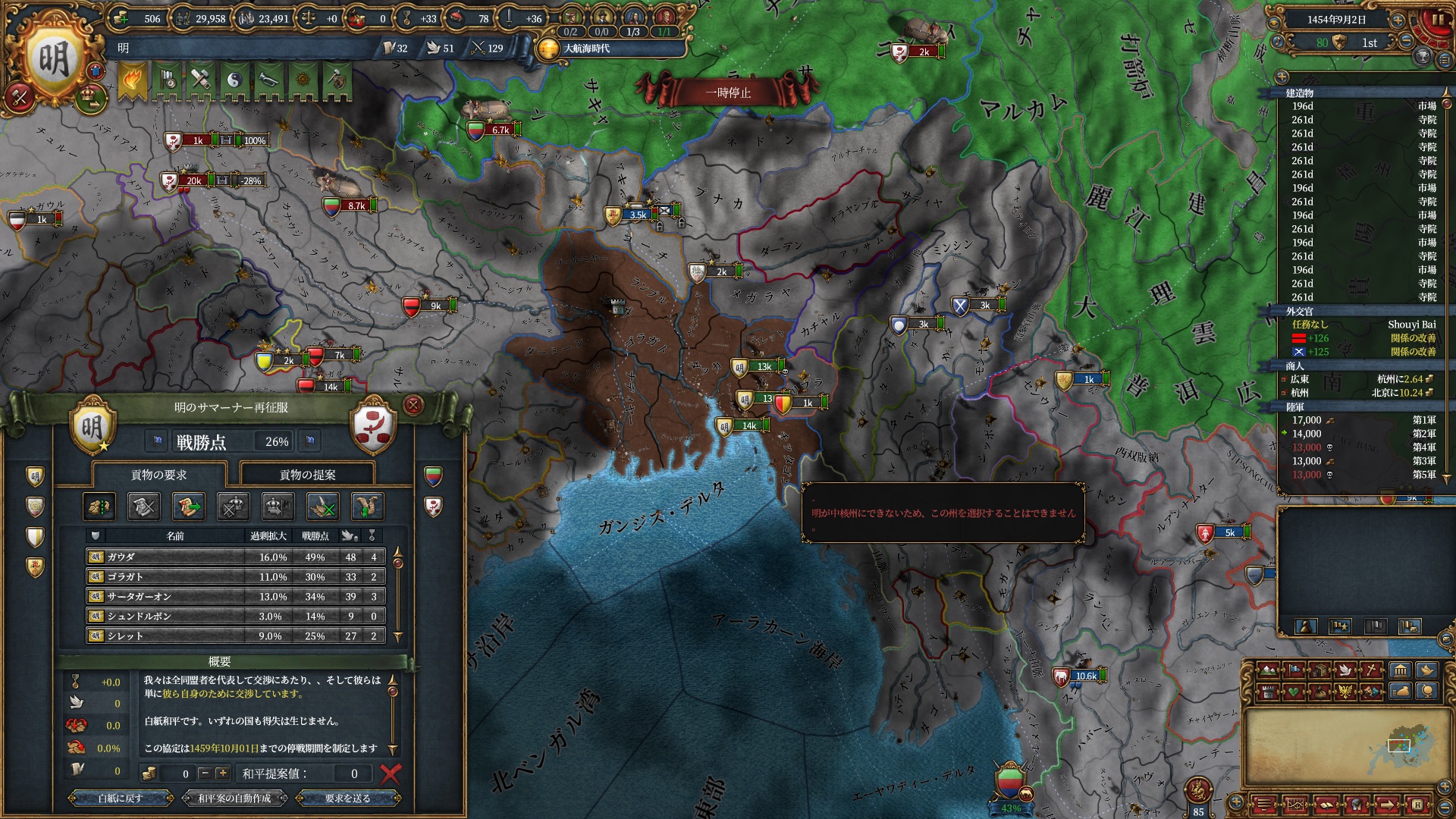 また、以降は講和で開発度を強奪し反乱改宗が出来るよう急ぎます。