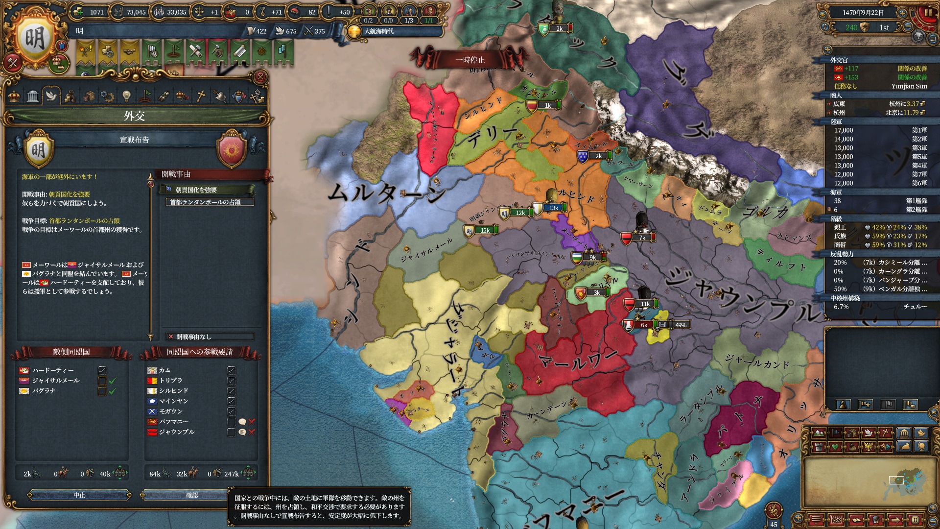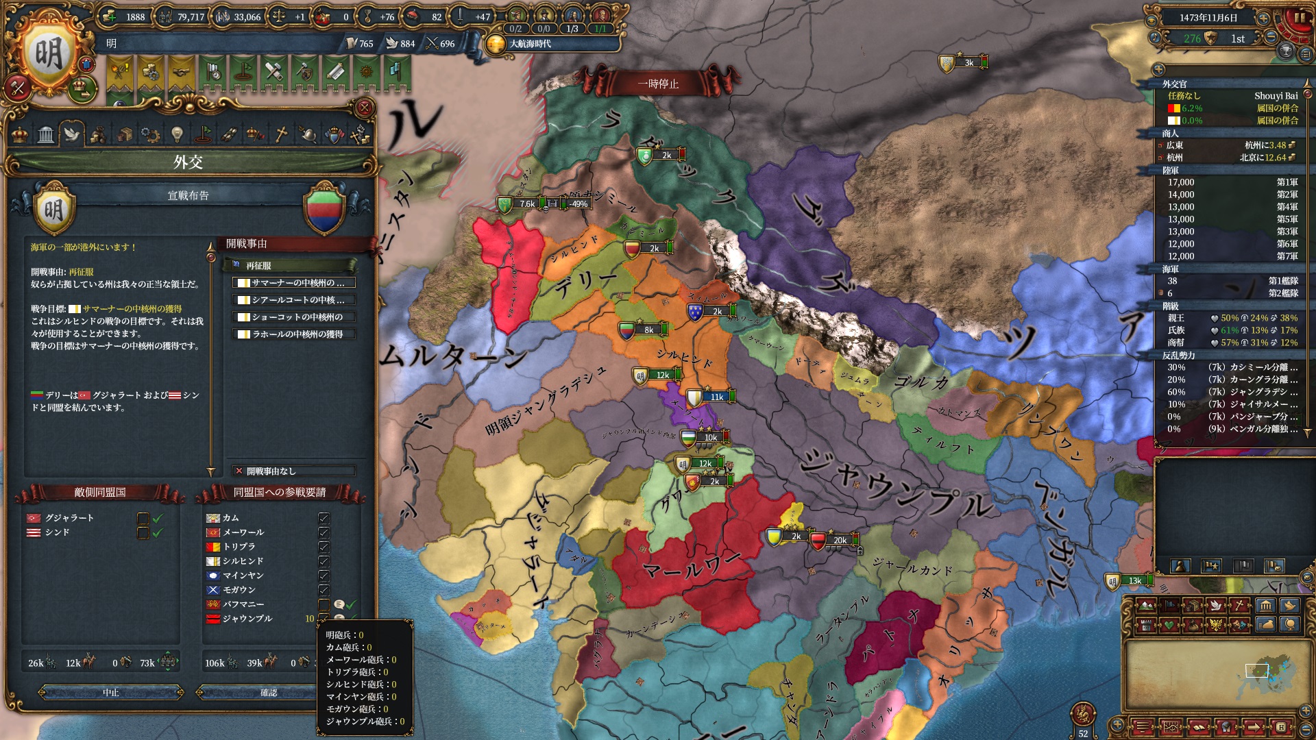 これでジャウンプルに対し広大な属国再征服CBが使えるようになりました。