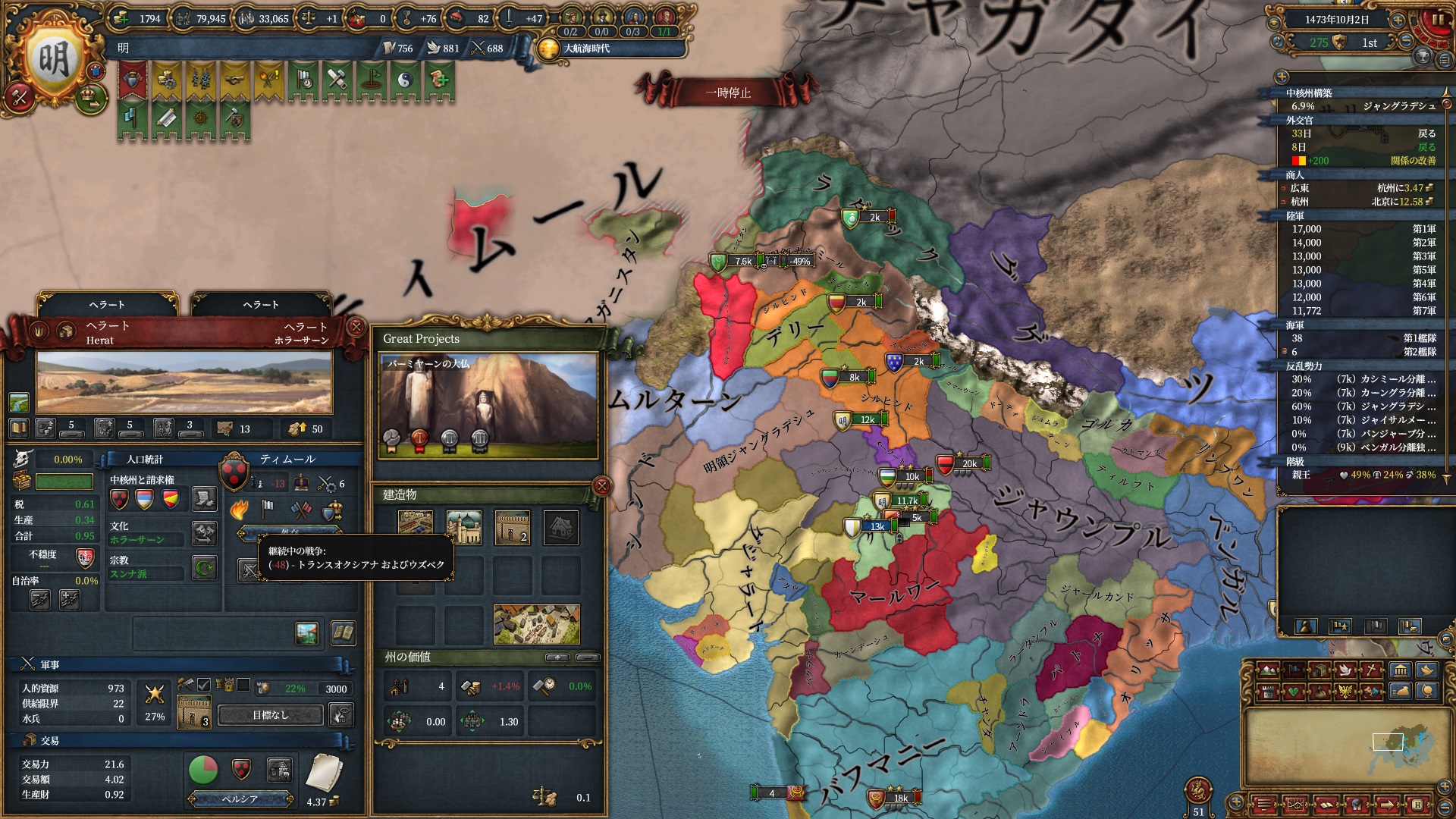ここから見える分には大きく見えるのですがティムールはトランスオクシアナに逃げられているようです。