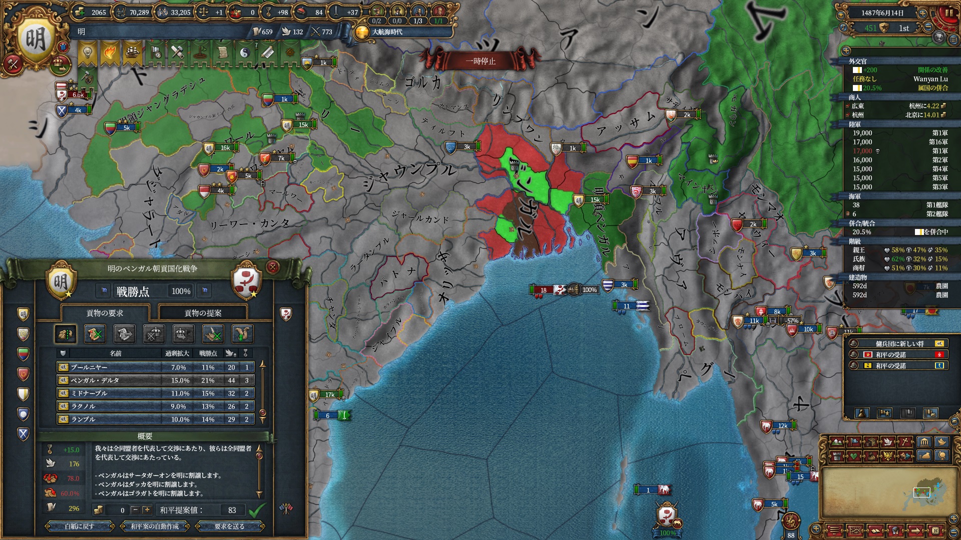 またベンガルがついてくるようなのでベンガル湾の州を1州貰おうとする魂胆もありました(過去形)