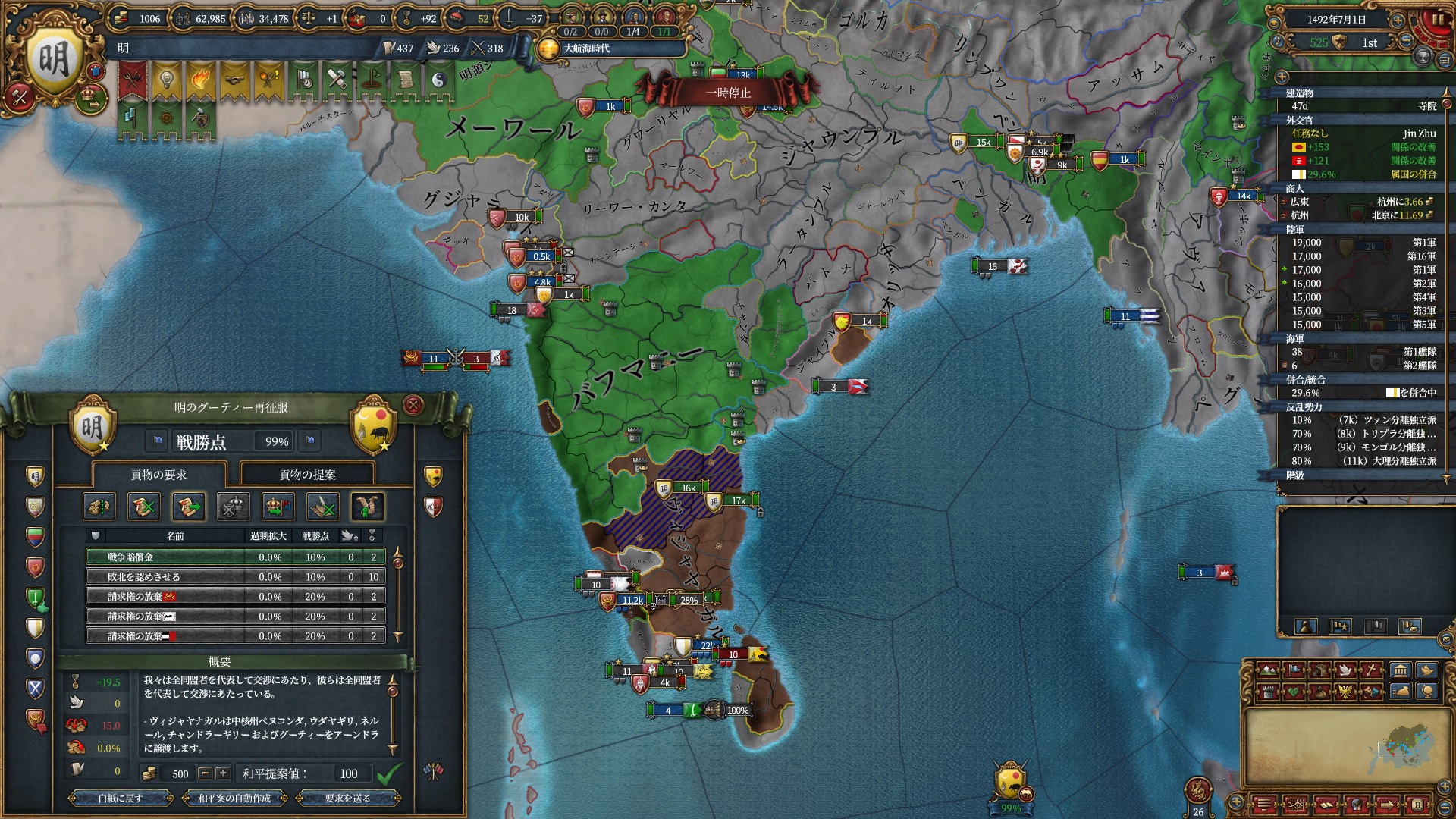 ヴィジャヤナガルに対して結構な属国再征服が行えます。