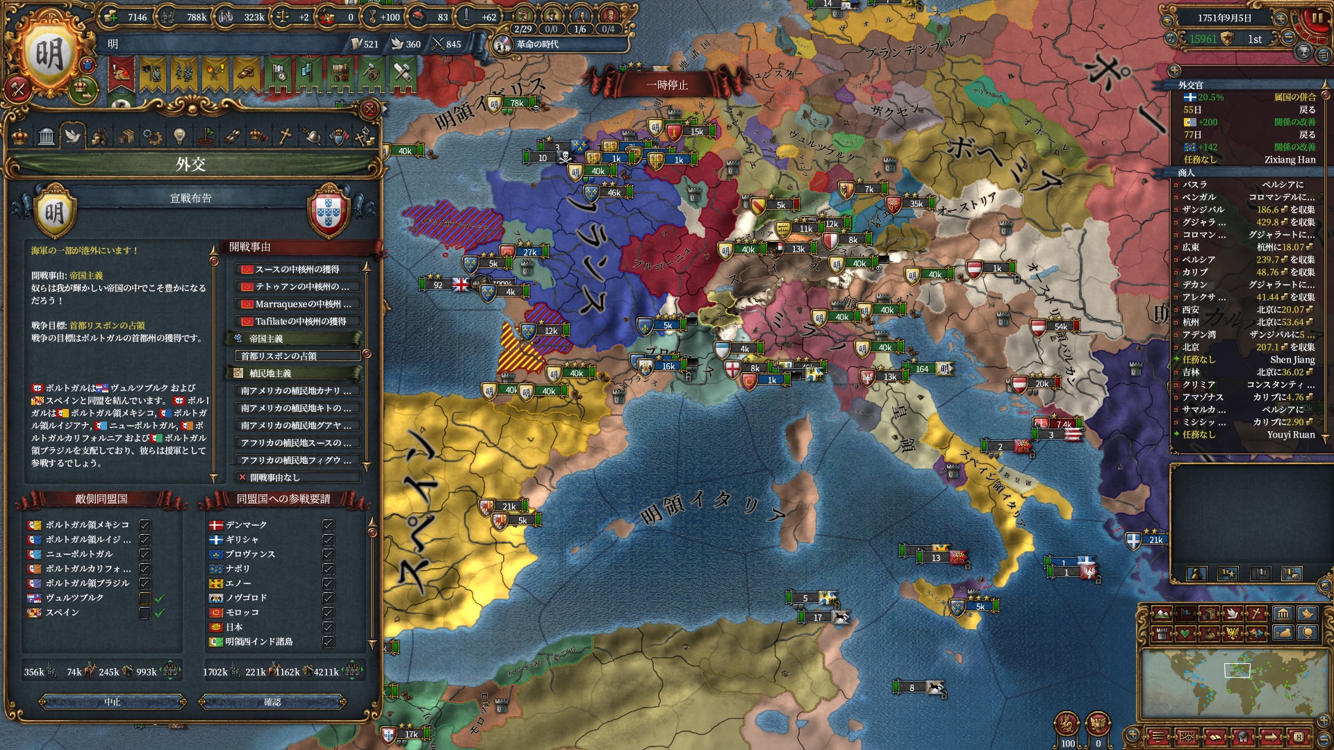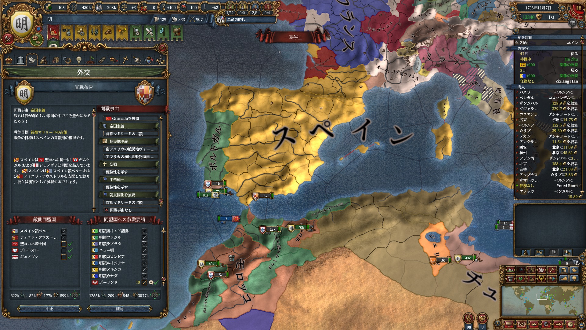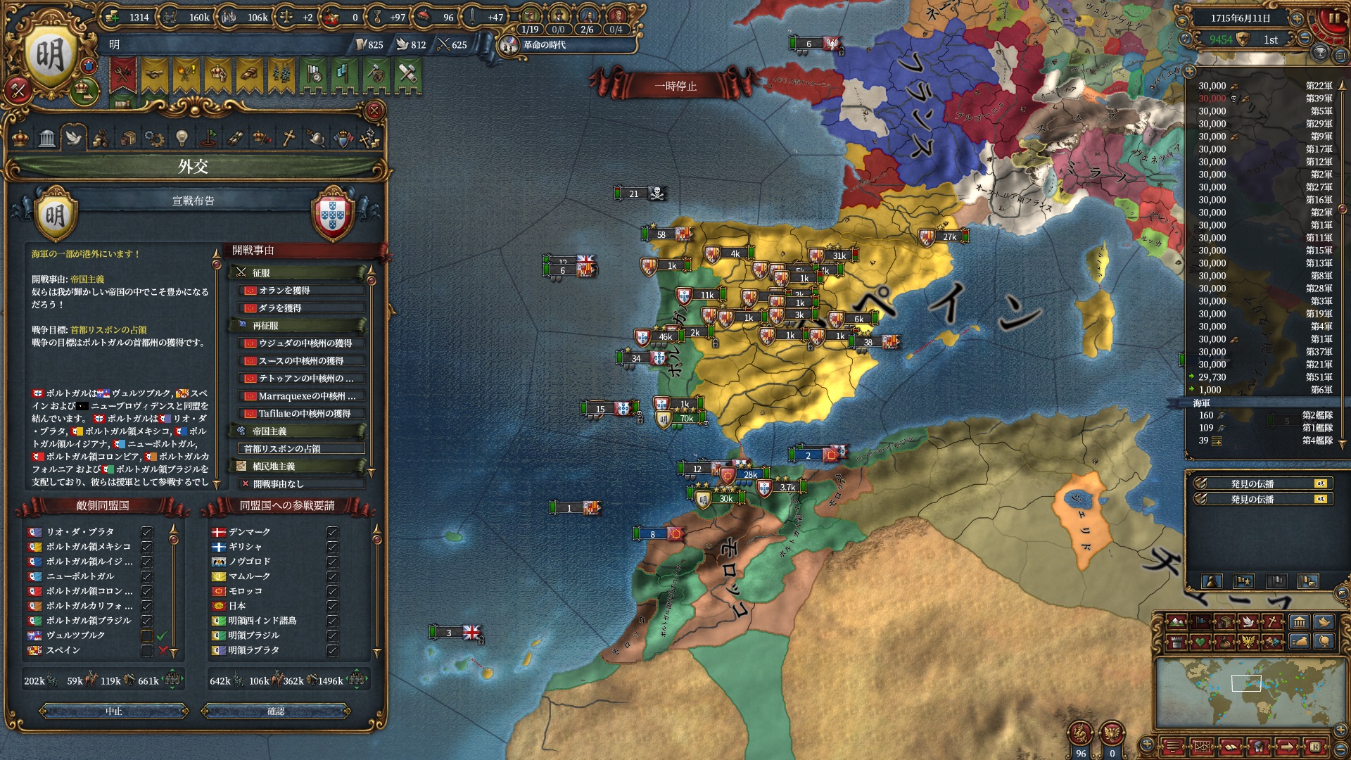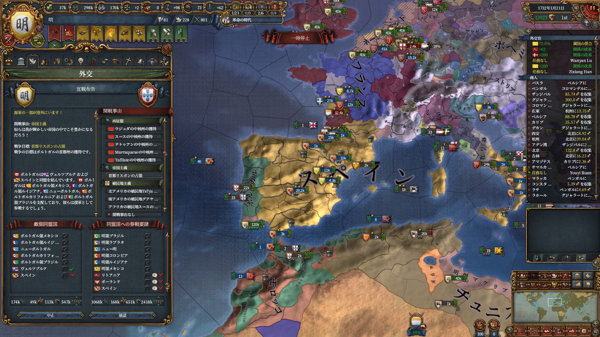 オランダ戦の最中ですが、スペインとは恐らく同盟が今回で切れそうなので今のうちにポルトガルに侵攻します。
