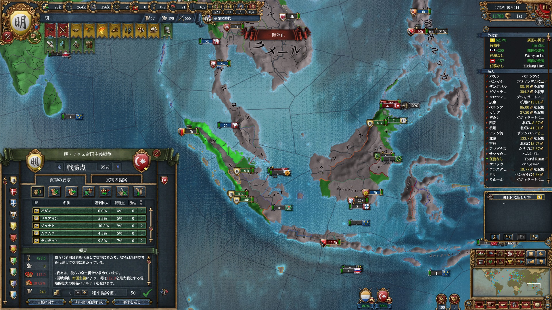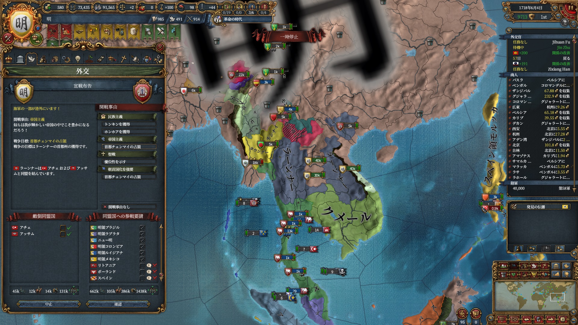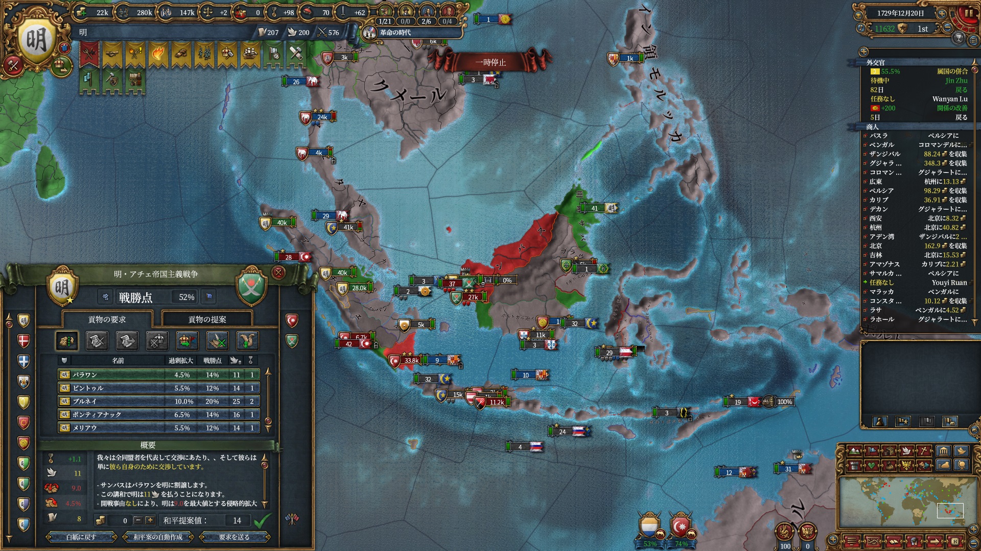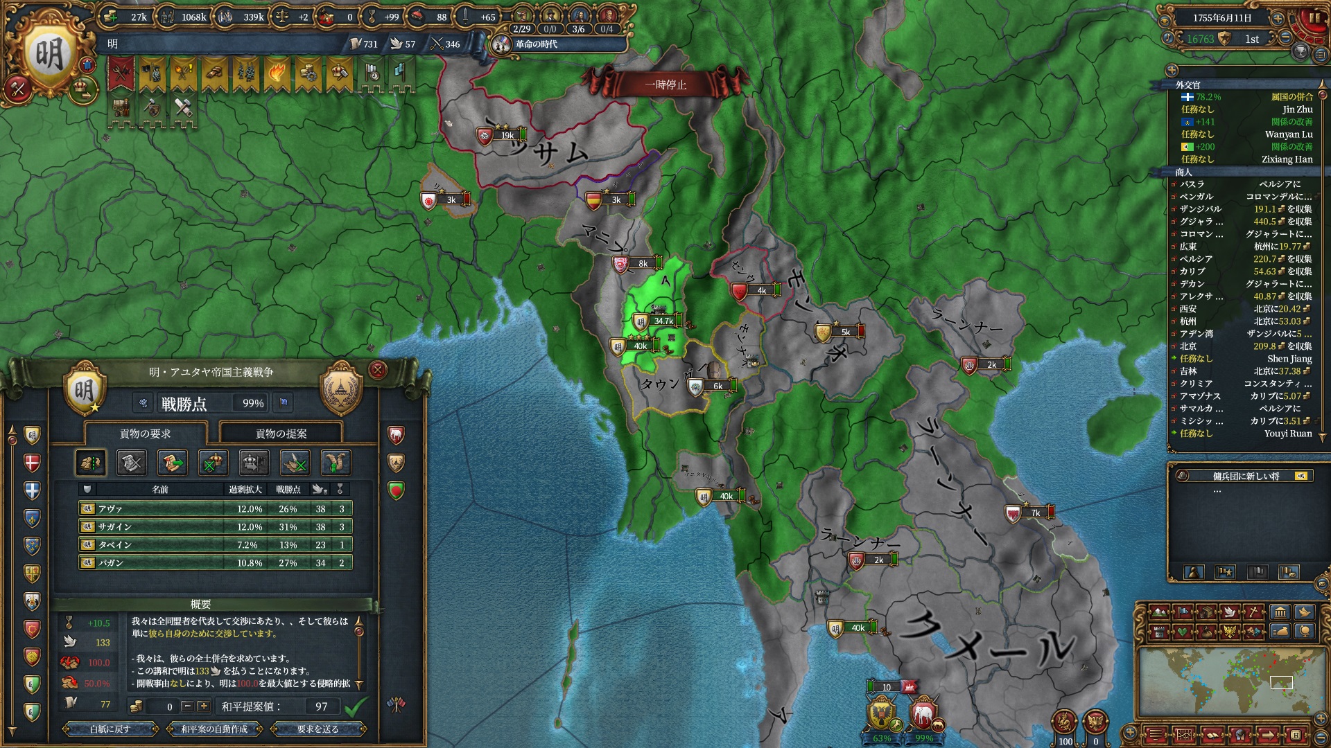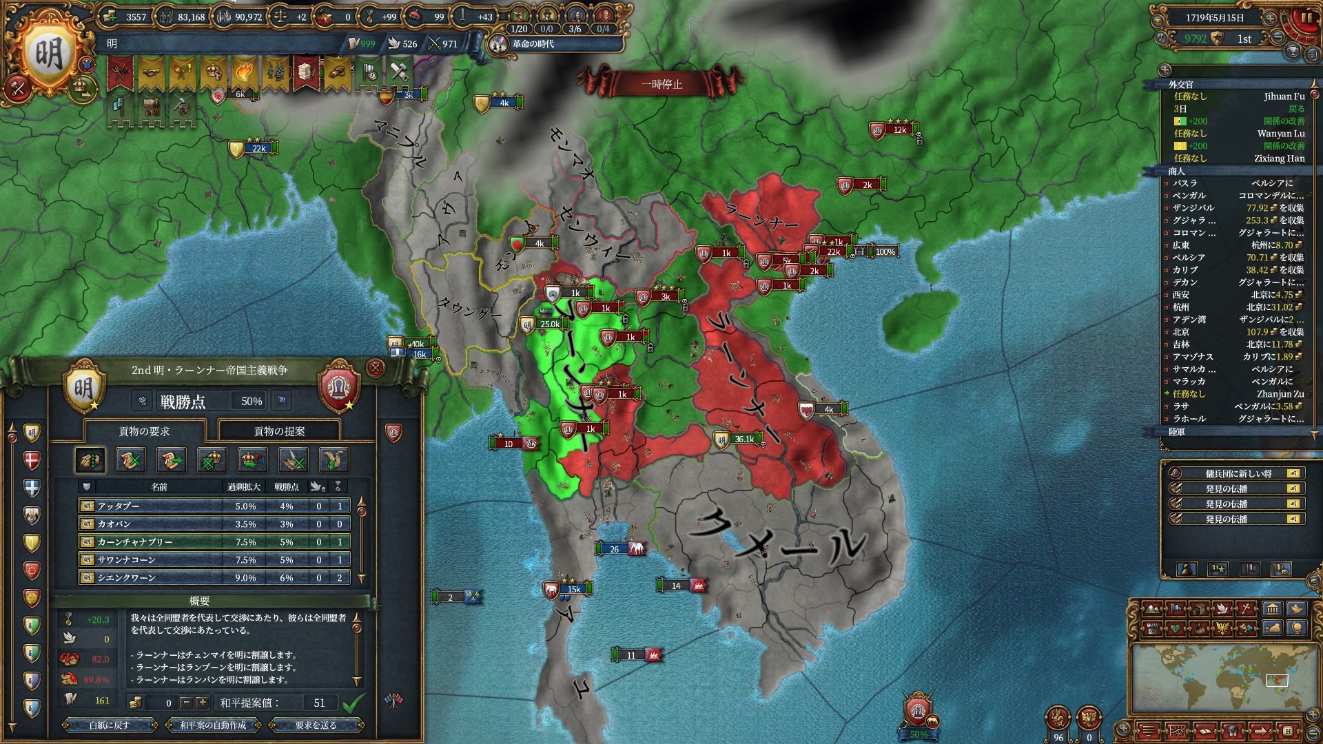 次はオスマンに行く予定なのでアチェと同盟しているラーンナーに仕掛け、同盟破棄させました。
