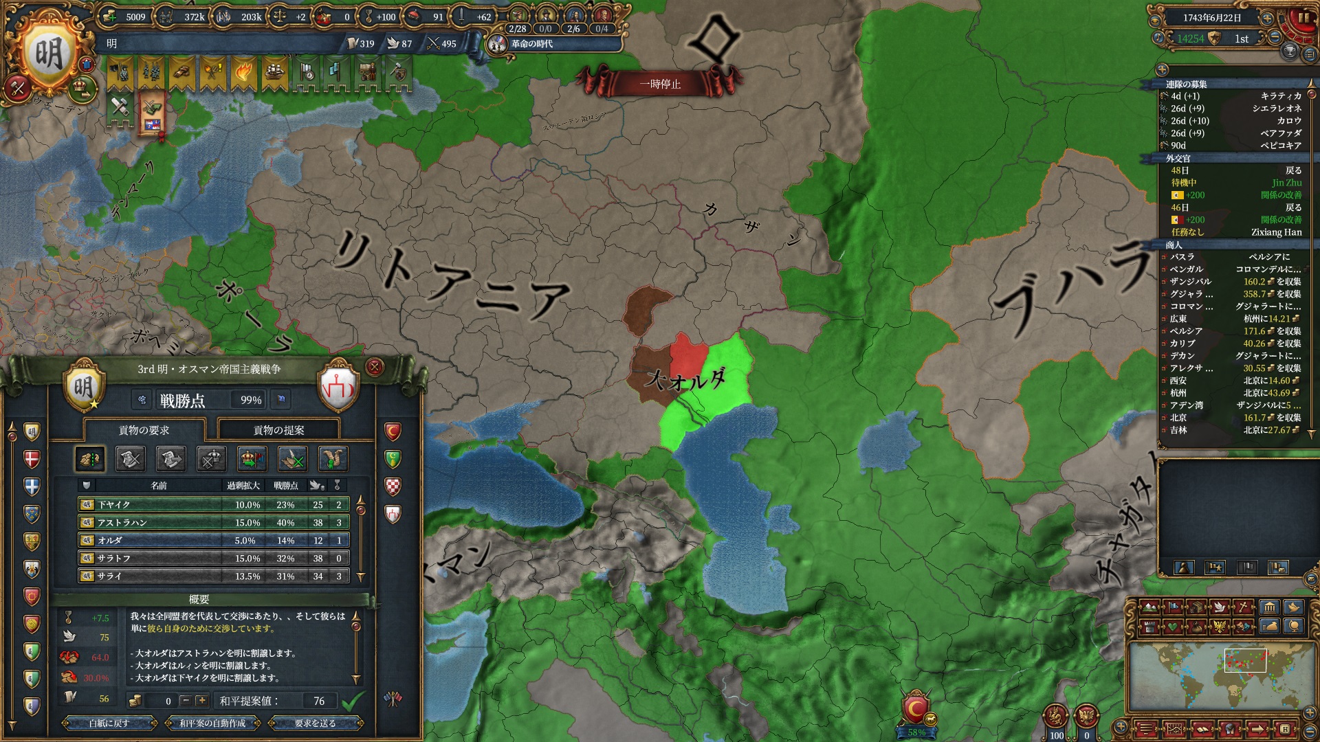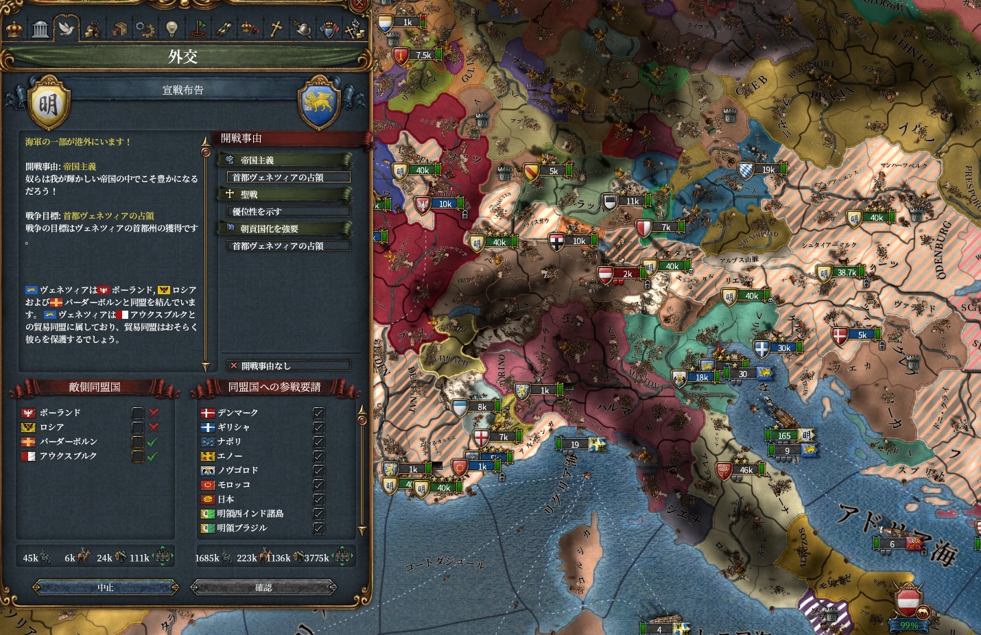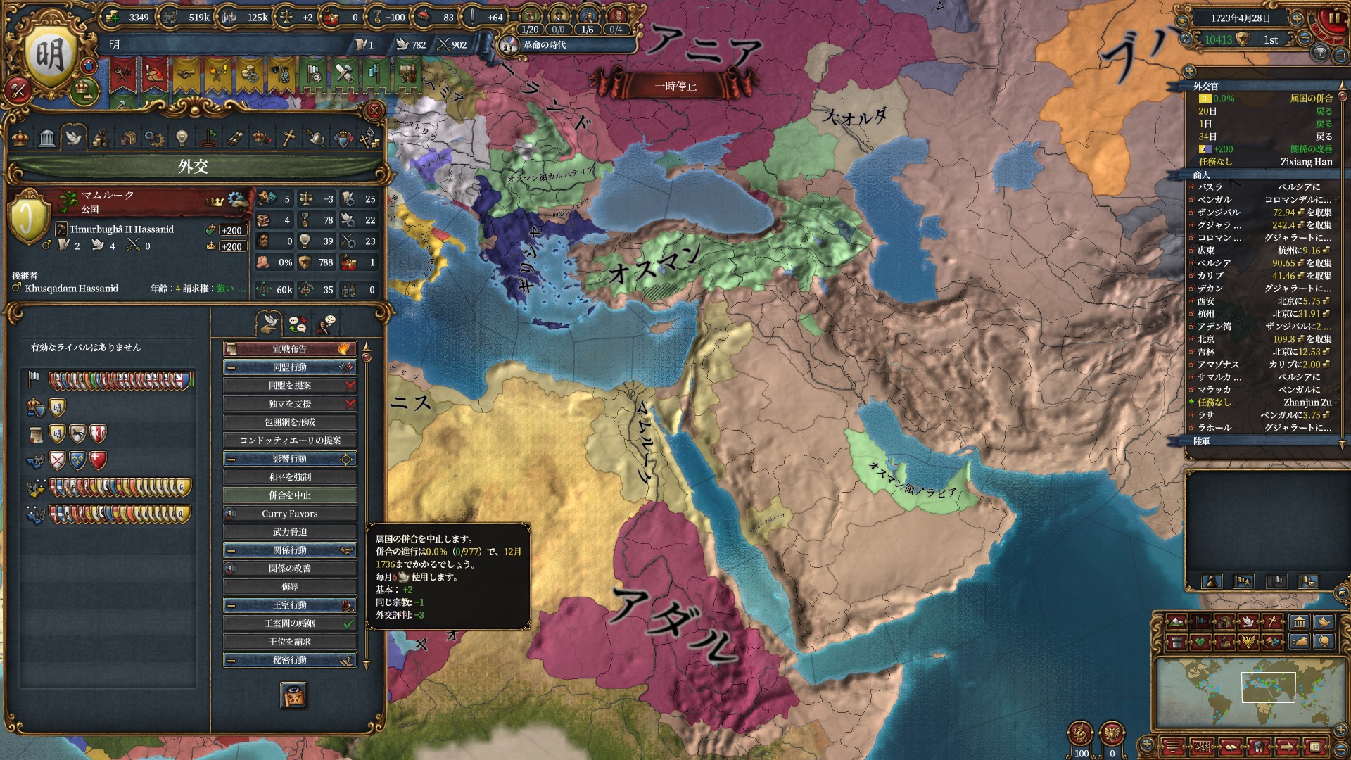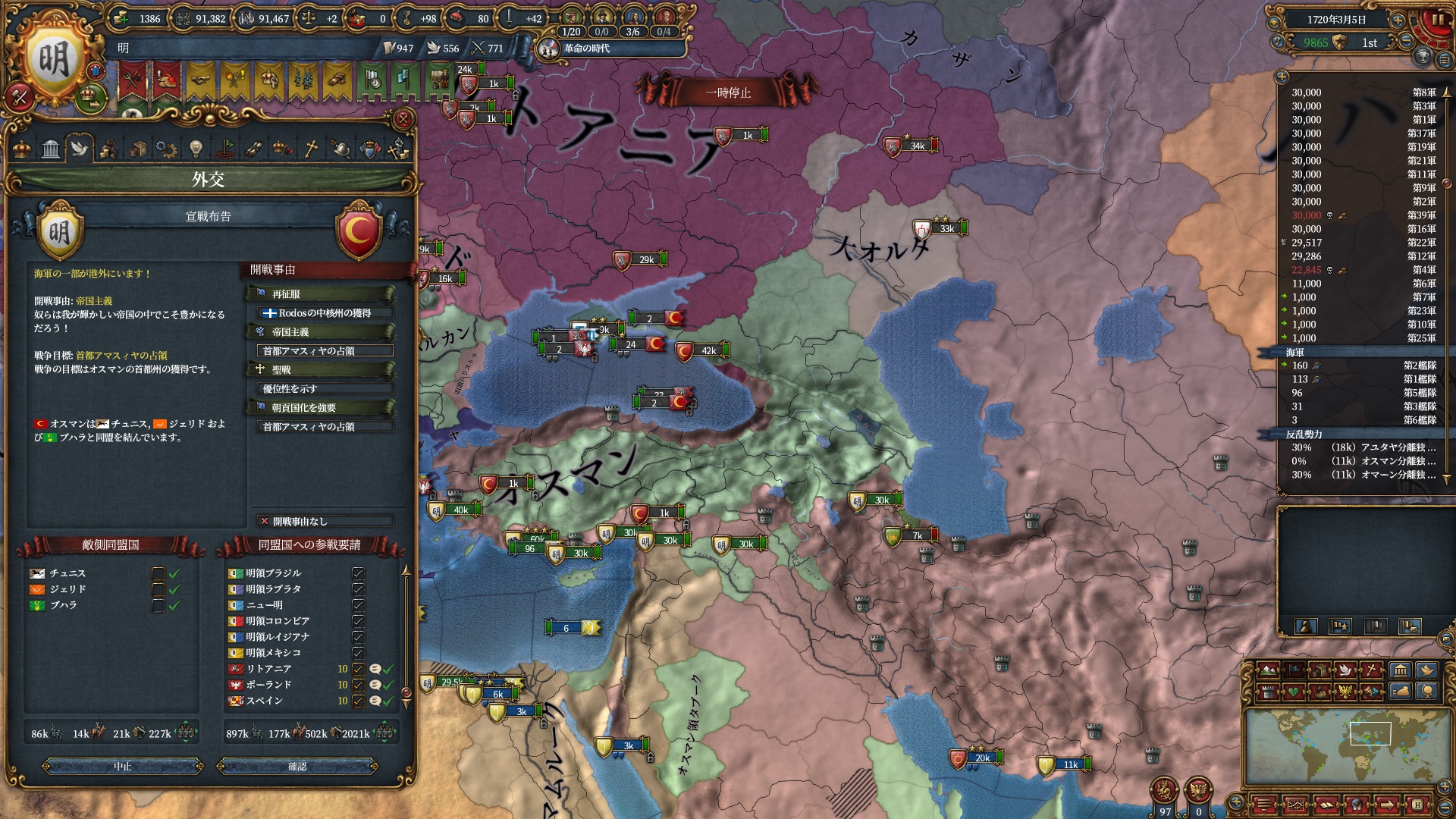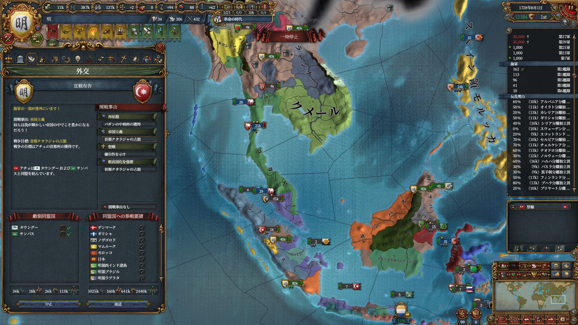次はオスマンに行く予定なのでアチェと同盟しているラーンナーに仕掛け、同盟破棄させました。