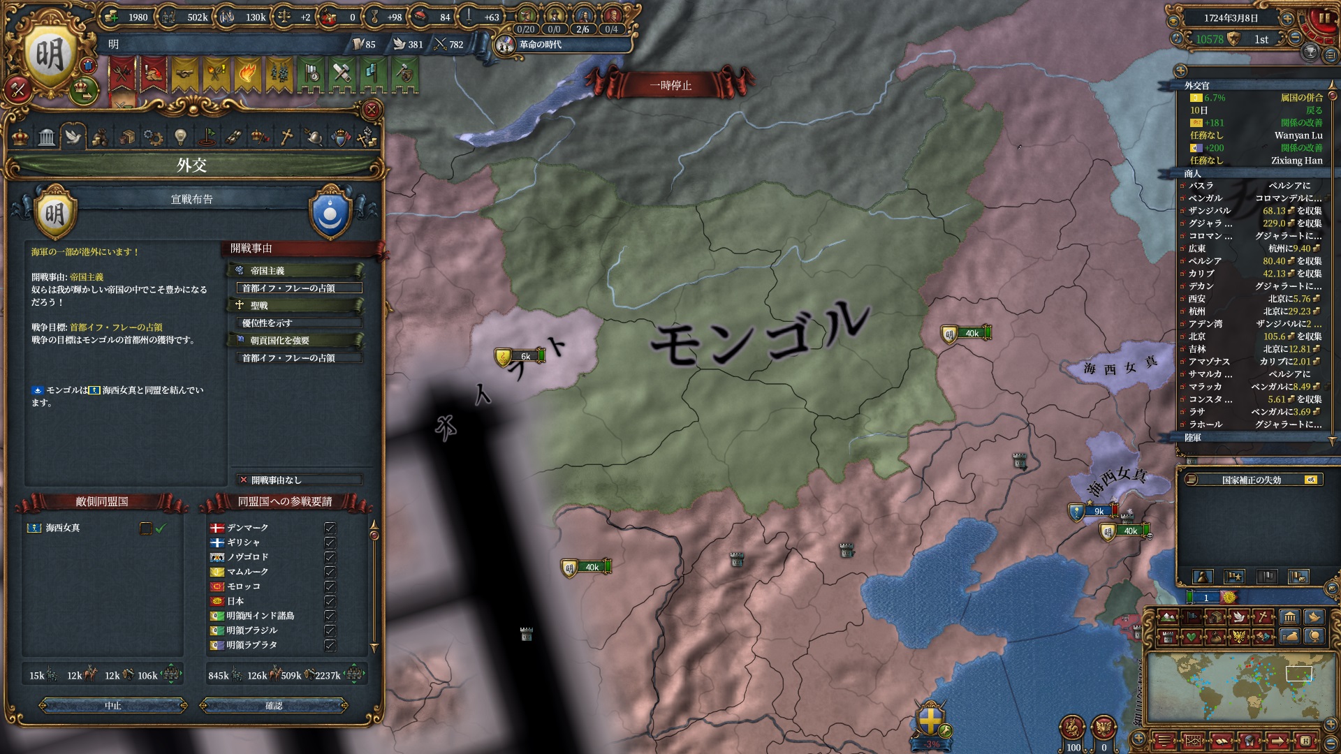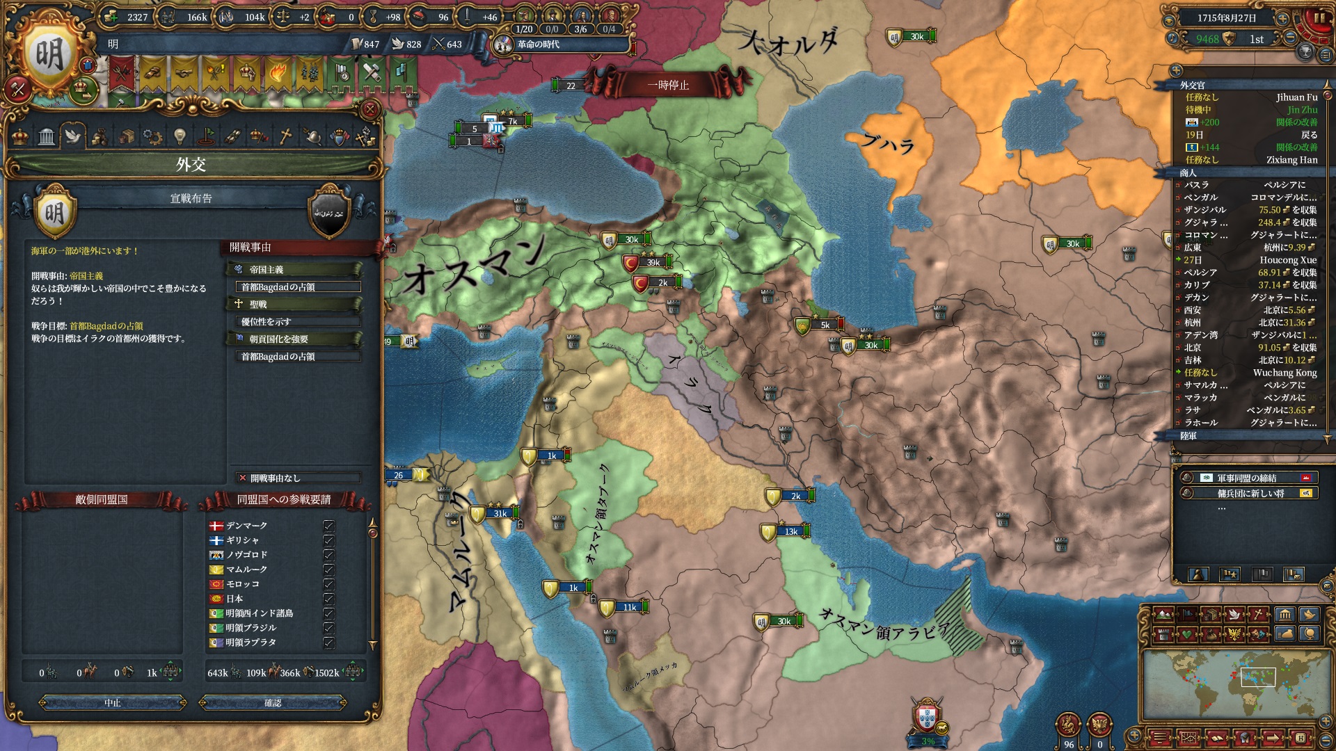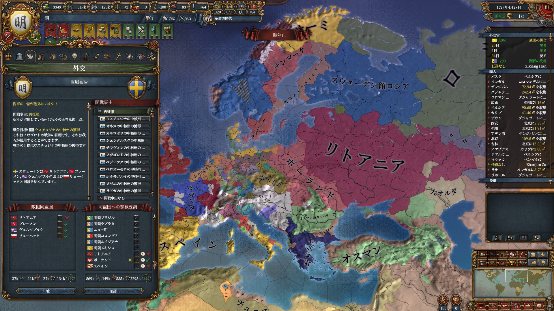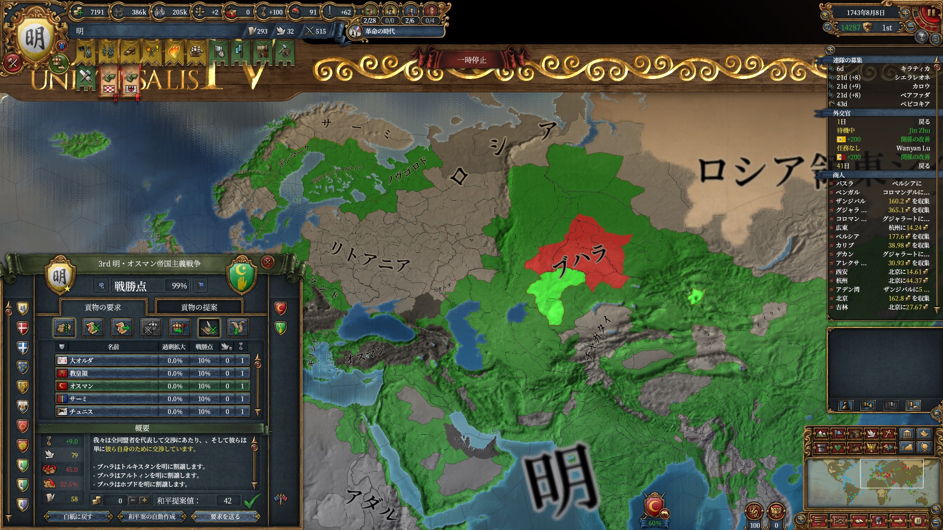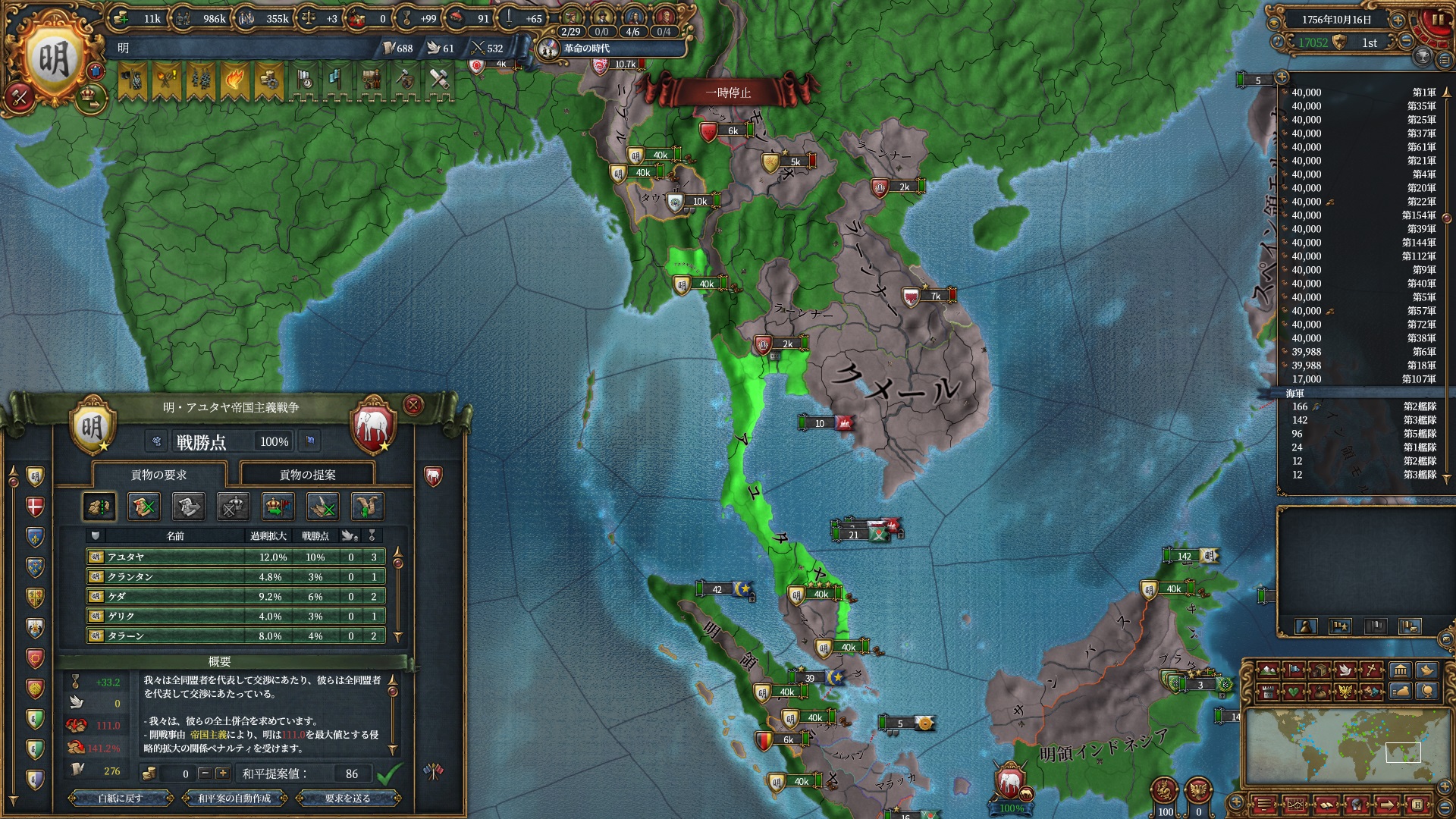 次はオスマンに行く予定なのでアチェと同盟しているラーンナーに仕掛け、同盟破棄させました。