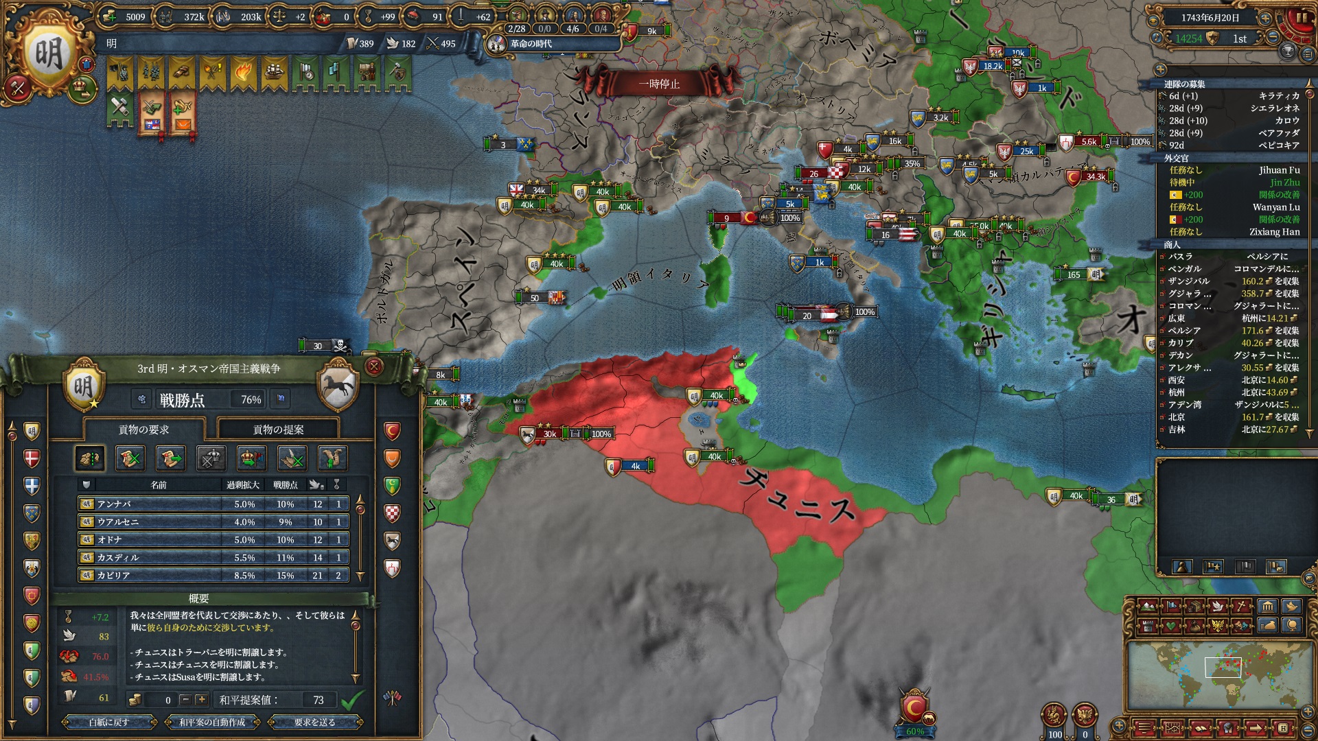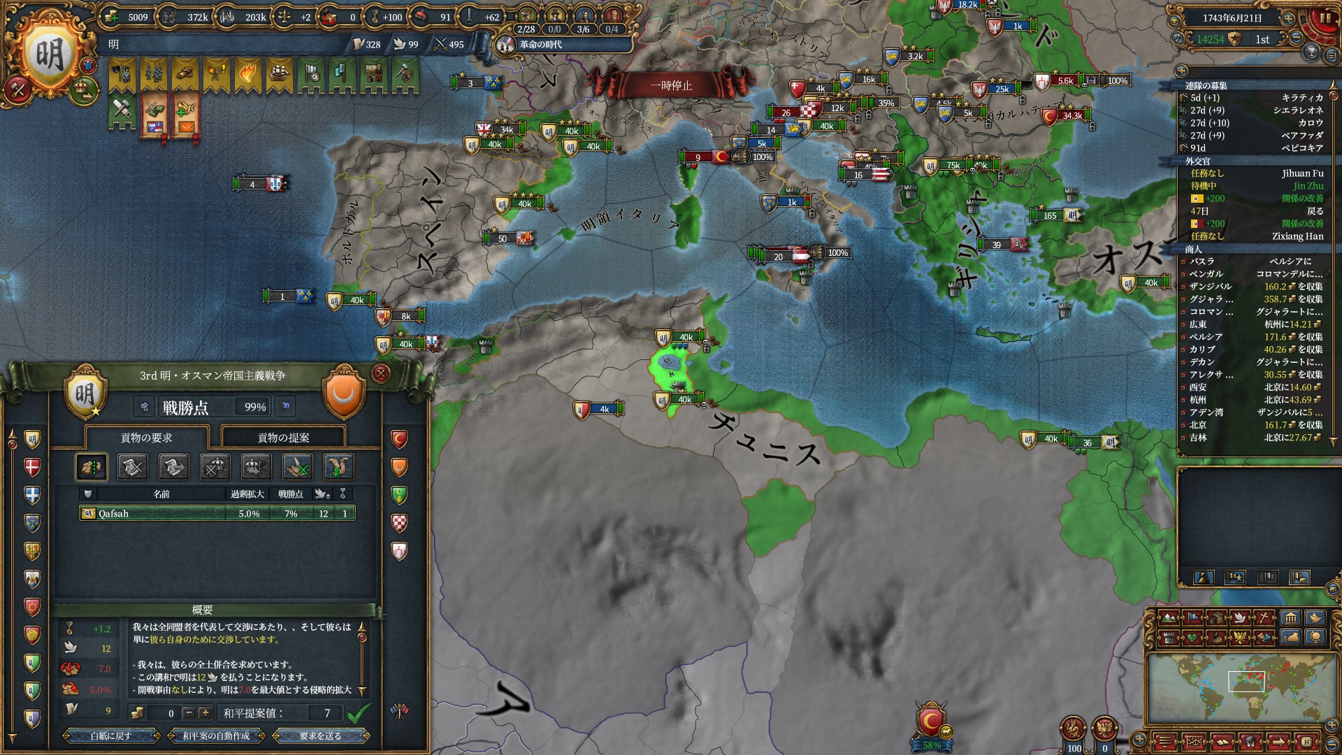 地味にチュニスはシチリア島に上陸しているため隣接しているスペインの保障が飛んできて厄介でしたので奪います。