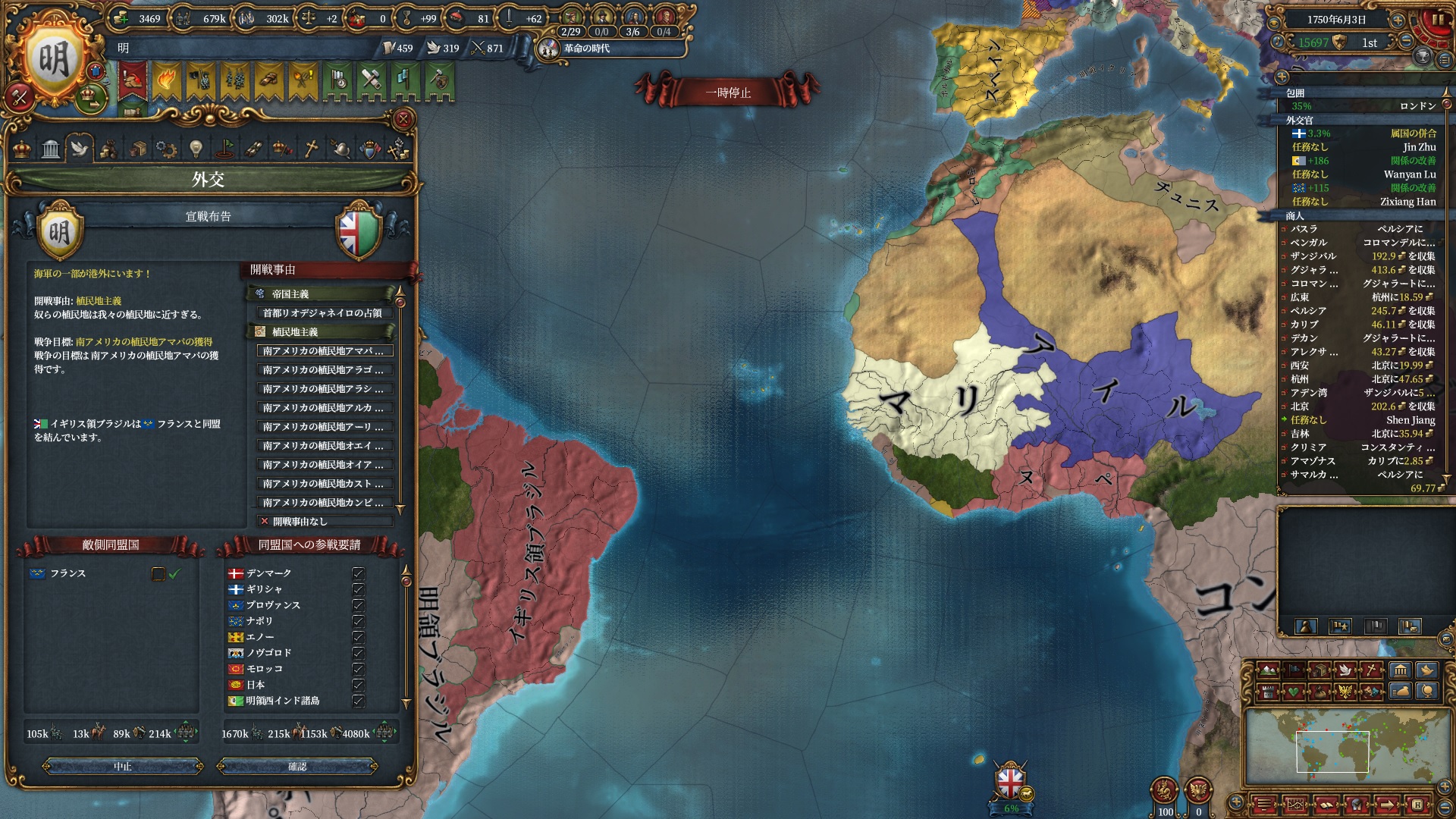 フランスがブラジルとカスカディアを連れて独立戦争を起こしました。