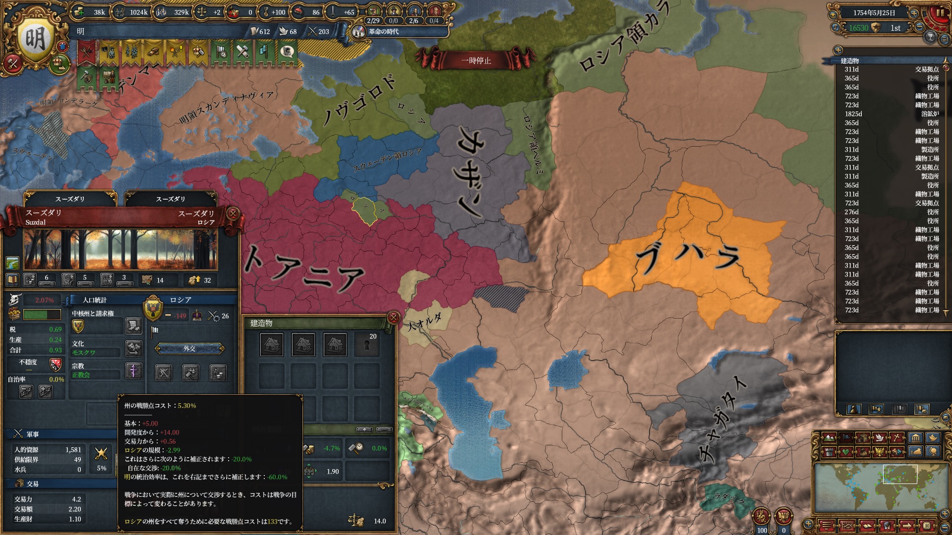 ここ以外にも過去ブハラがロシアを抉った際の地域を奪ったりしているので属国解放は厳しく断念しました。