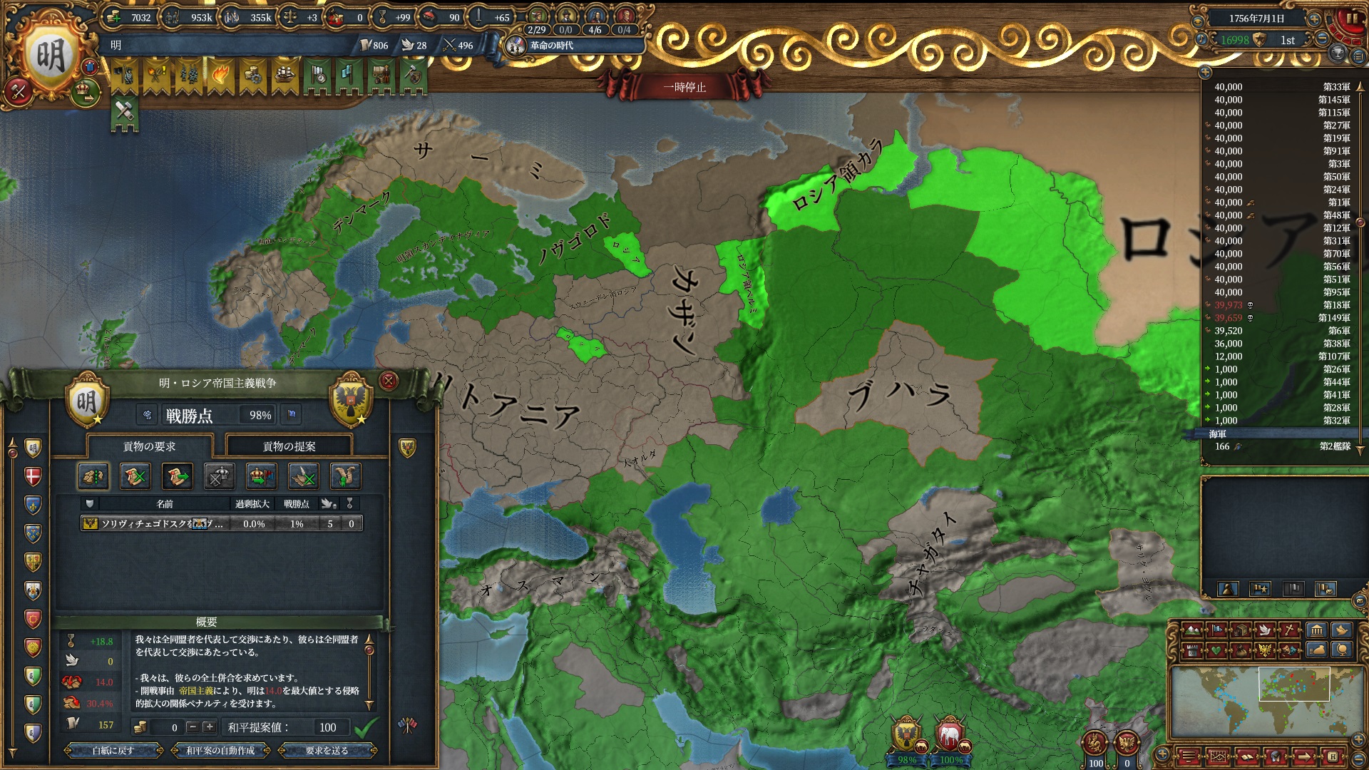 定期的にスウェーデン・リトアニアにやられており最近はカザンにもハイエナされモスクワ周りがかなり削られていました。