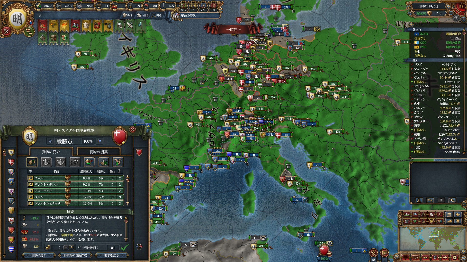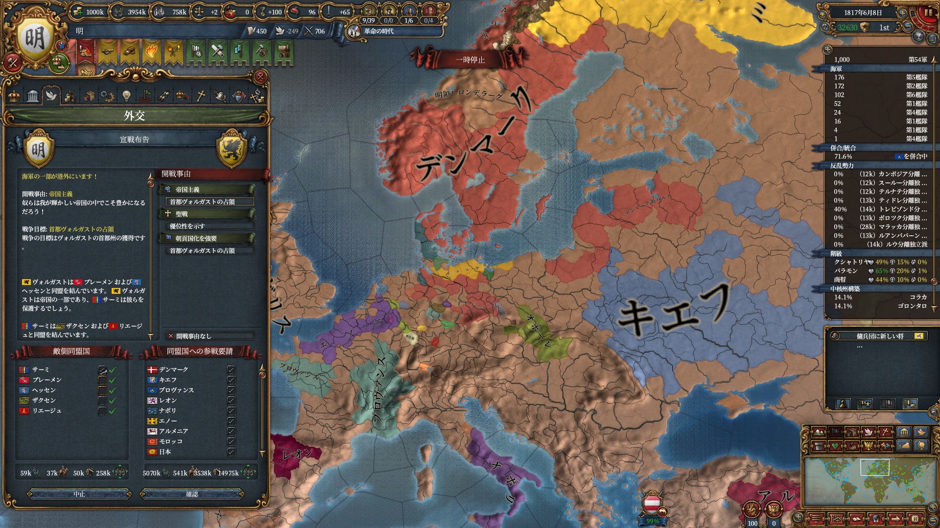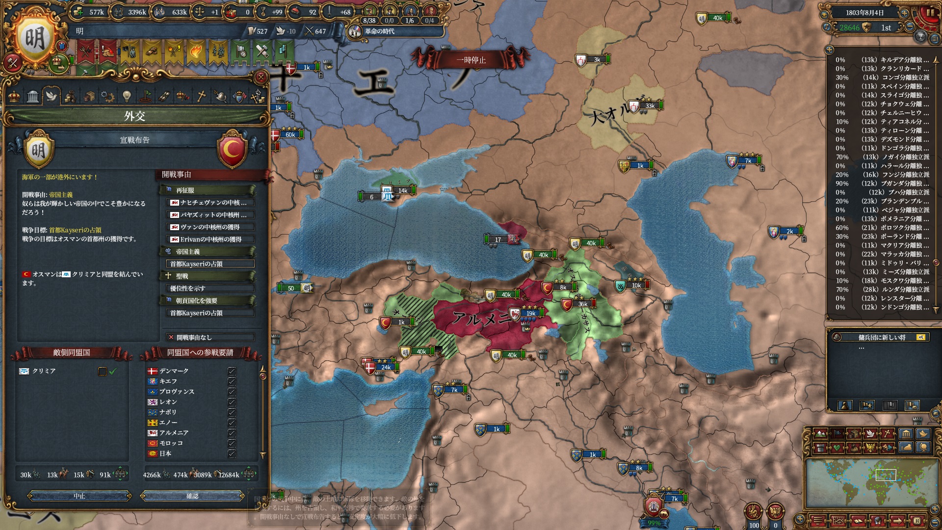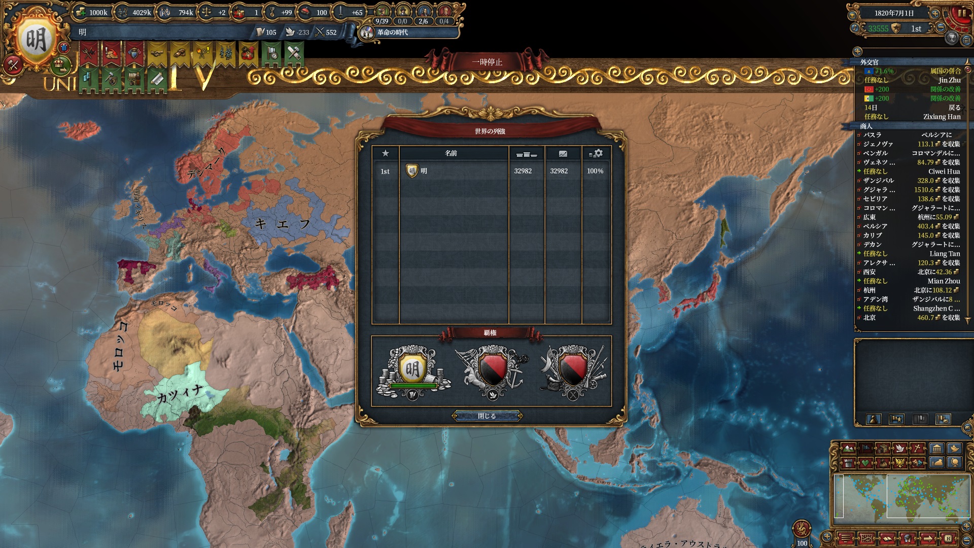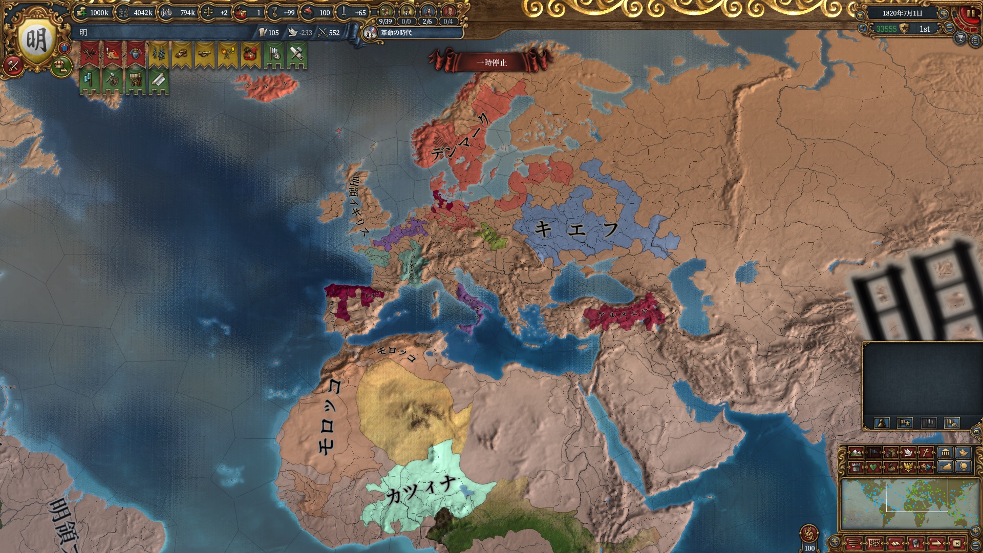 今回の世界線としてはイギリスが伸びたのと対オスマンで苦心した反面他の列強国が軒並み成長に難を抱えており、この2国を抑えた後の残りの掃除が楽になりがちな世界線となっていました。