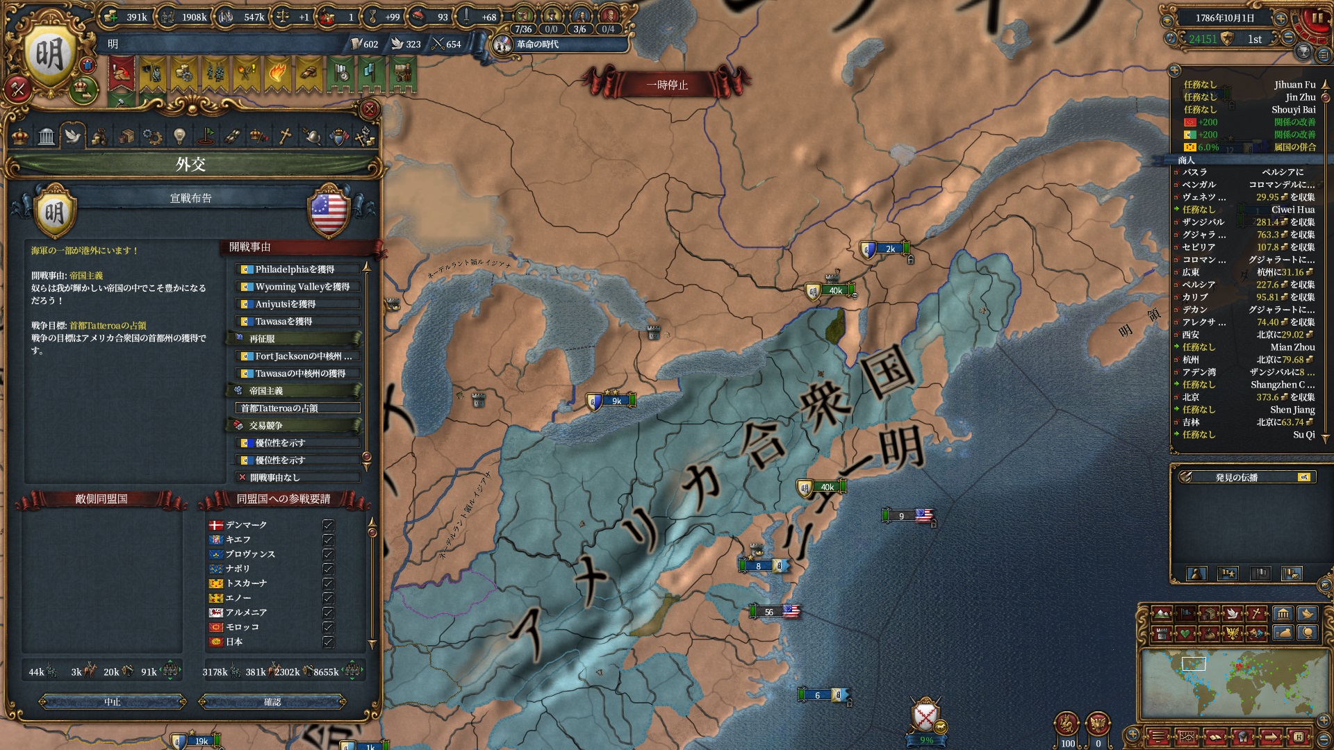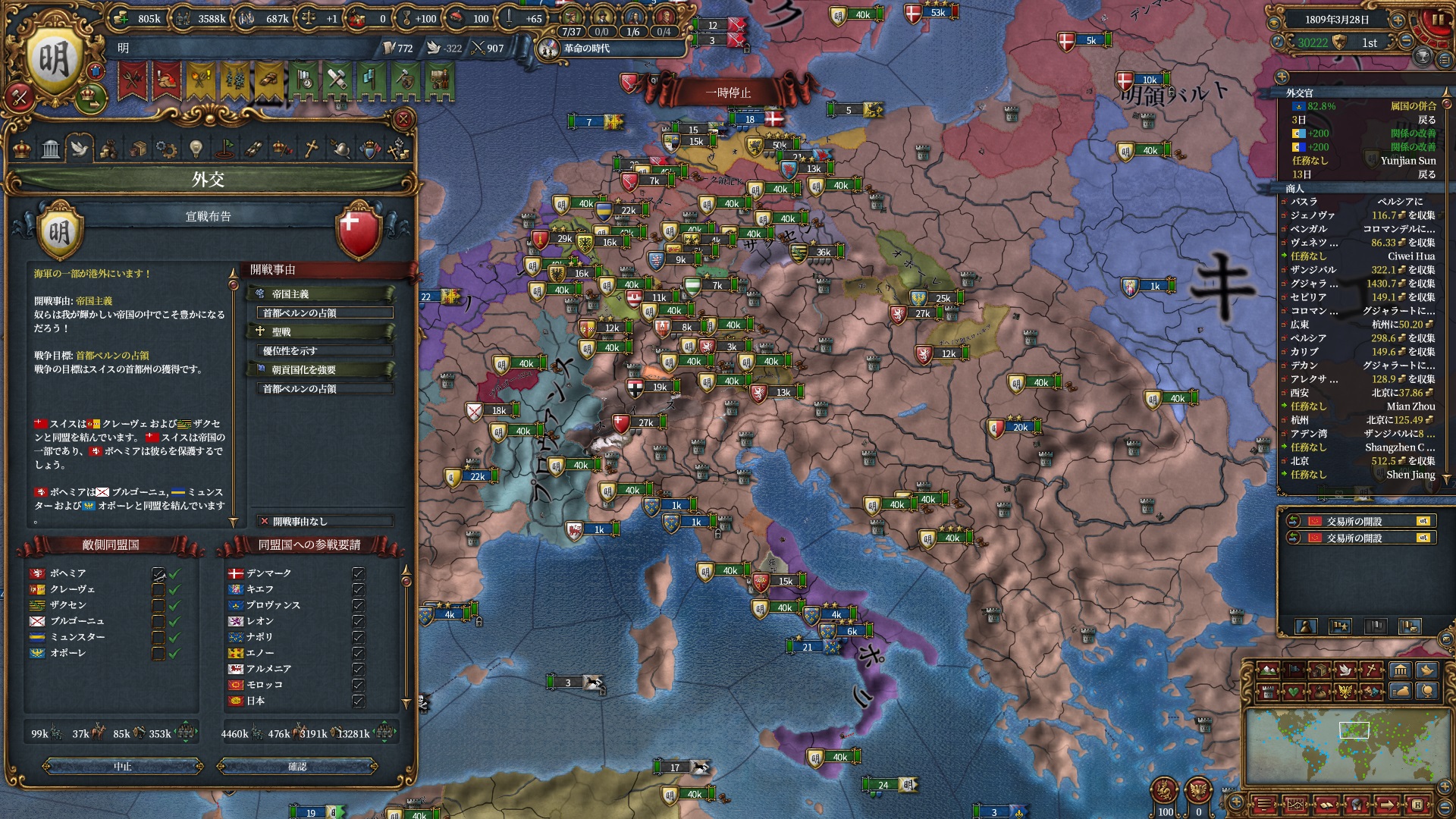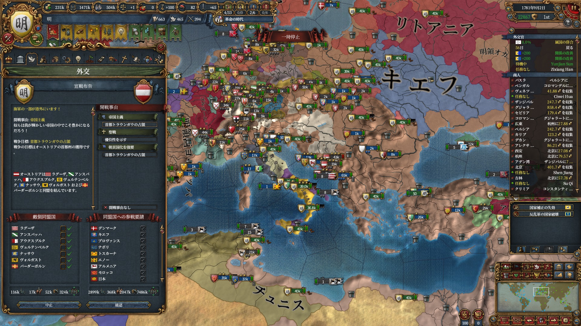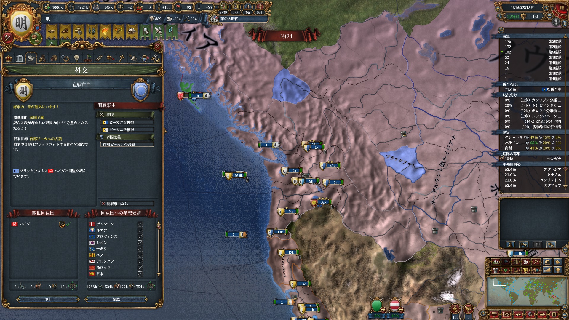 今回の世界線としてはイギリスが伸びたのと対オスマンで苦心した反面他の列強国が軒並み成長に難を抱えており、この2国を抑えた後の残りの掃除が楽になりがちな世界線となっていました。