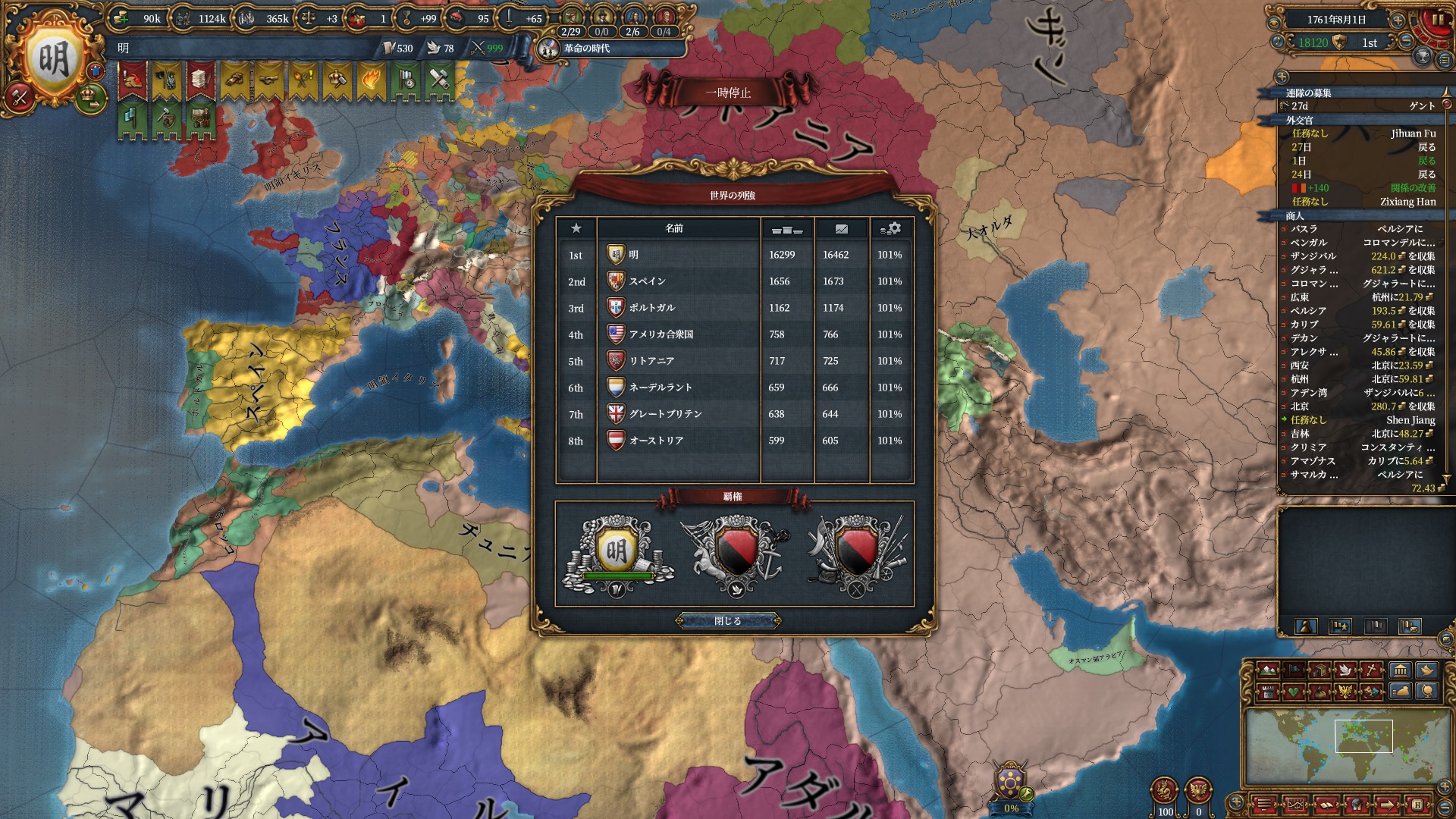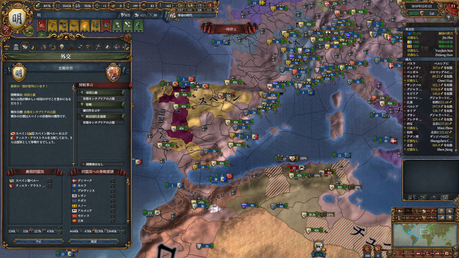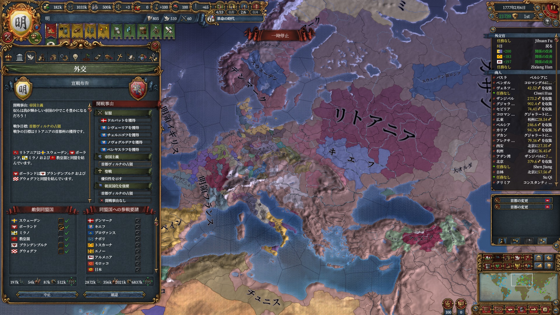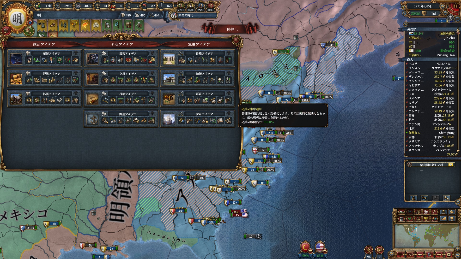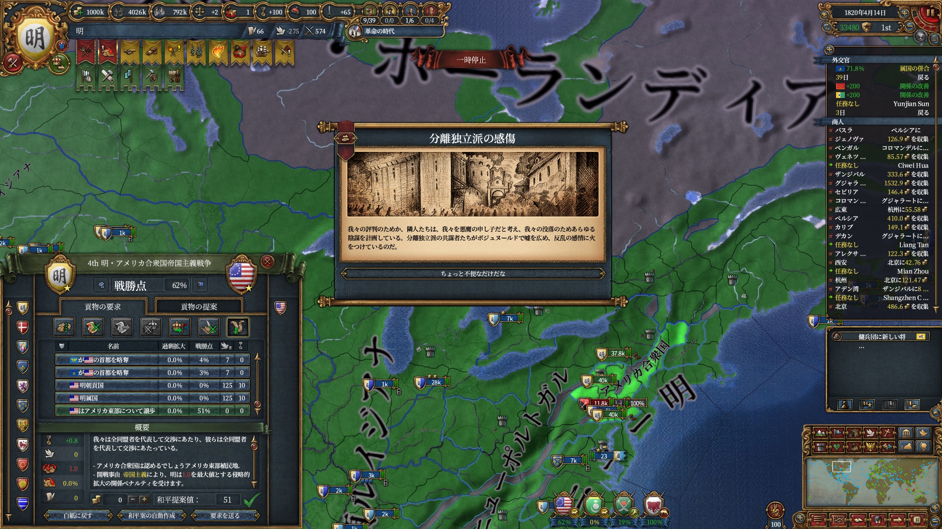 今回の世界線としてはイギリスが伸びたのと対オスマンで苦心した反面他の列強国が軒並み成長に難を抱えており、この2国を抑えた後の残りの掃除が楽になりがちな世界線となっていました。