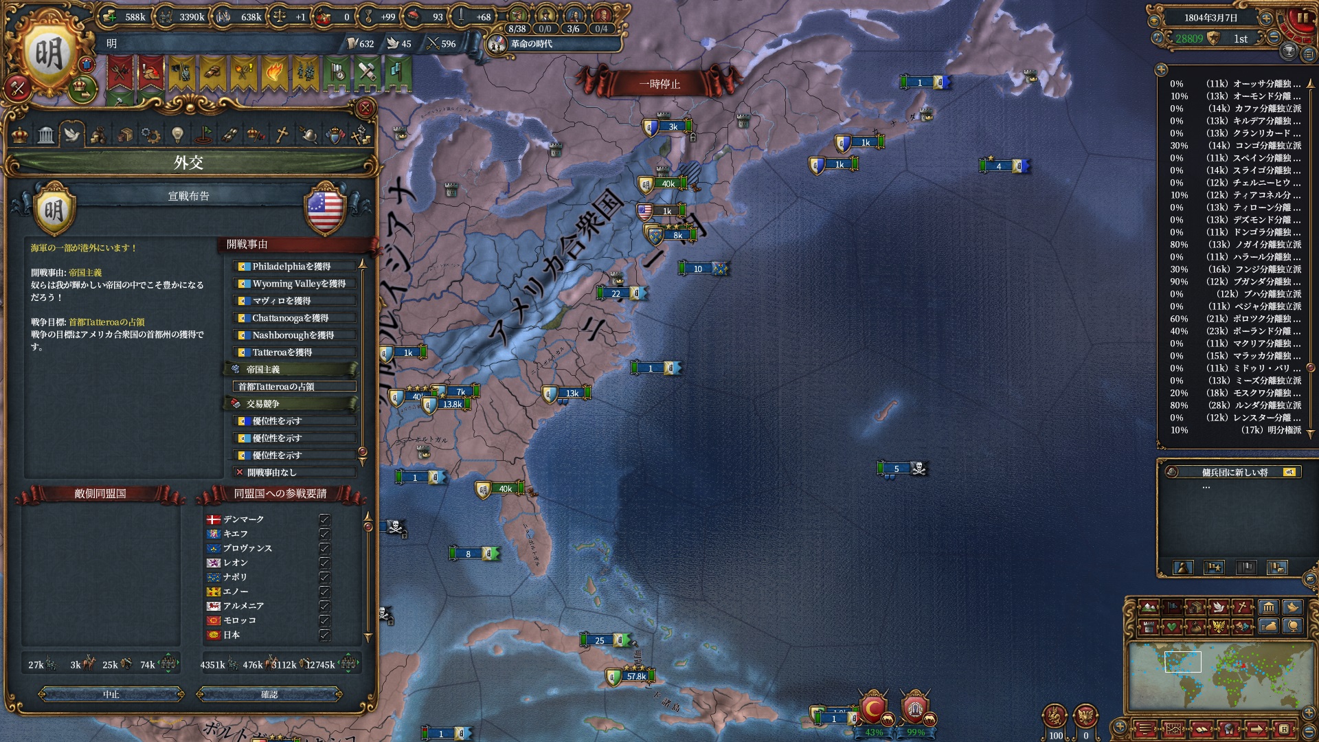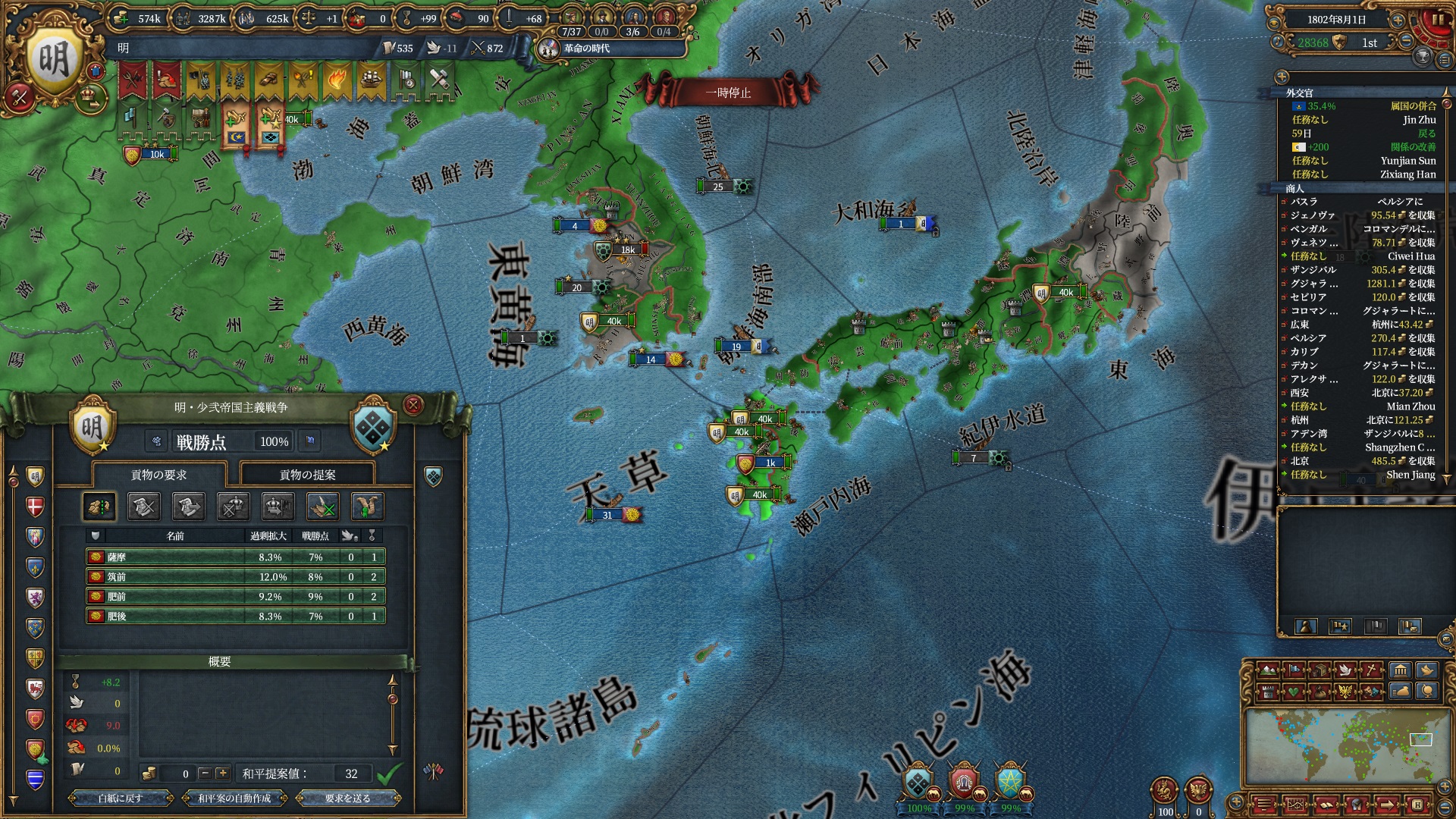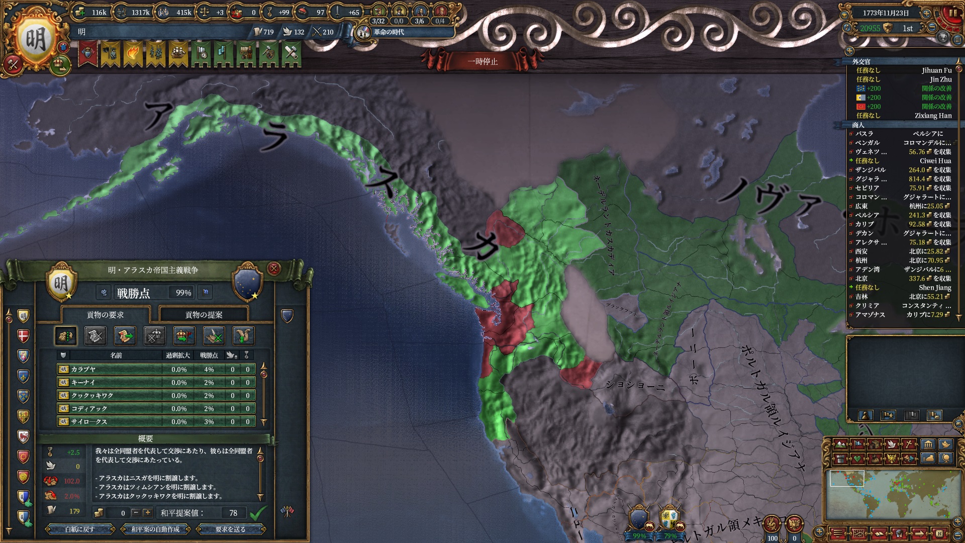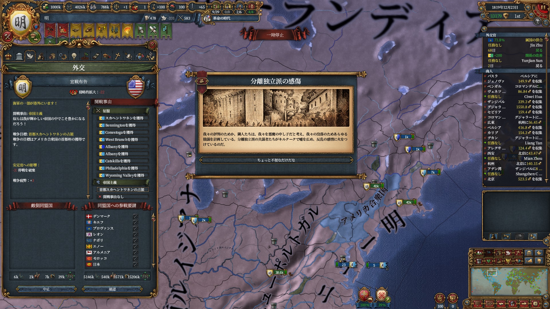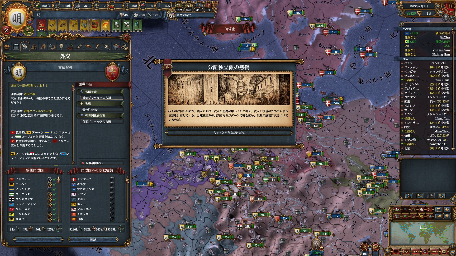 今回の世界線としてはイギリスが伸びたのと対オスマンで苦心した反面他の列強国が軒並み成長に難を抱えており、この2国を抑えた後の残りの掃除が楽になりがちな世界線となっていました。