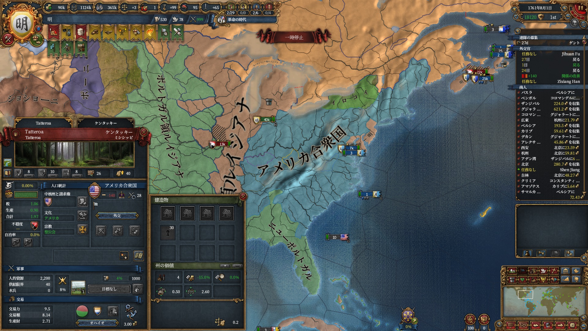 領地が削れてくれたおかげで労せずに全土併合しカナダ・北ルイジアナ・東カスカディアを手に入れました。