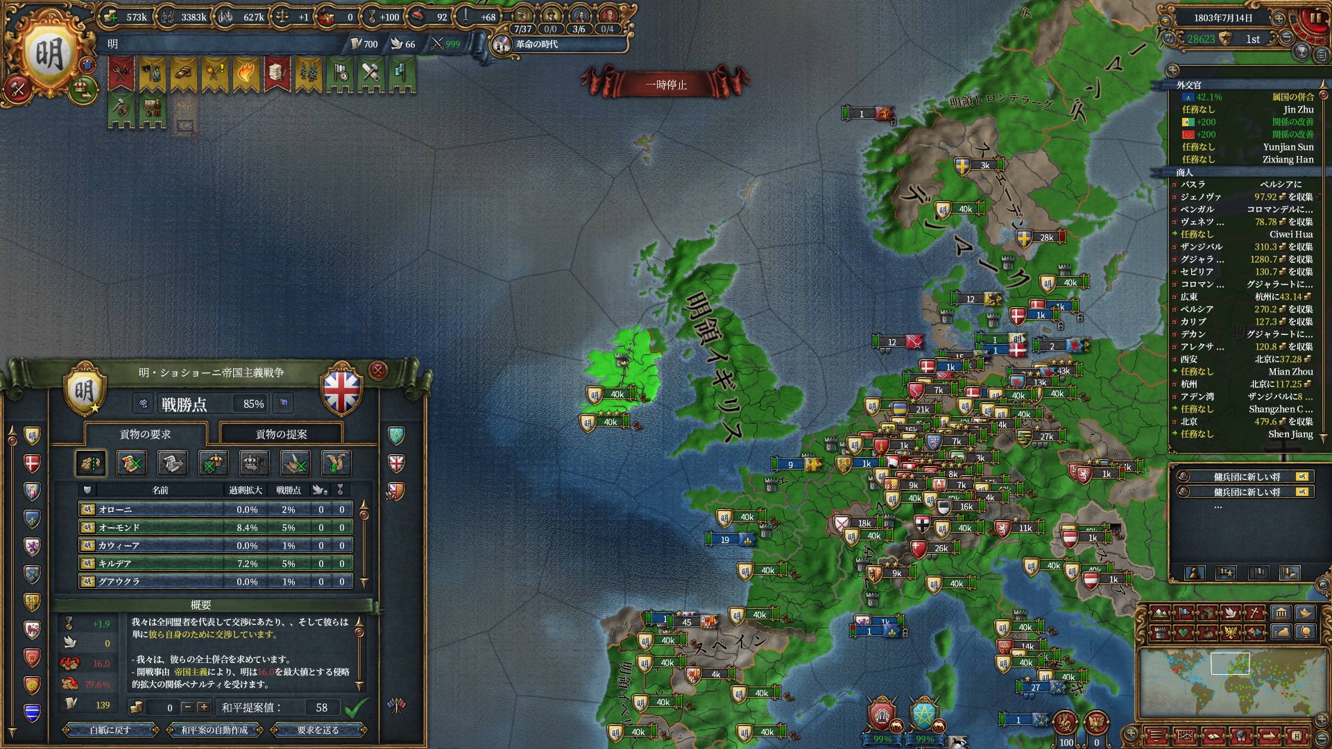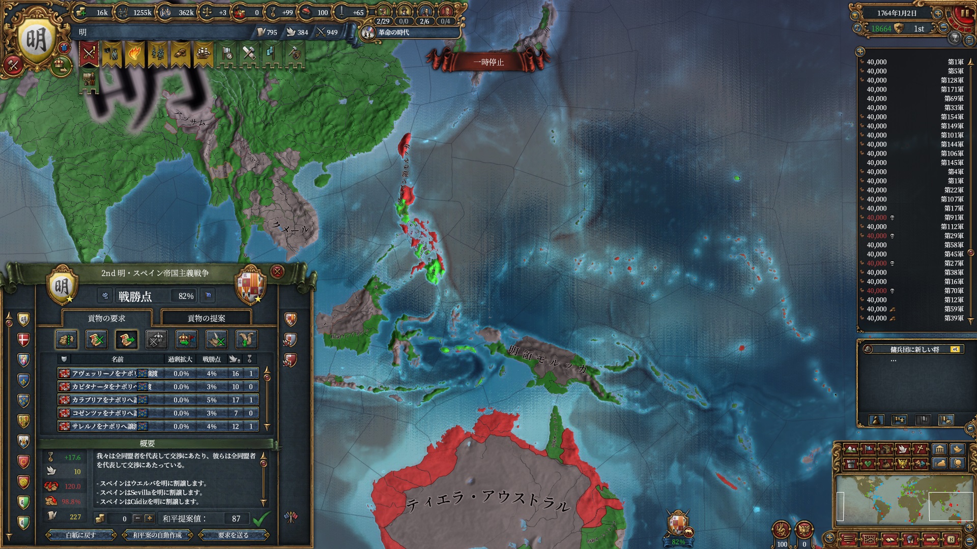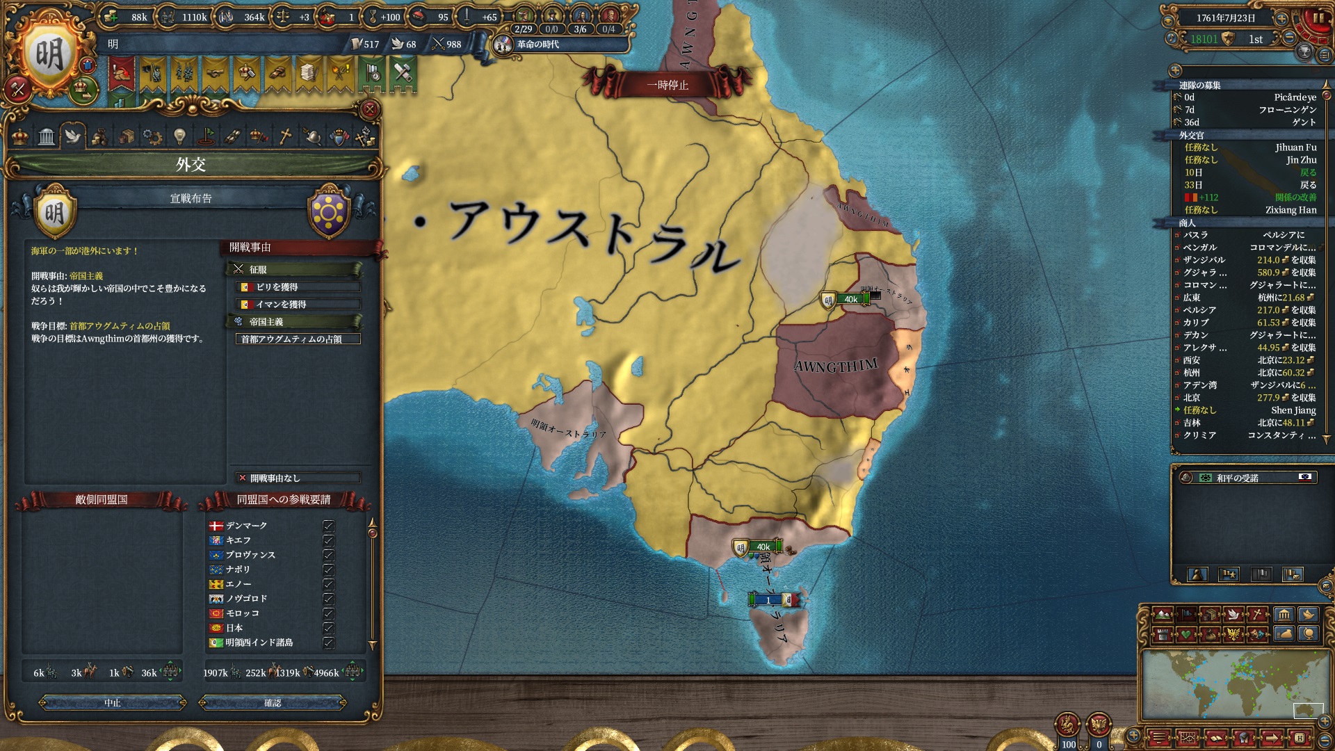 オーストラリアはdevが上がっている為か譲歩の点も高く出てくる軍量も多く割と手間のかかる相手でした。
