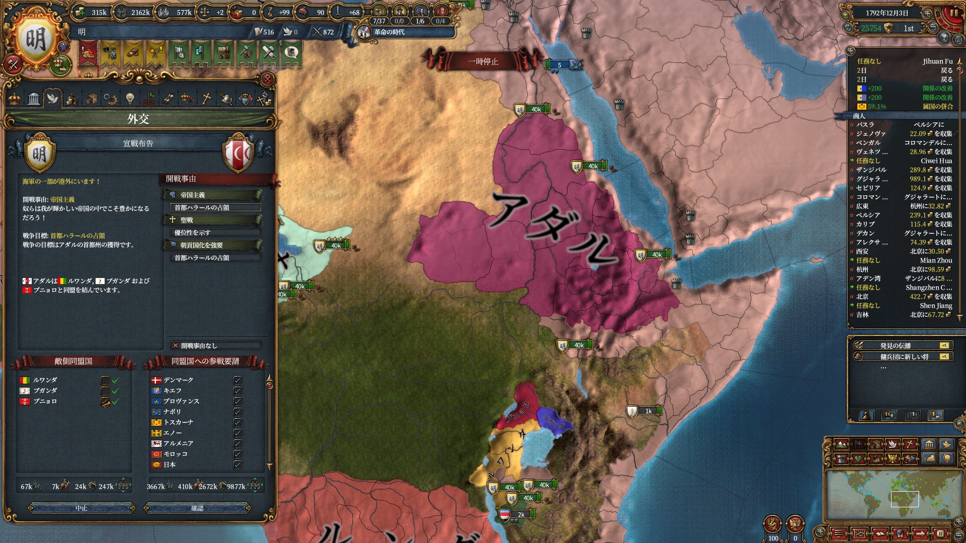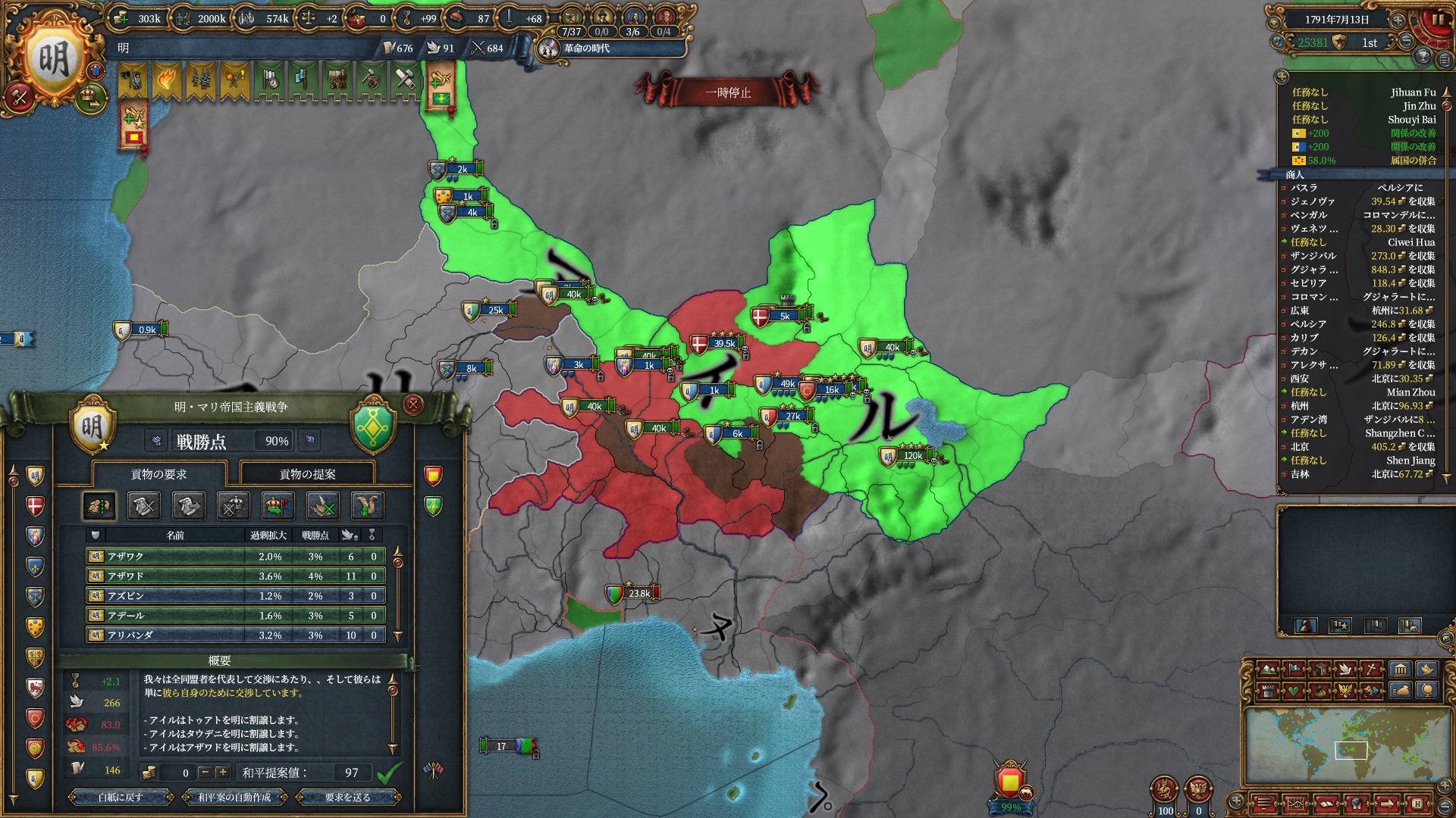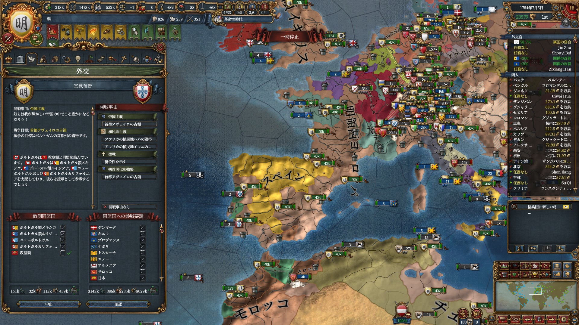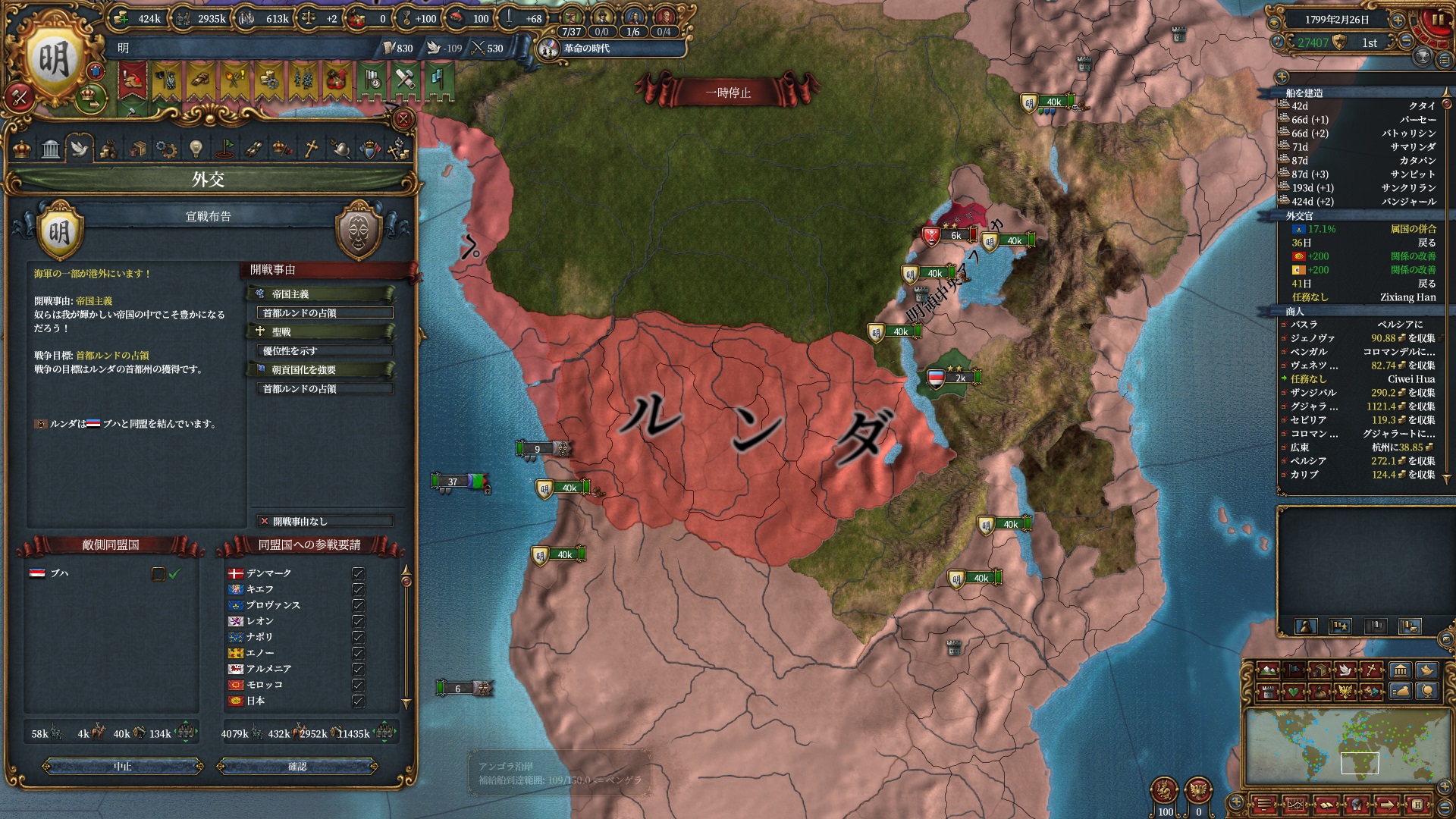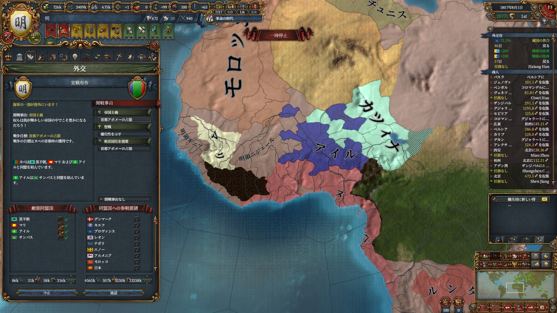 マリ・アイルの停戦が明けた為ヌペに宣戦しつつこの2国を共戦国に指定しています。