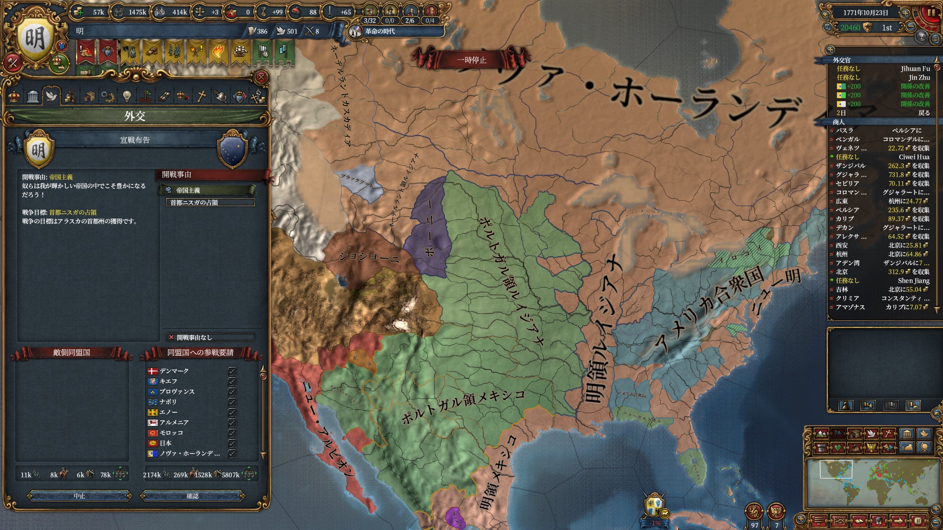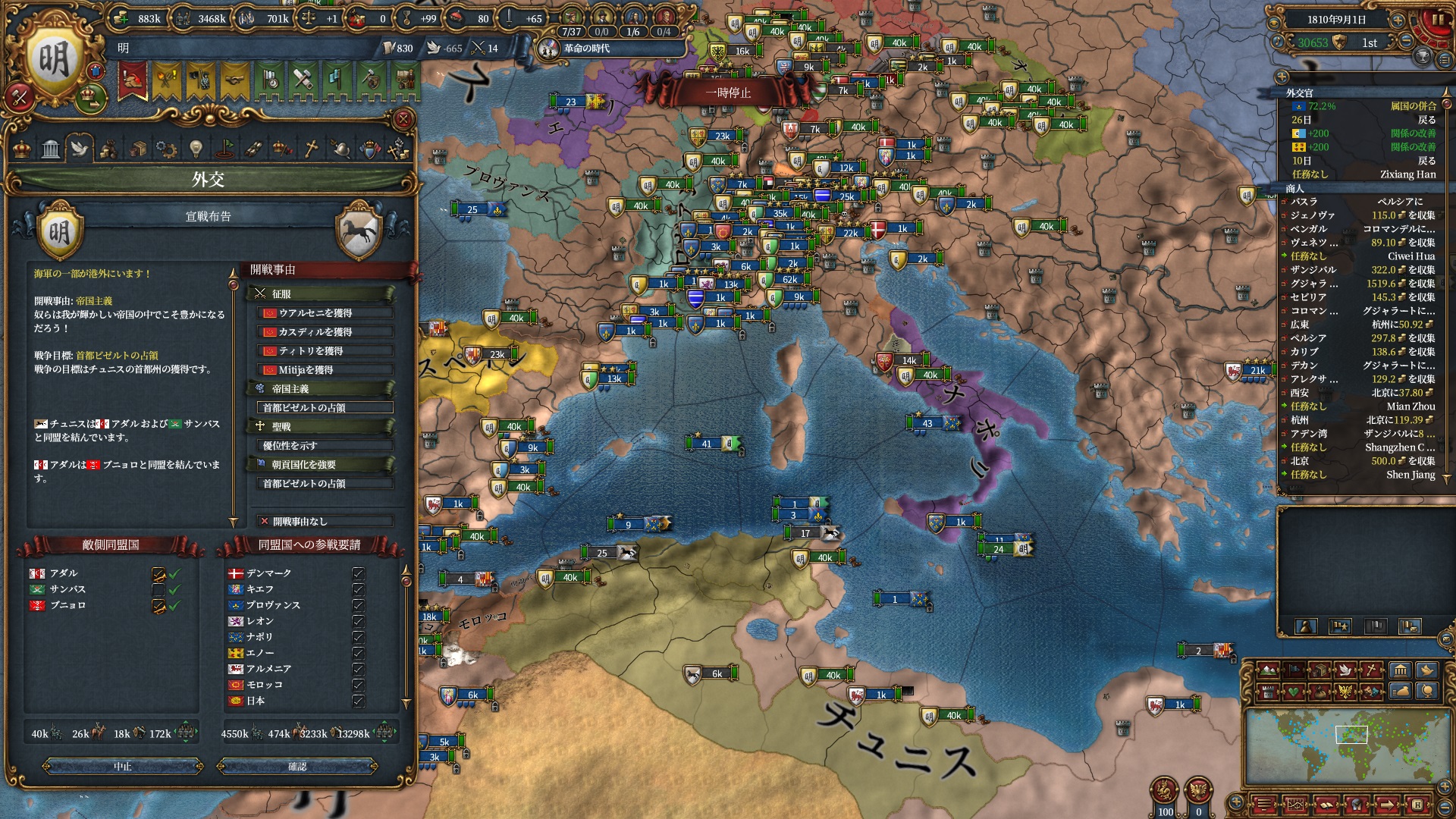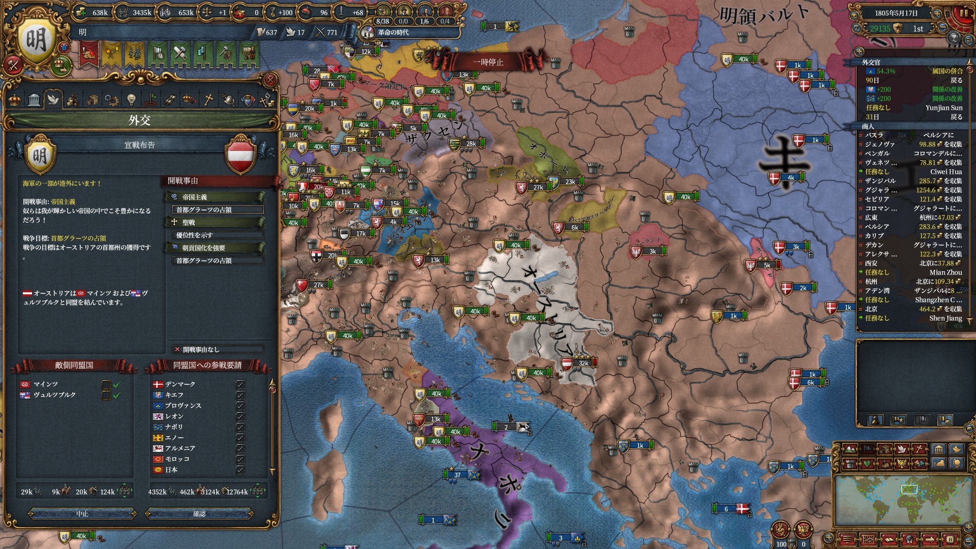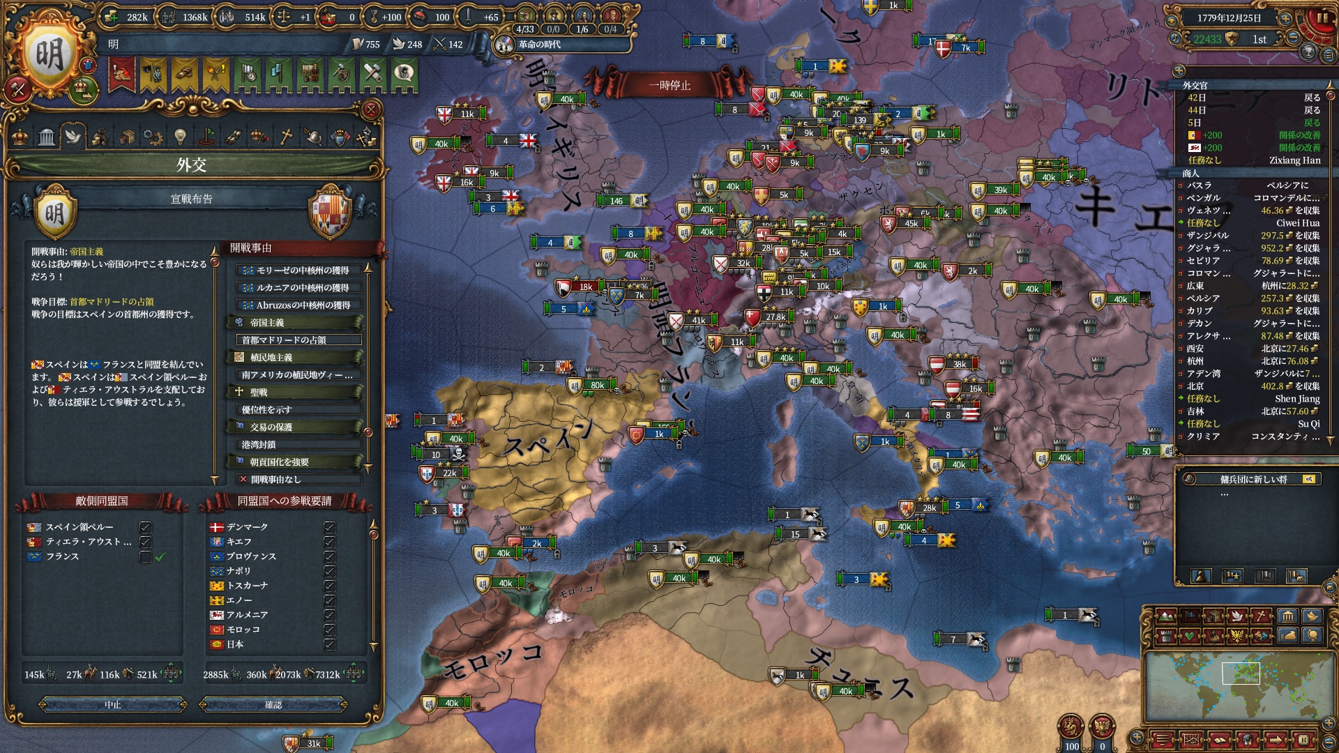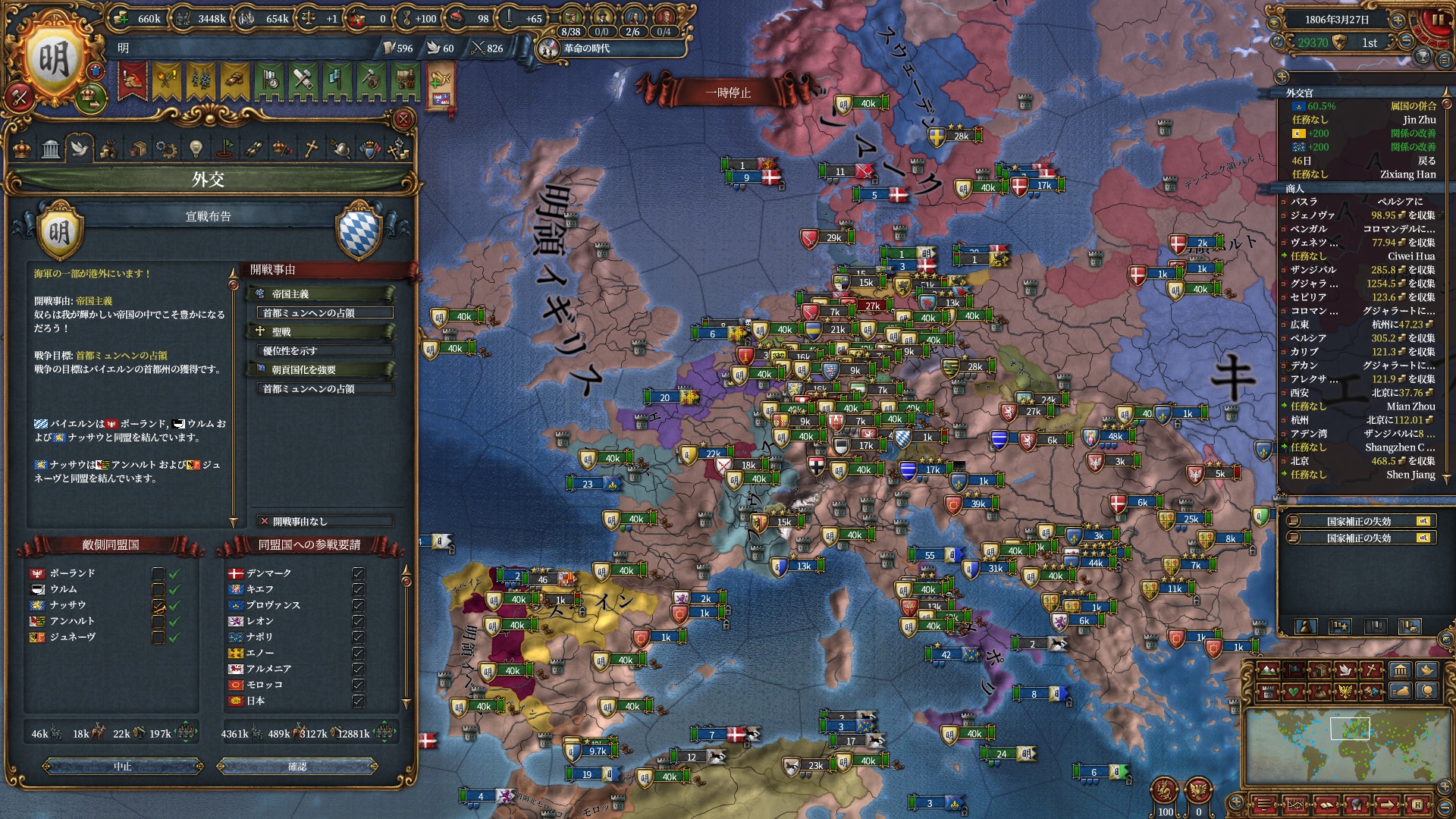 マリ・アイルの停戦が明けた為ヌペに宣戦しつつこの2国を共戦国に指定しています。