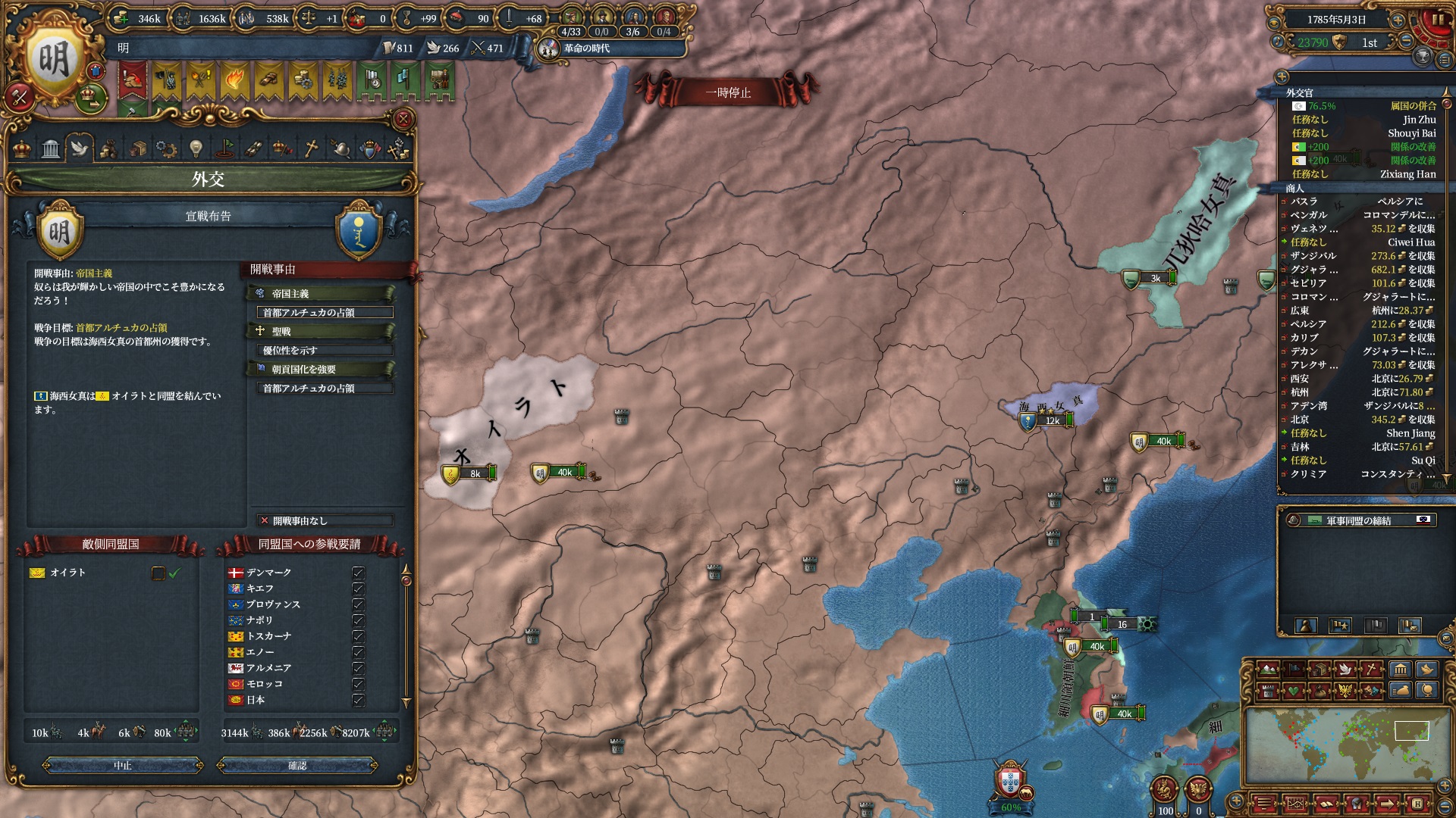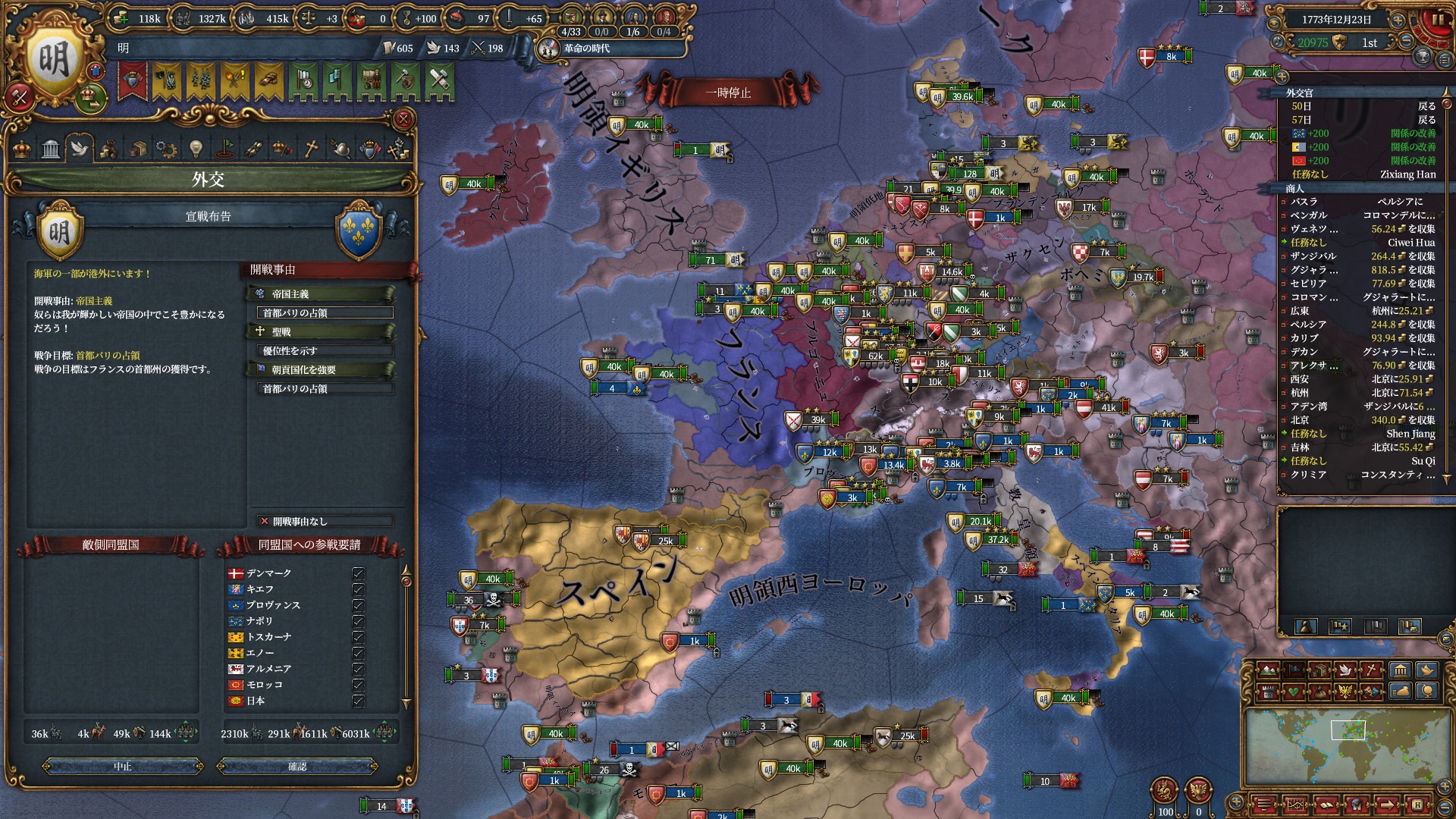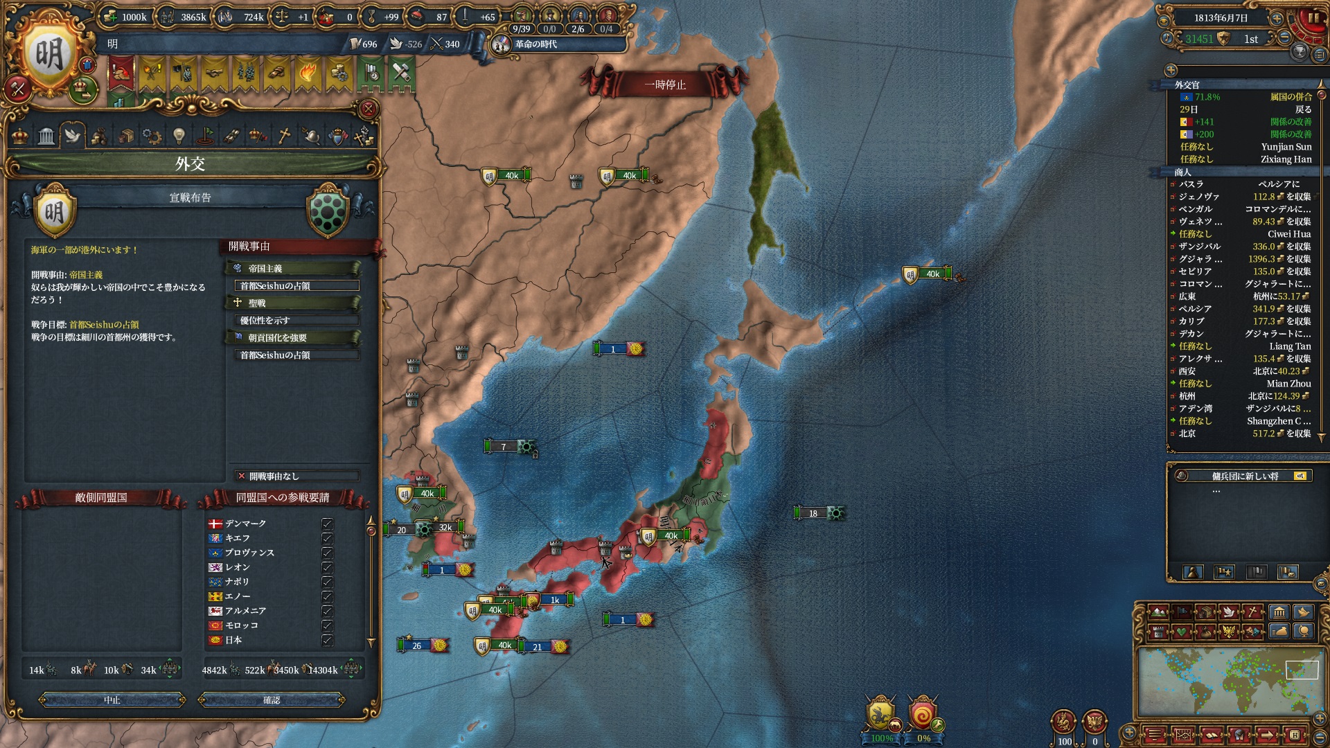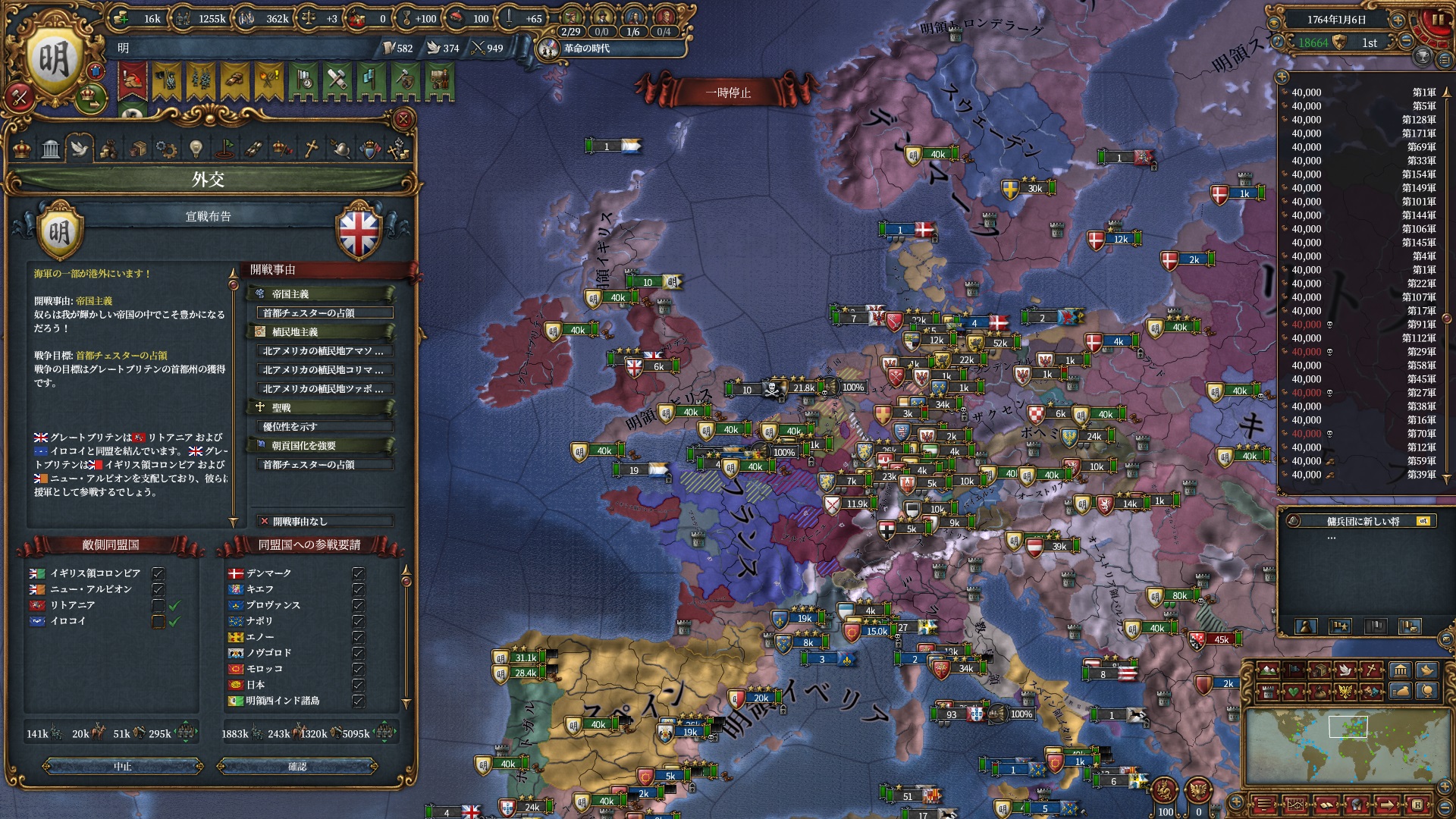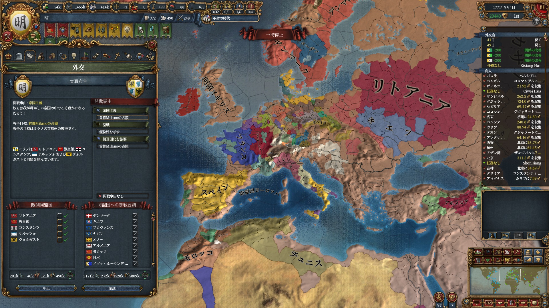 マリ・アイルの停戦が明けた為ヌペに宣戦しつつこの2国を共戦国に指定しています。