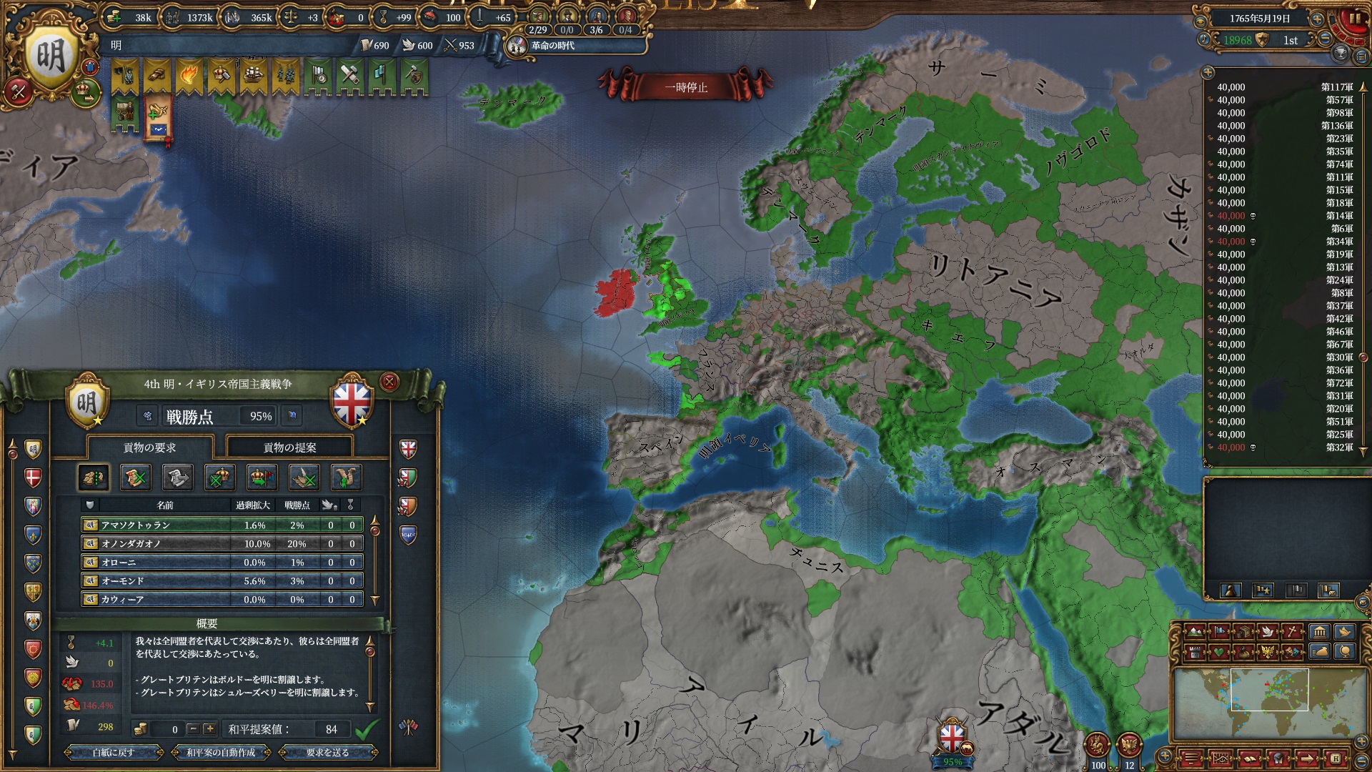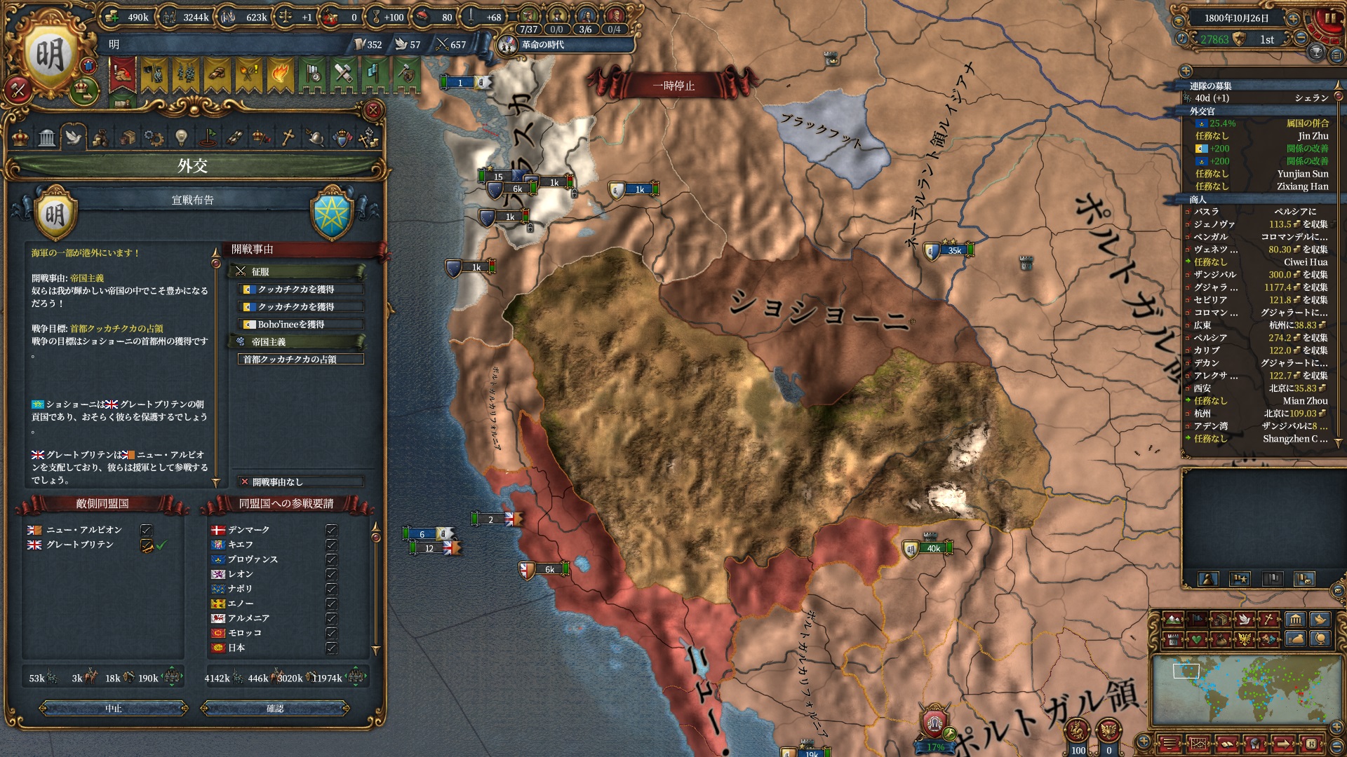 原住民併合の兼ね合いかイギリスの朝貢国になっていましたので、イギリスを共戦国指定して殴ります。