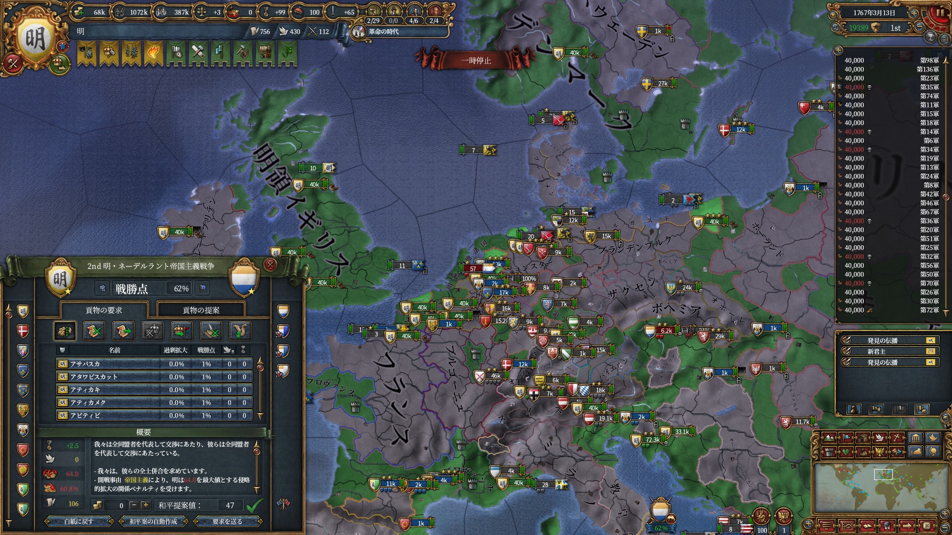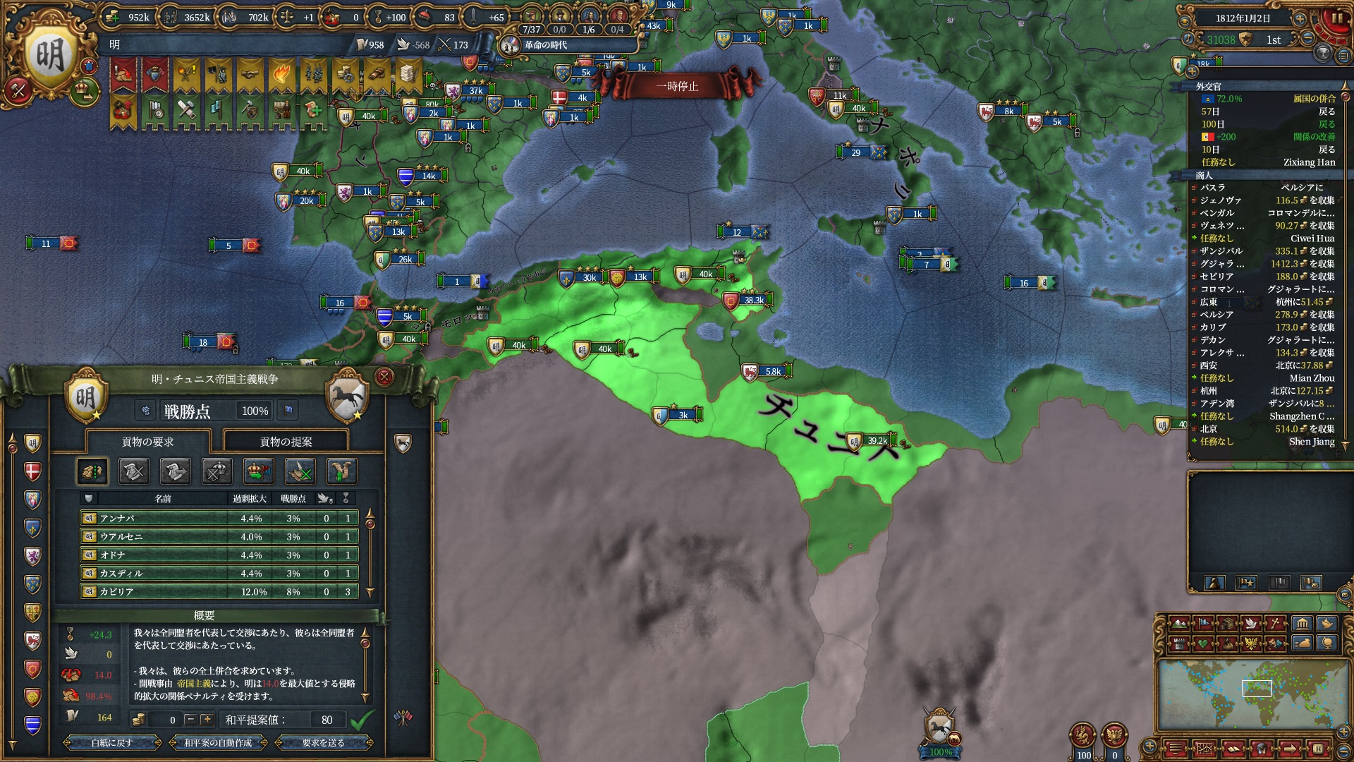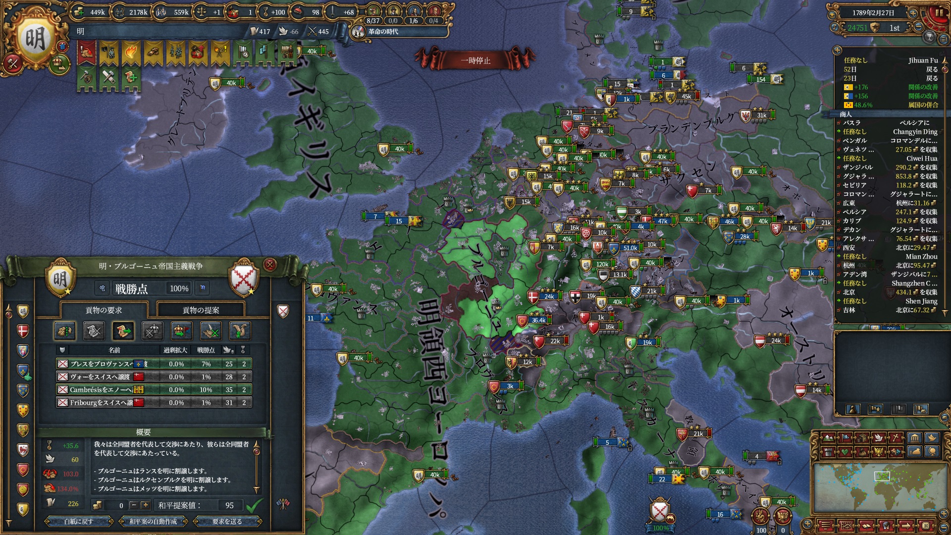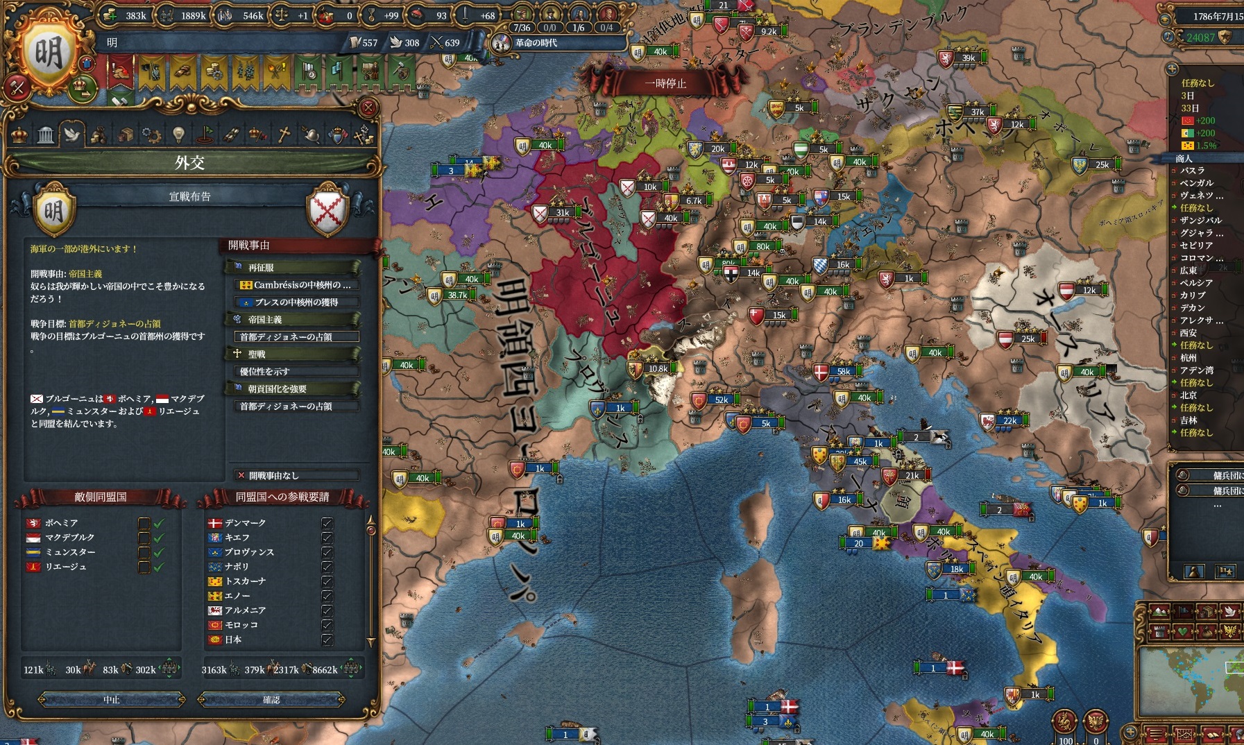 プロヴァンスは大分前から属国併合中ですが州を投げたりこの後の不当な請求連打による外交点枯渇で最期まで併合できませんでした。