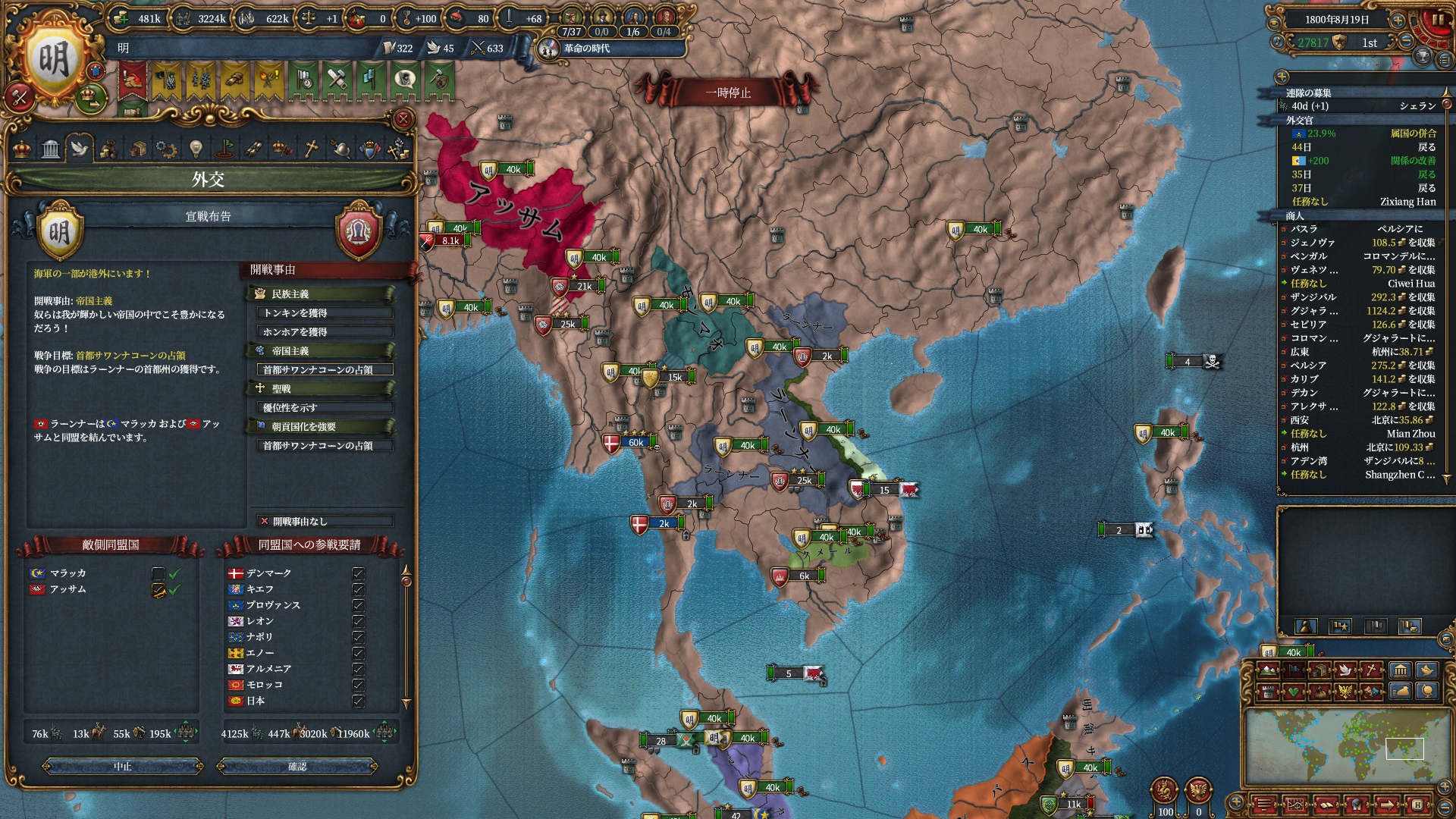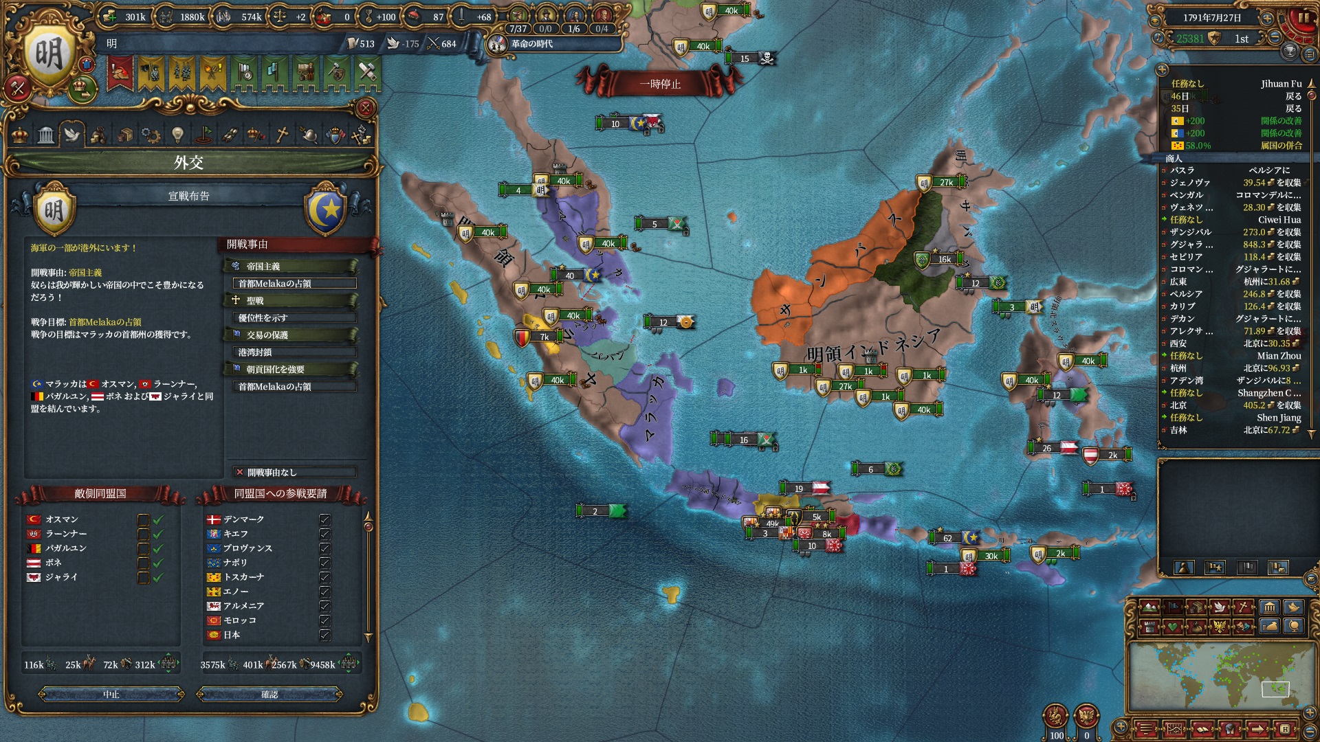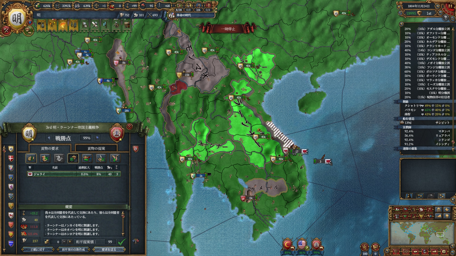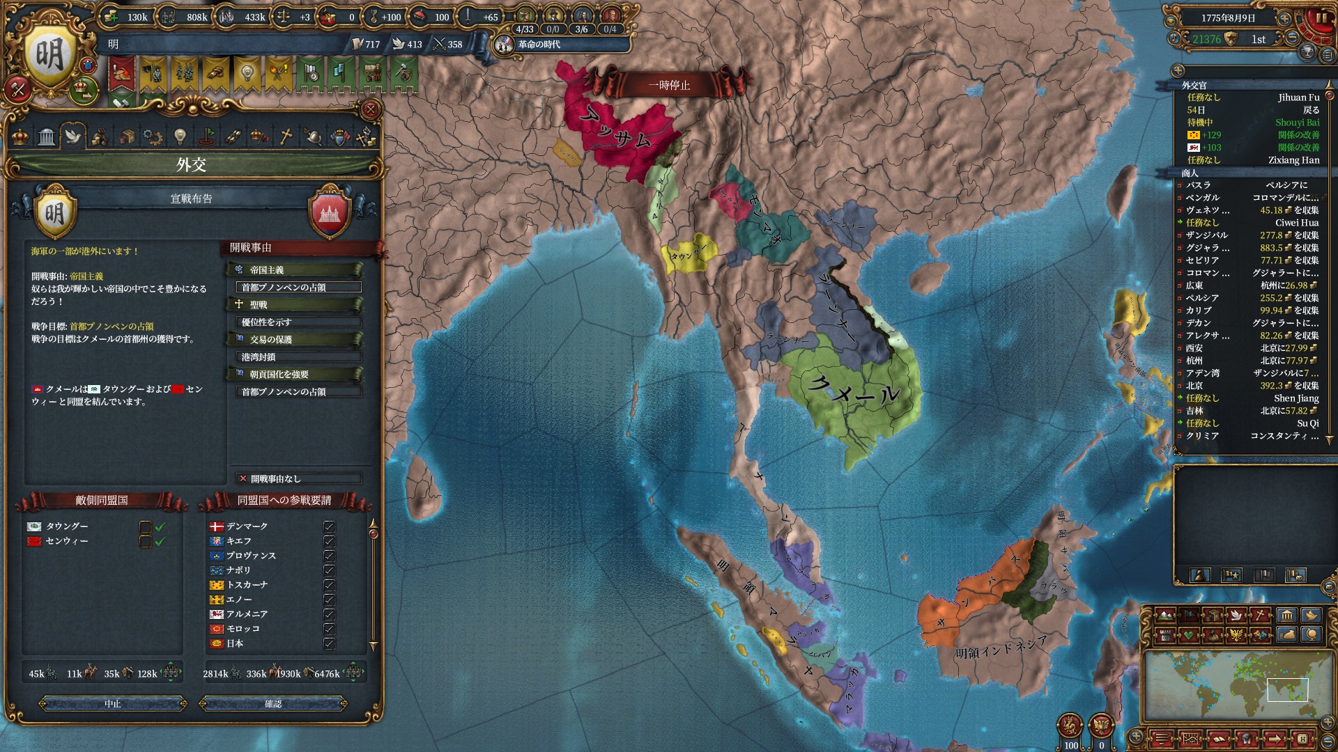 こちらもOEが爆発しているためアユタヤ戦後に作成した衛星国に分散させました。