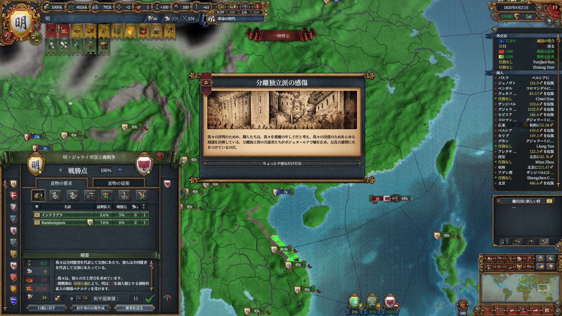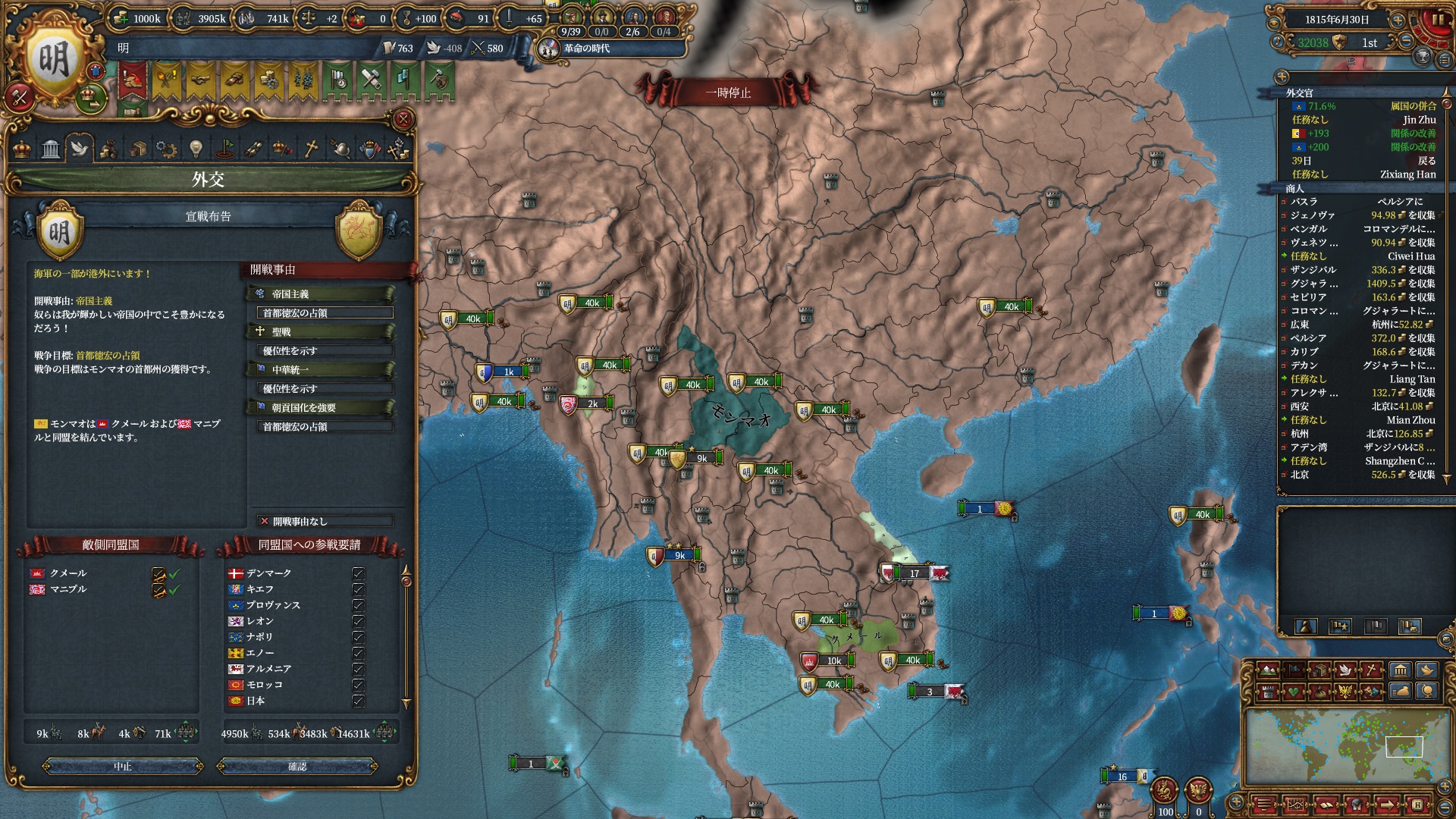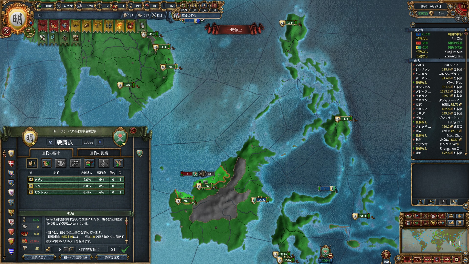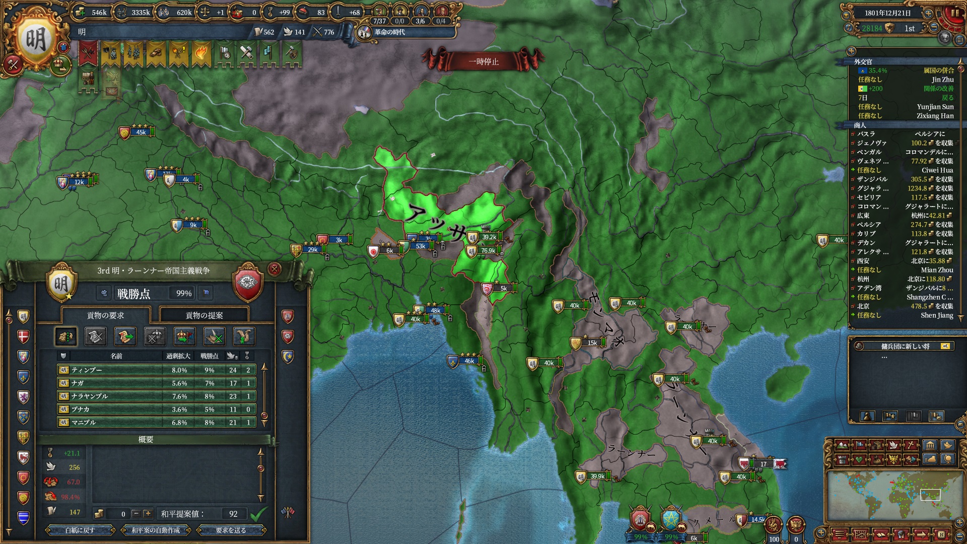 こちらもOEが爆発しているためアユタヤ戦後に作成した衛星国に分散させました。
