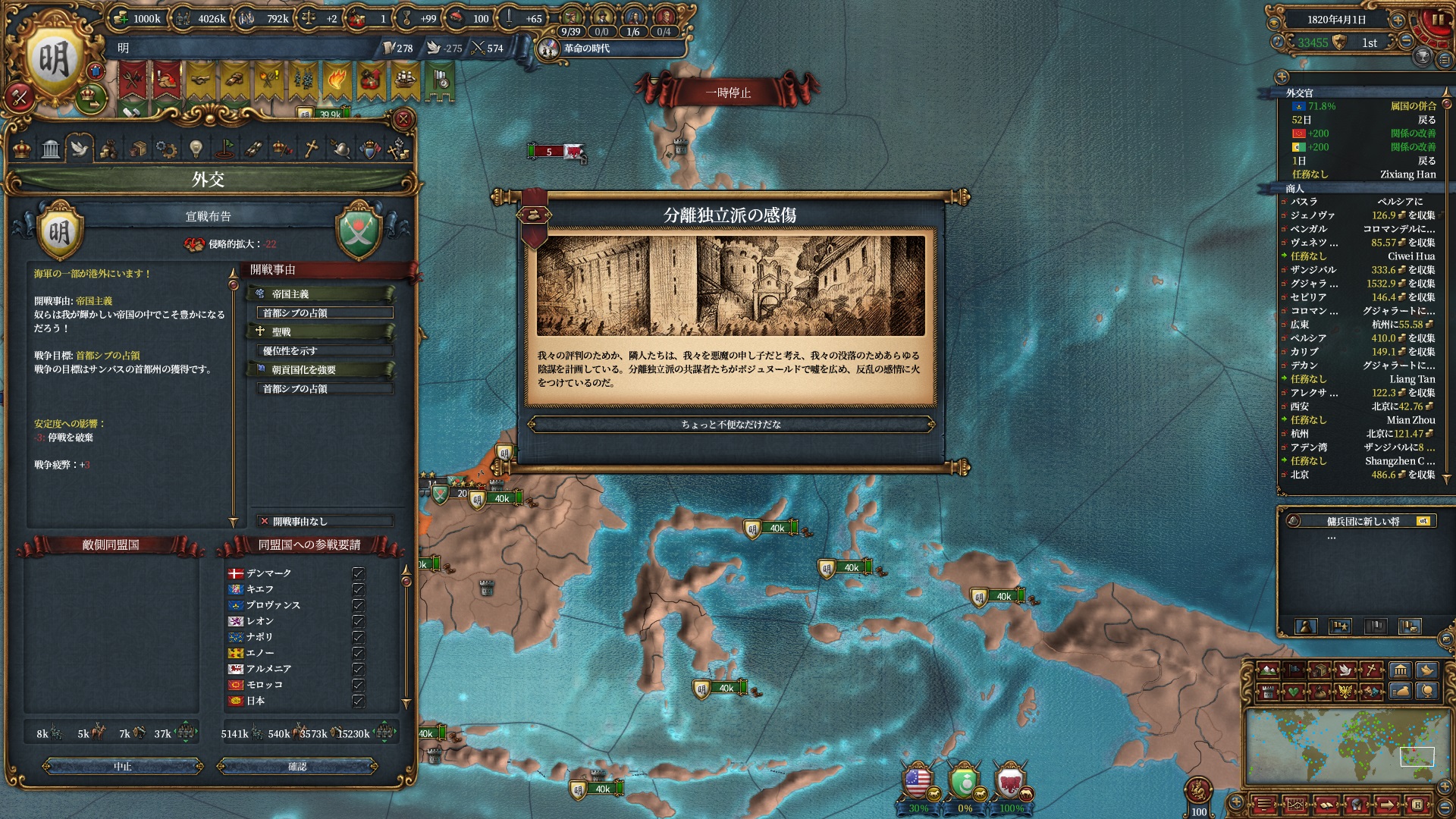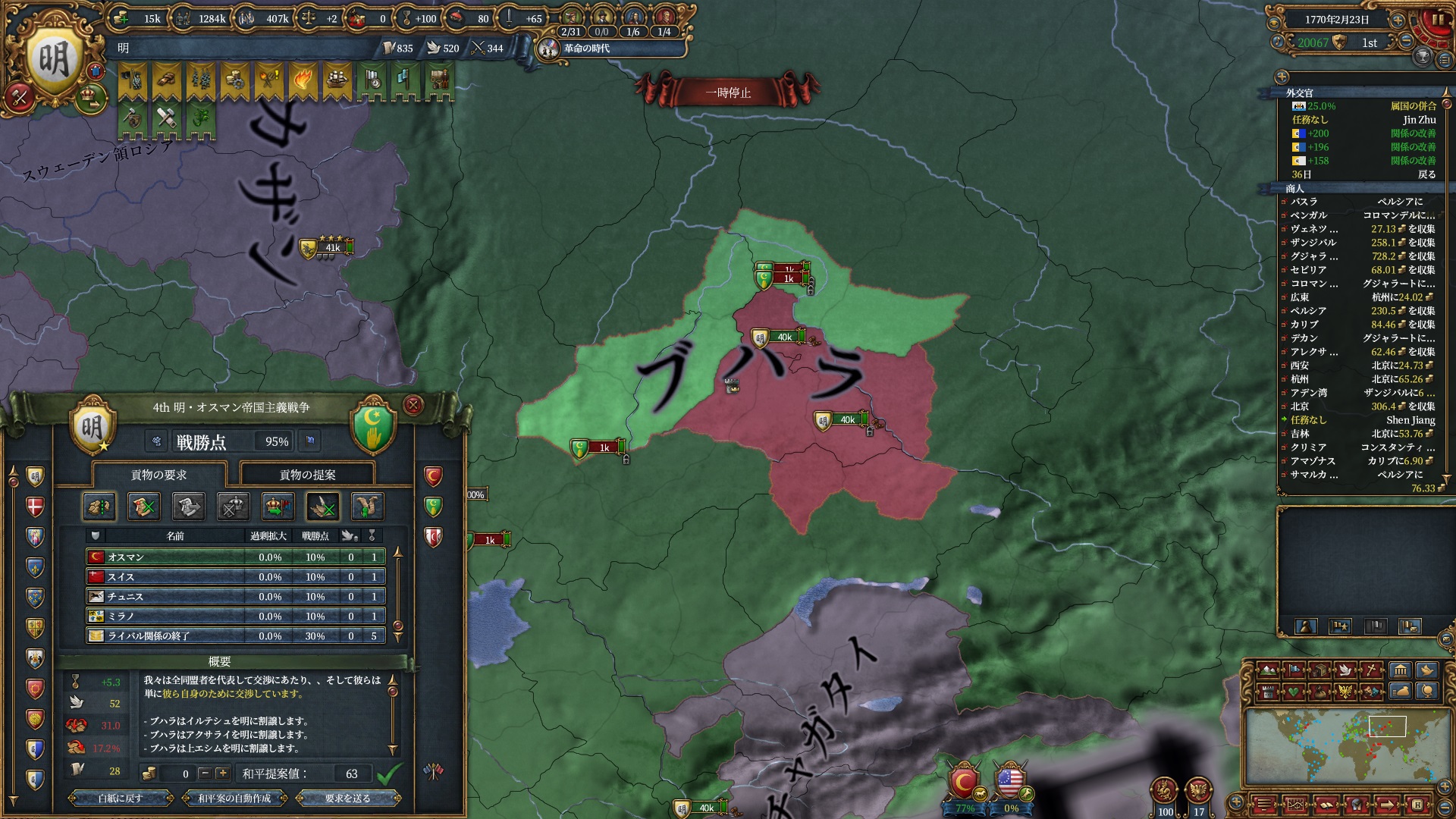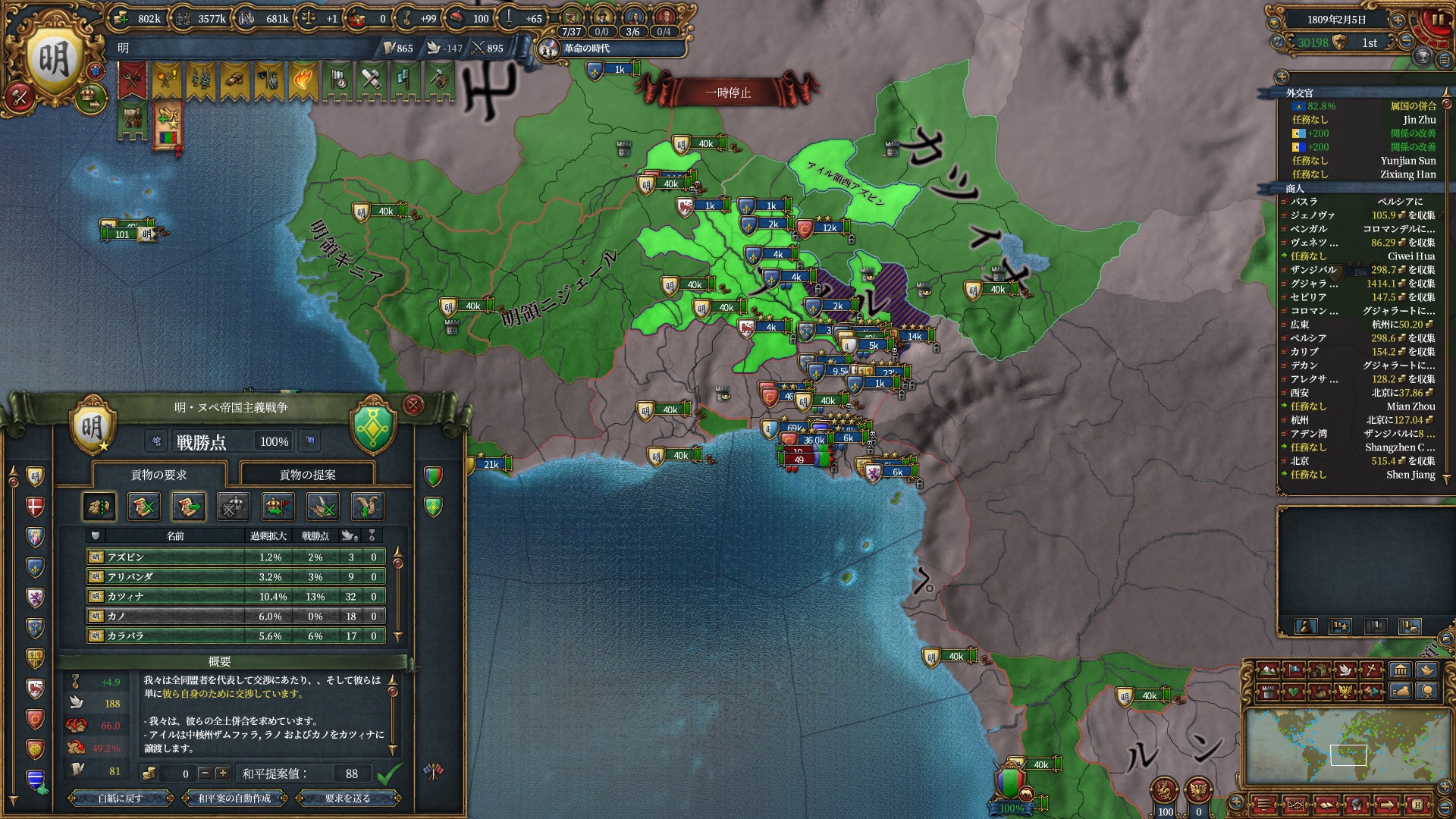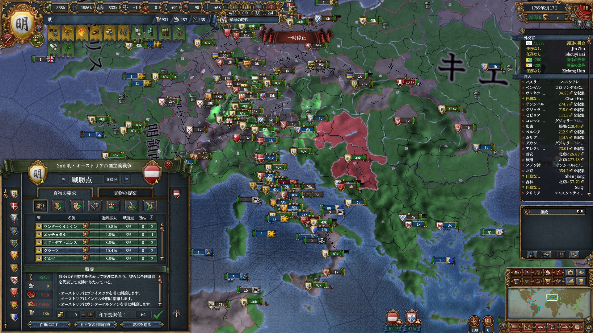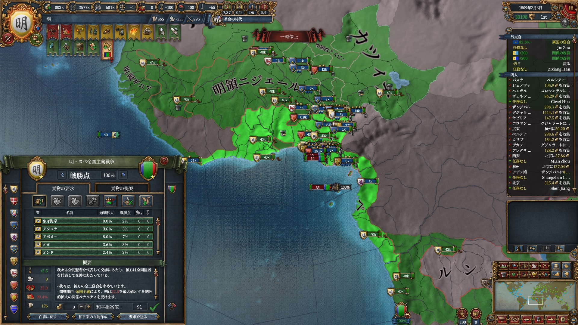 こちらもOEが爆発しているためアユタヤ戦後に作成した衛星国に分散させました。