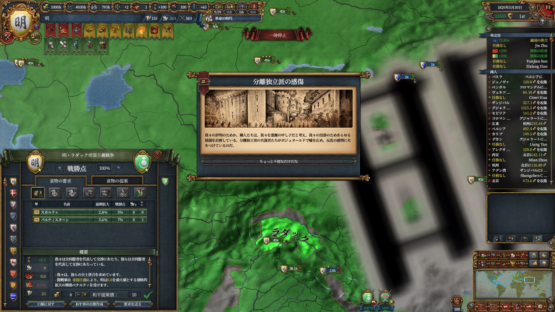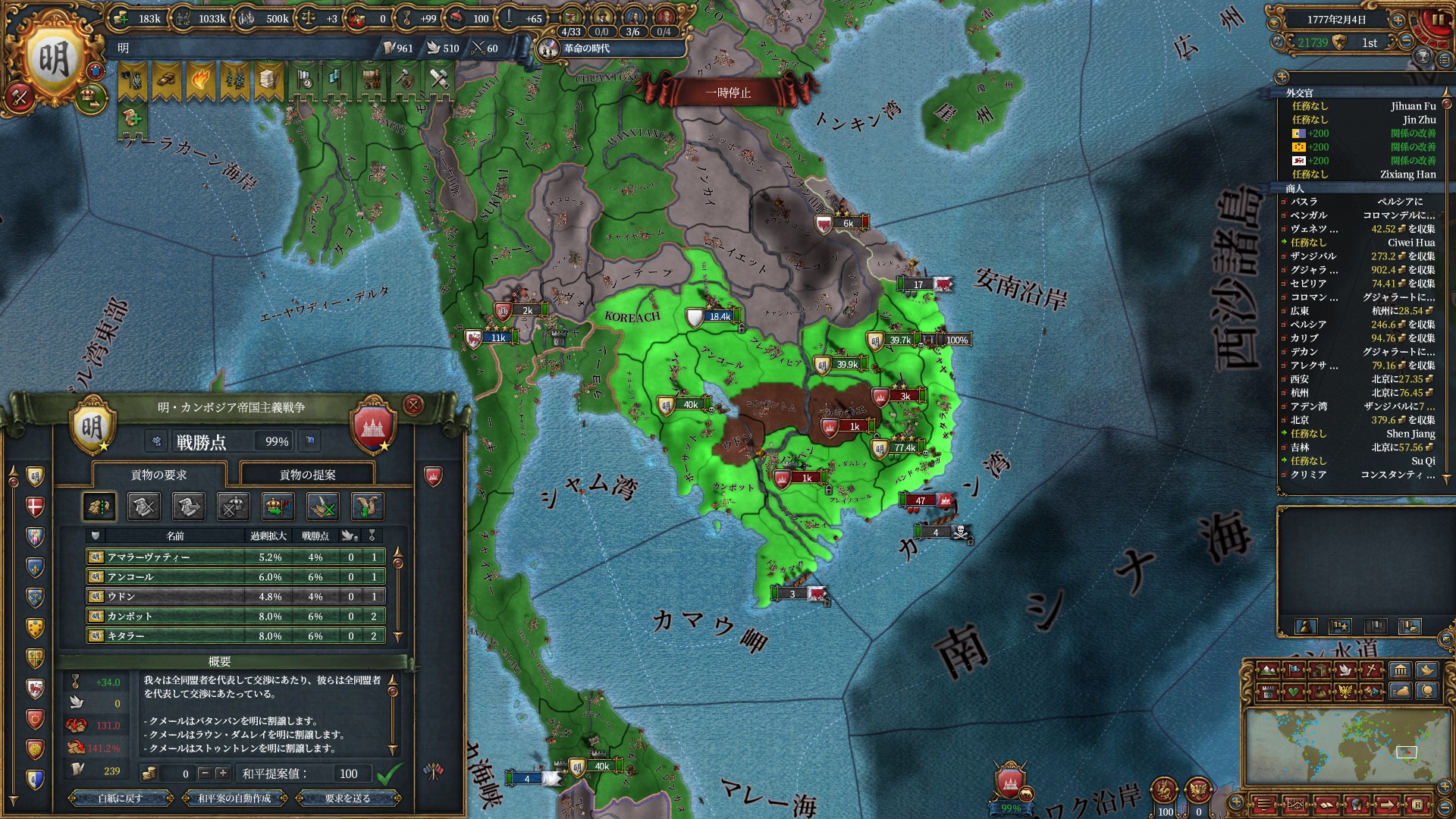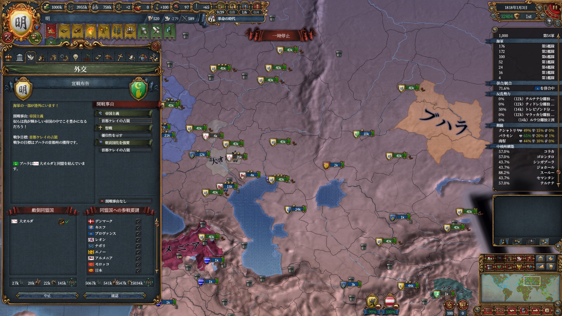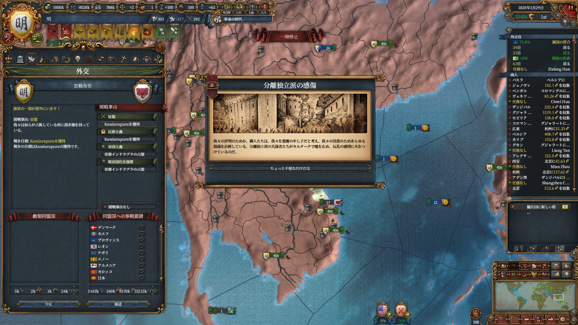 こちらもOEが爆発しているためアユタヤ戦後に作成した衛星国に分散させました。