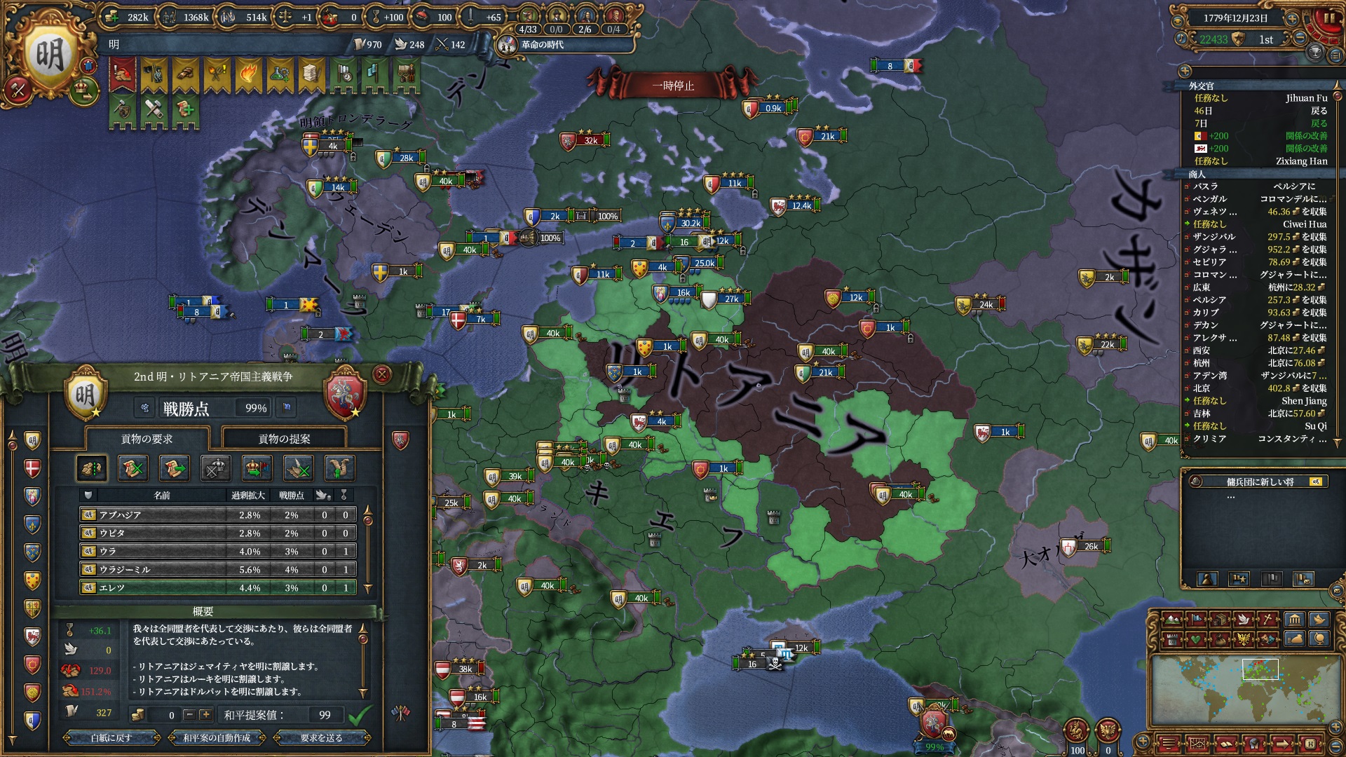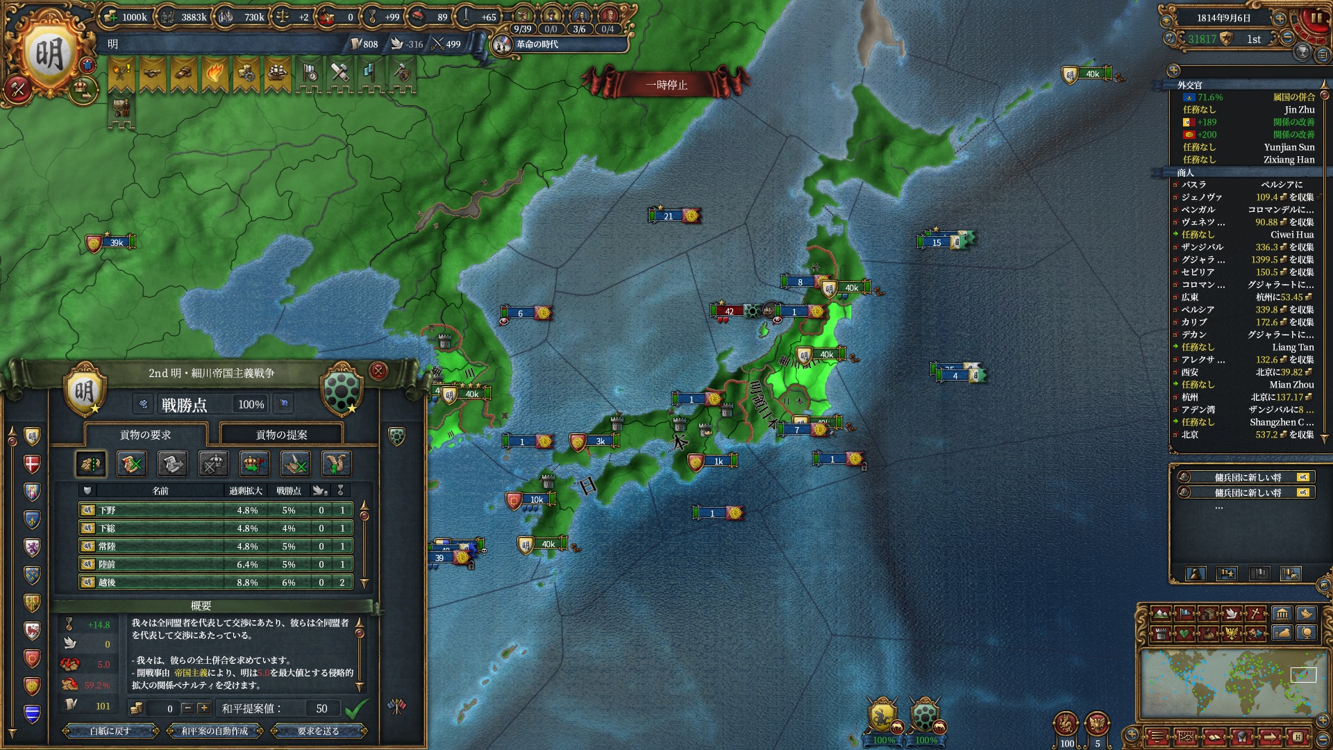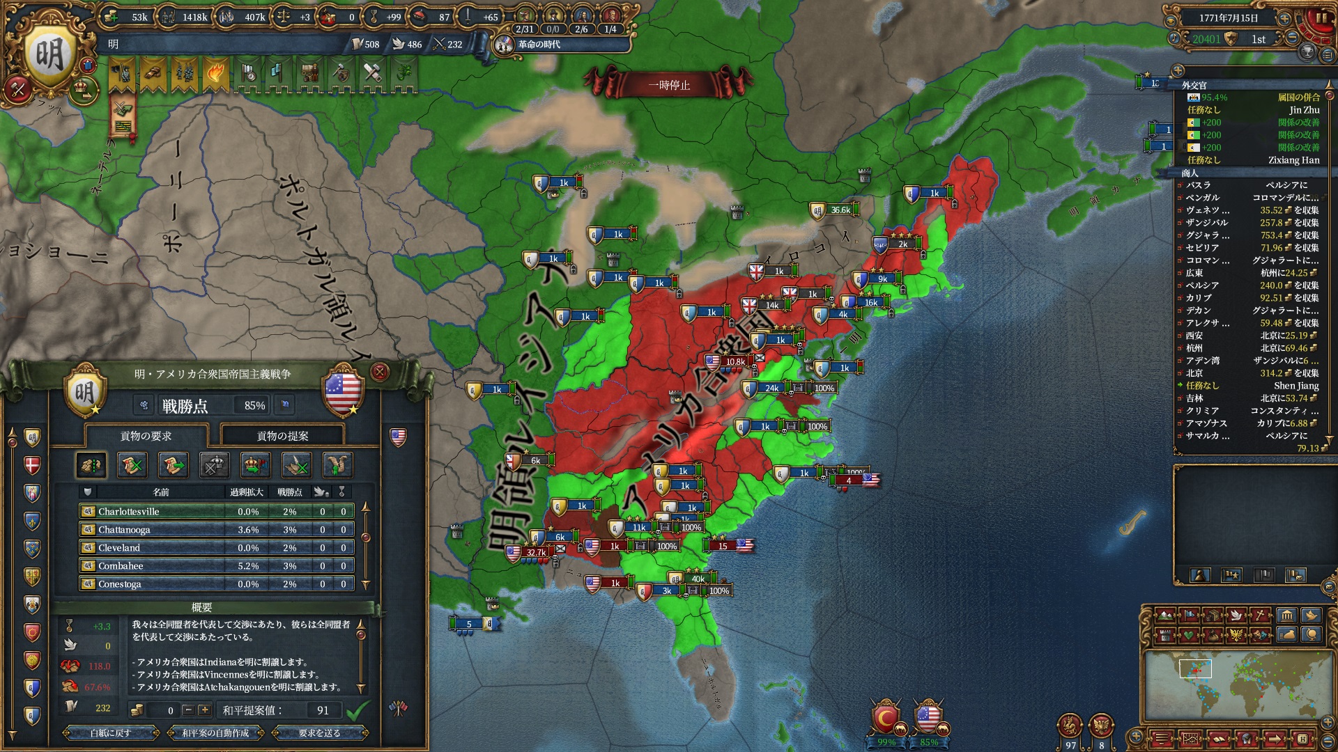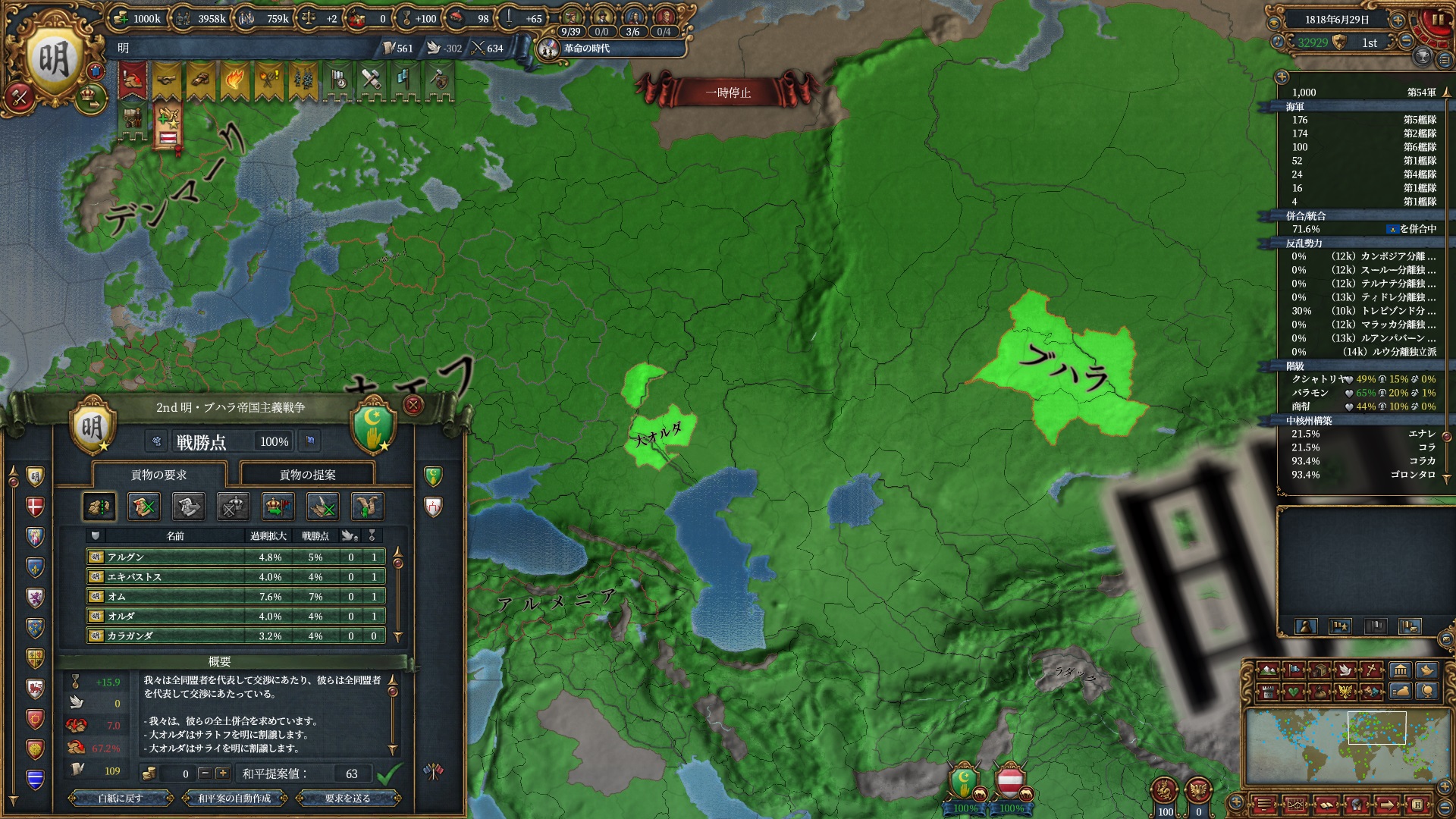 こちらもOEが爆発しているためアユタヤ戦後に作成した衛星国に分散させました。