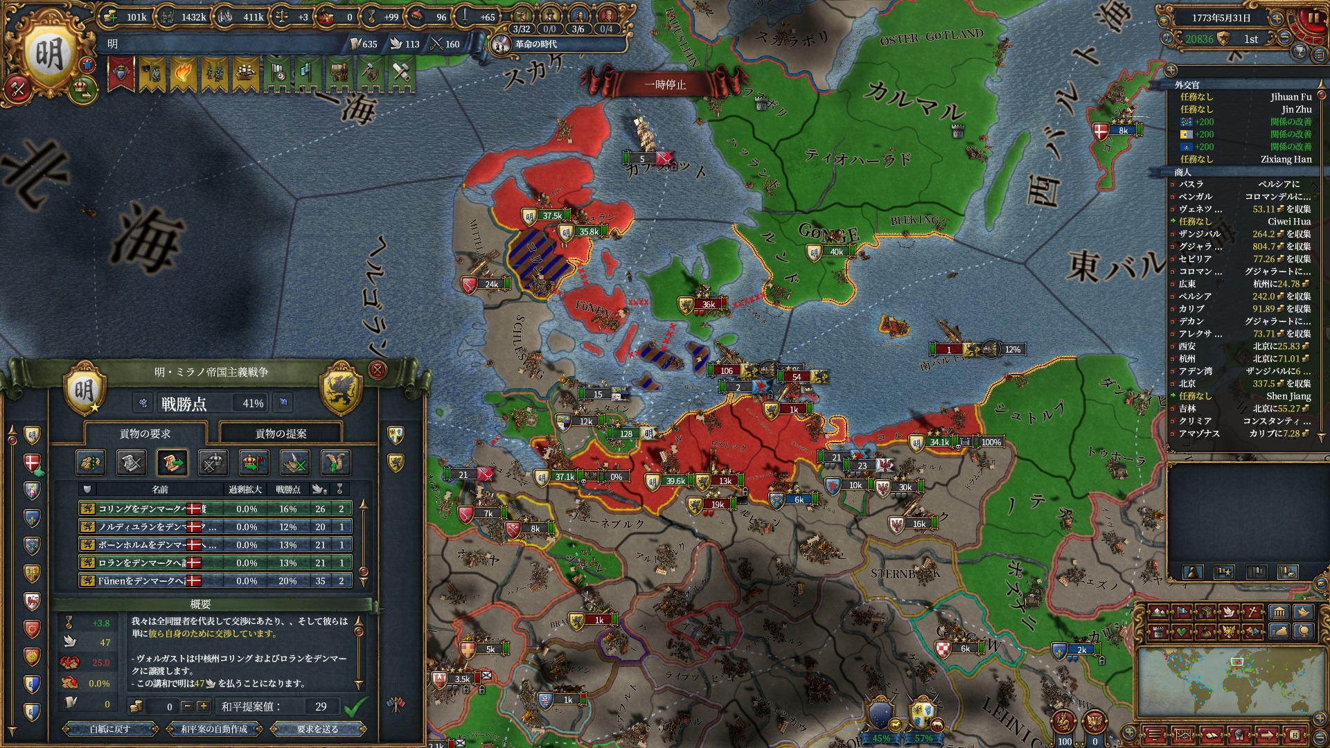 デンマークは食わせすぎて開発度1200ぐらいになっており辺境伯でもお怒りになっていました。